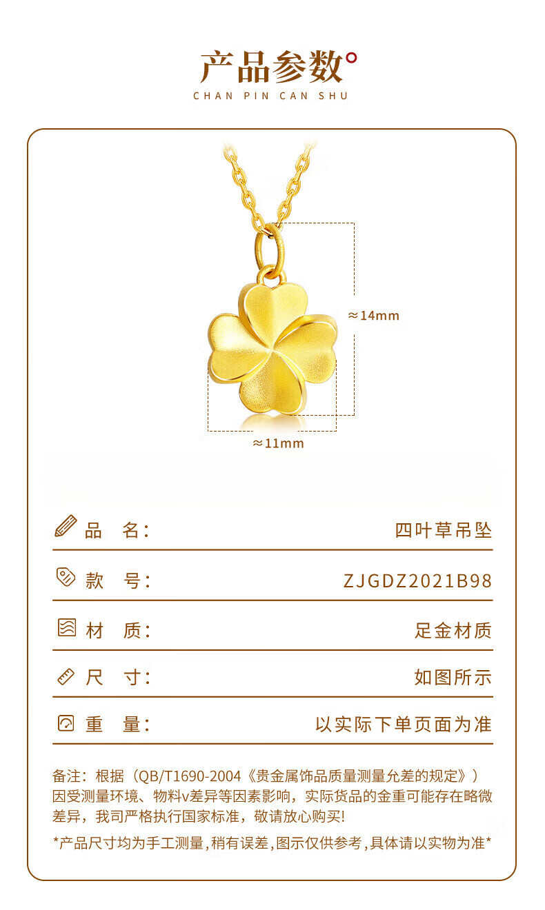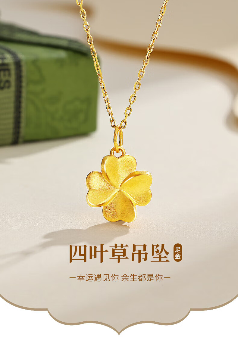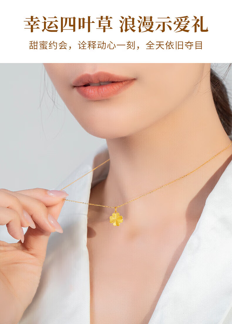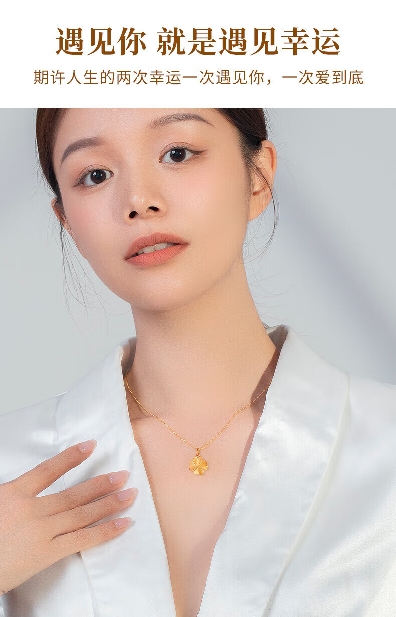 Chow Tai Fook Gold Necklace Women's Pure Gold Four Leaf Clover Pendant Birthday Valentine's Day Gift for Girlfriend Mom Wife Lover