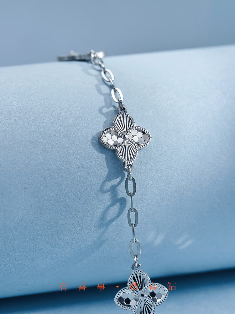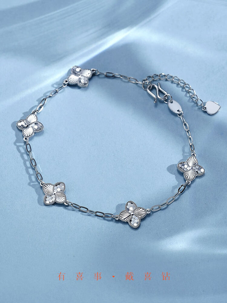 Hi diamond platinum four-leaf clover bracelet for women Pt950 platinum crushed ice bracelet as a gift for girlfriend, platinum about 5.3g