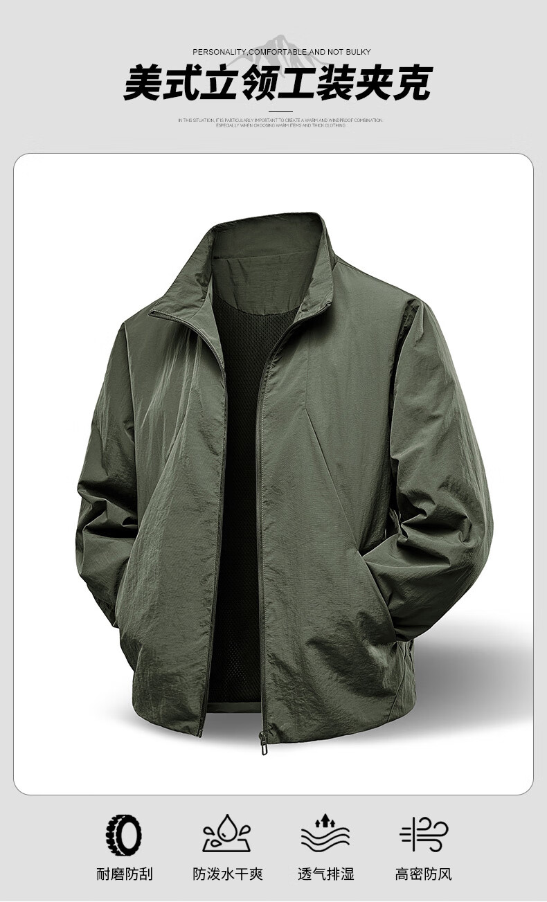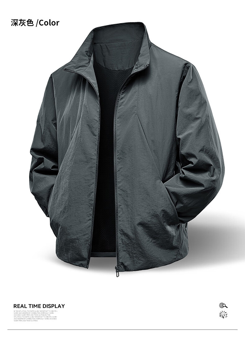 Cotton Jacket Men's Spring and Autumn Work Jacket Men's Elastic Waterproof Outdoor Jacket Stand Collar Jacket Nylon Windbreaker Dark Gray 5XL