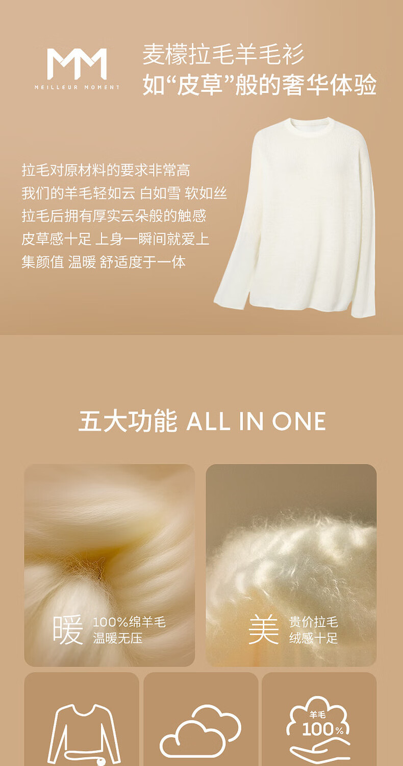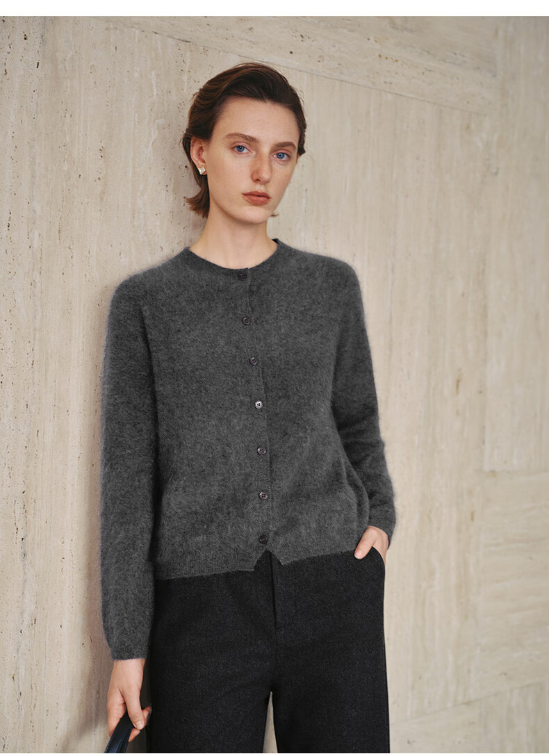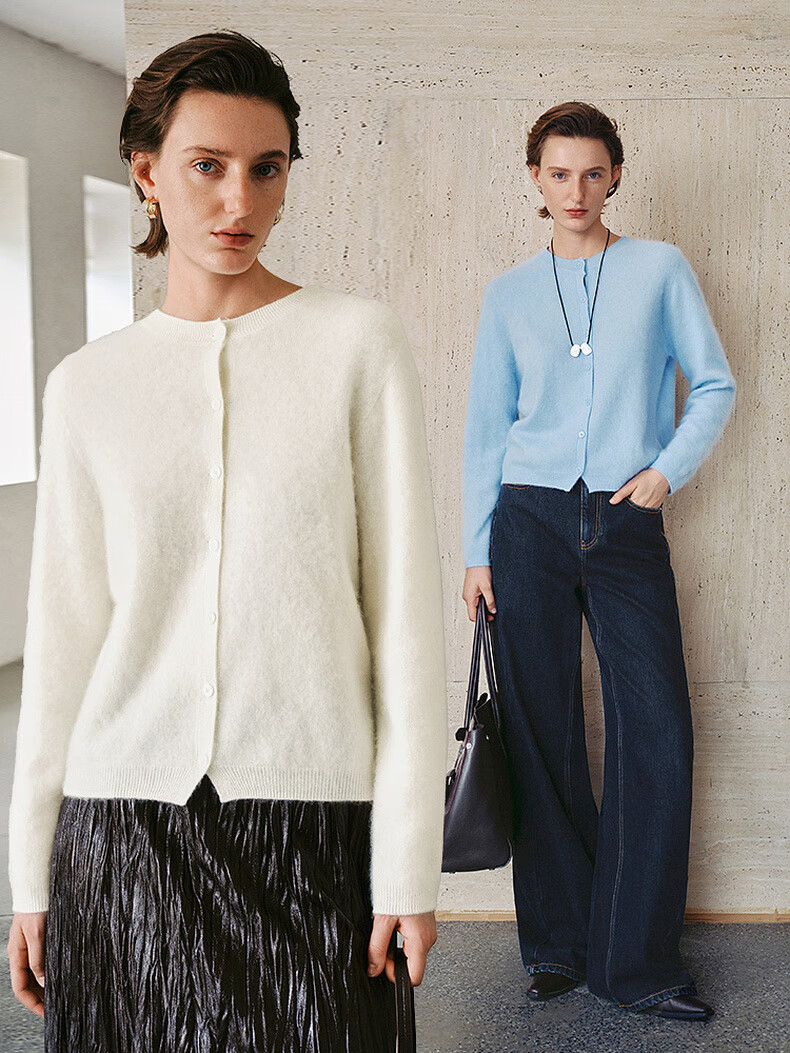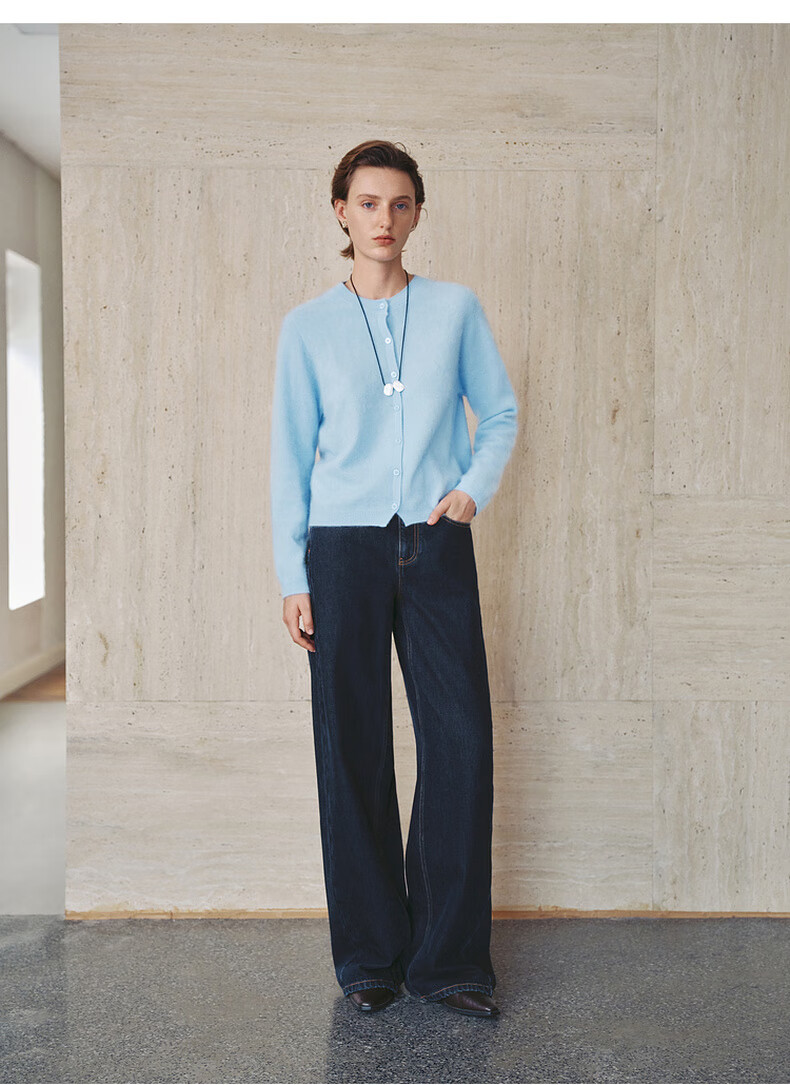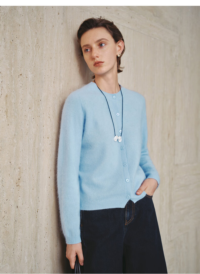 Mai Meng 10th Anniversary Brushed Series MM100% Wool Sweater Sweater Top Cardigan 25 Autumn and Winter New Cardigan-Round Neck-Light Blue 5GA934514 M (140Jin Jin is equal to less than 0.5 kg)