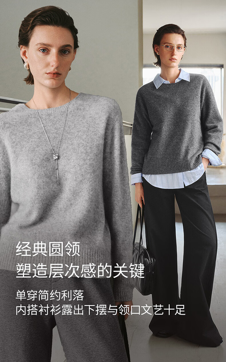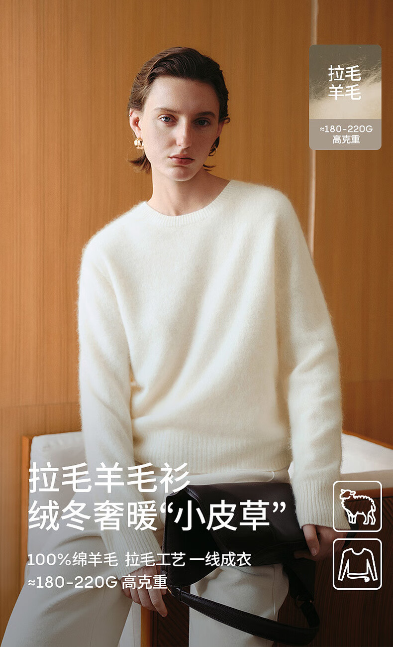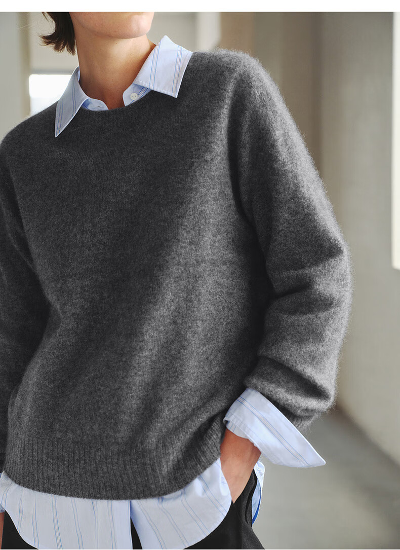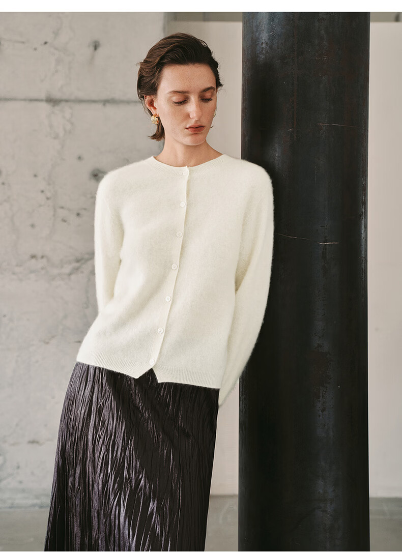 Mai Meng 10th Anniversary Brushed Series MM100% Wool Sweater Sweater Top Cardigan 25 Autumn and Winter New Cardigan-Round Neck-Light Blue 5GA934514 M (140Jin Jin is equal to less than 0.5 kg)