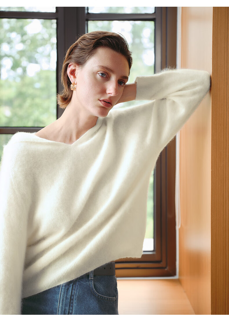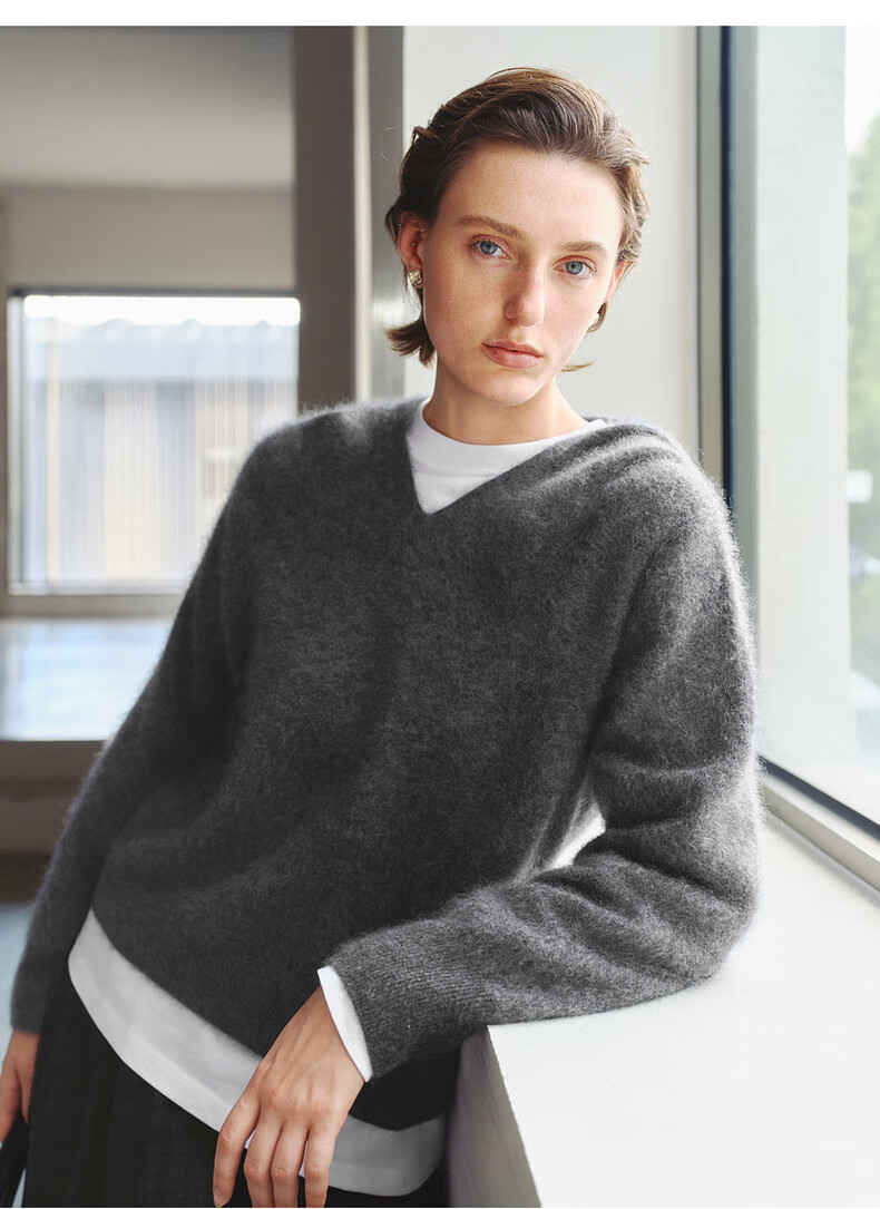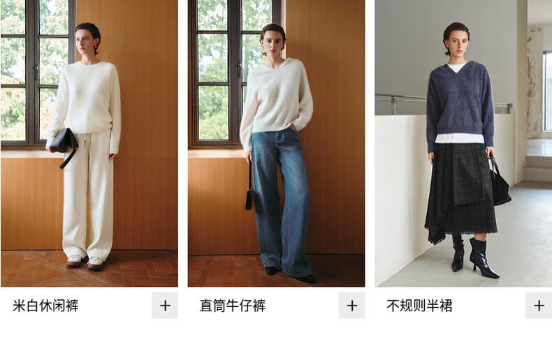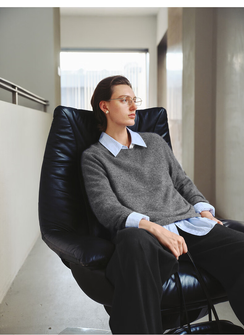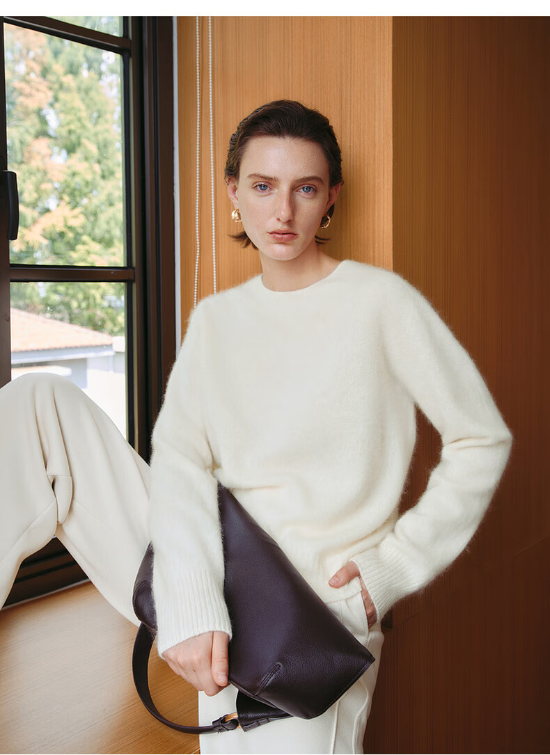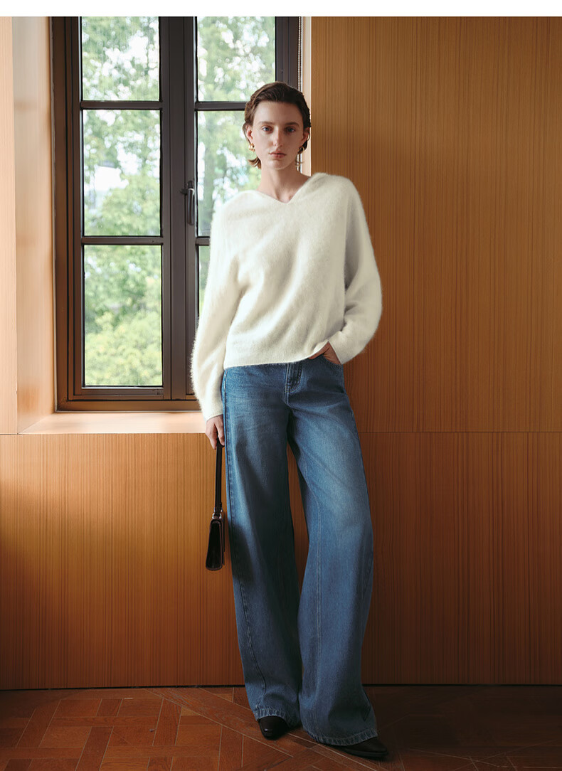 Mai Meng 10th Anniversary Brushed Series MM100% Wool Sweater Sweater Top Cardigan 25 Autumn and Winter New Cardigan-Round Neck-Light Blue 5GA934514 M (140Jin Jin is equal to less than 0.5 kg)