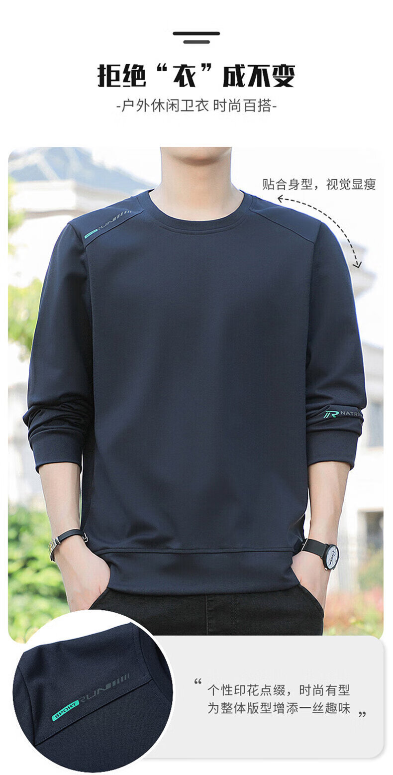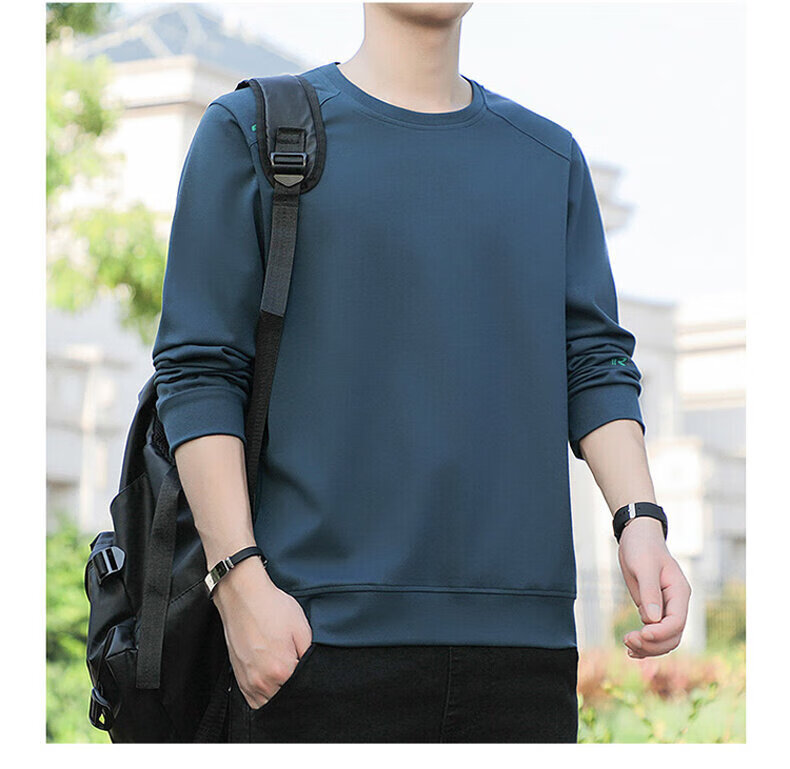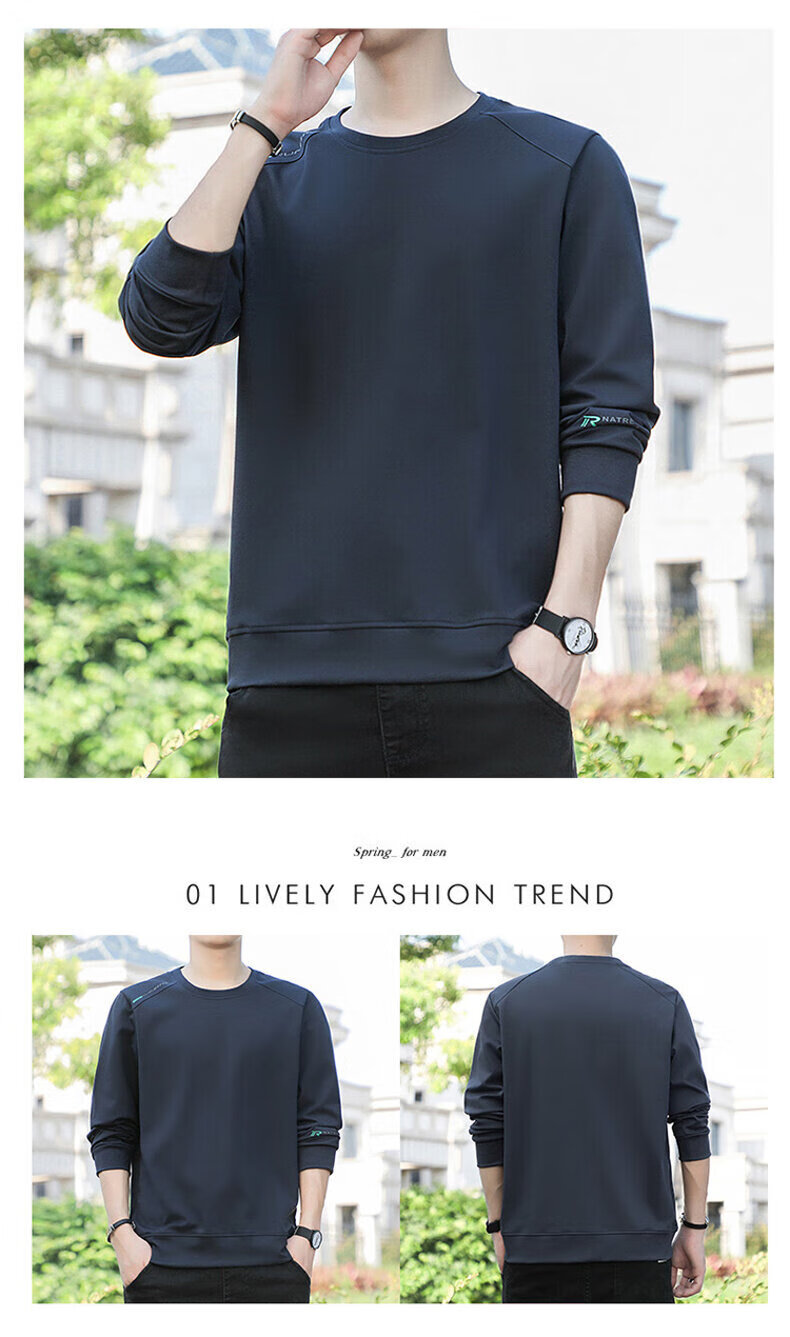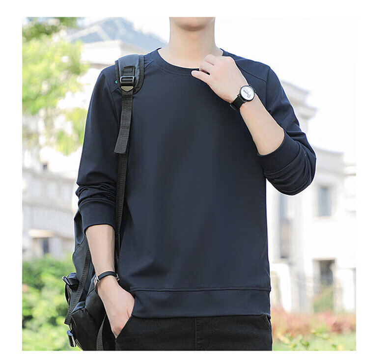 YISHion 2026 New Spring and Autumn New Round Neck Loose Pullover Large Size Sweater Men's Long Sleeve T-Shirt Bottoming Top 17990 Navy Blue XL (Suitable for 130-145Jin Jin is equal to 0.5kg)