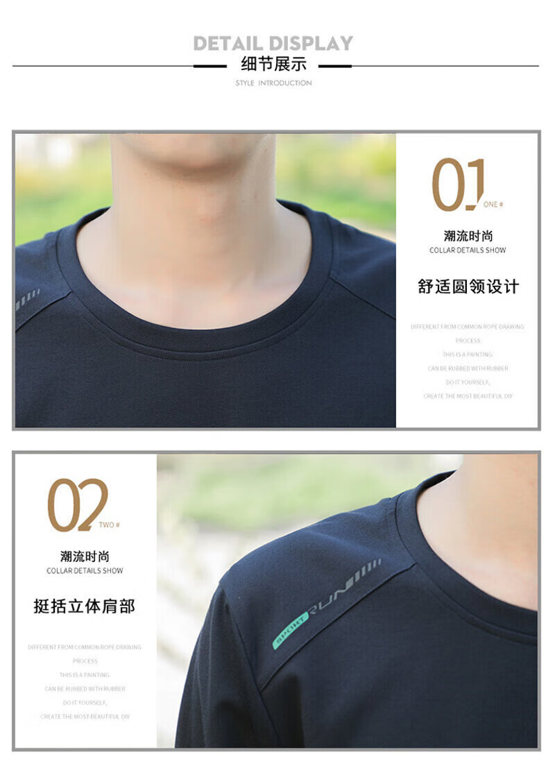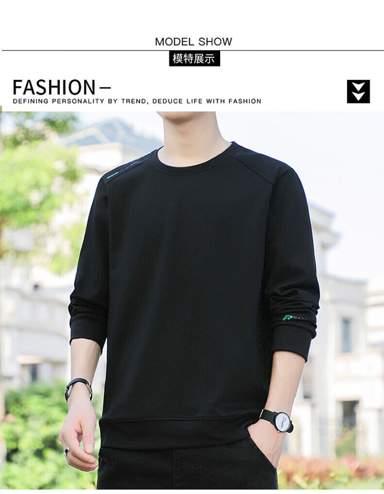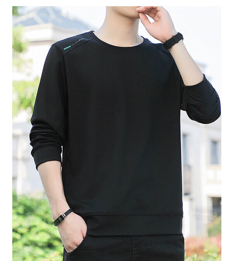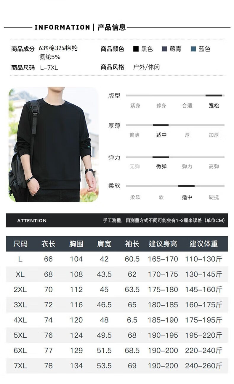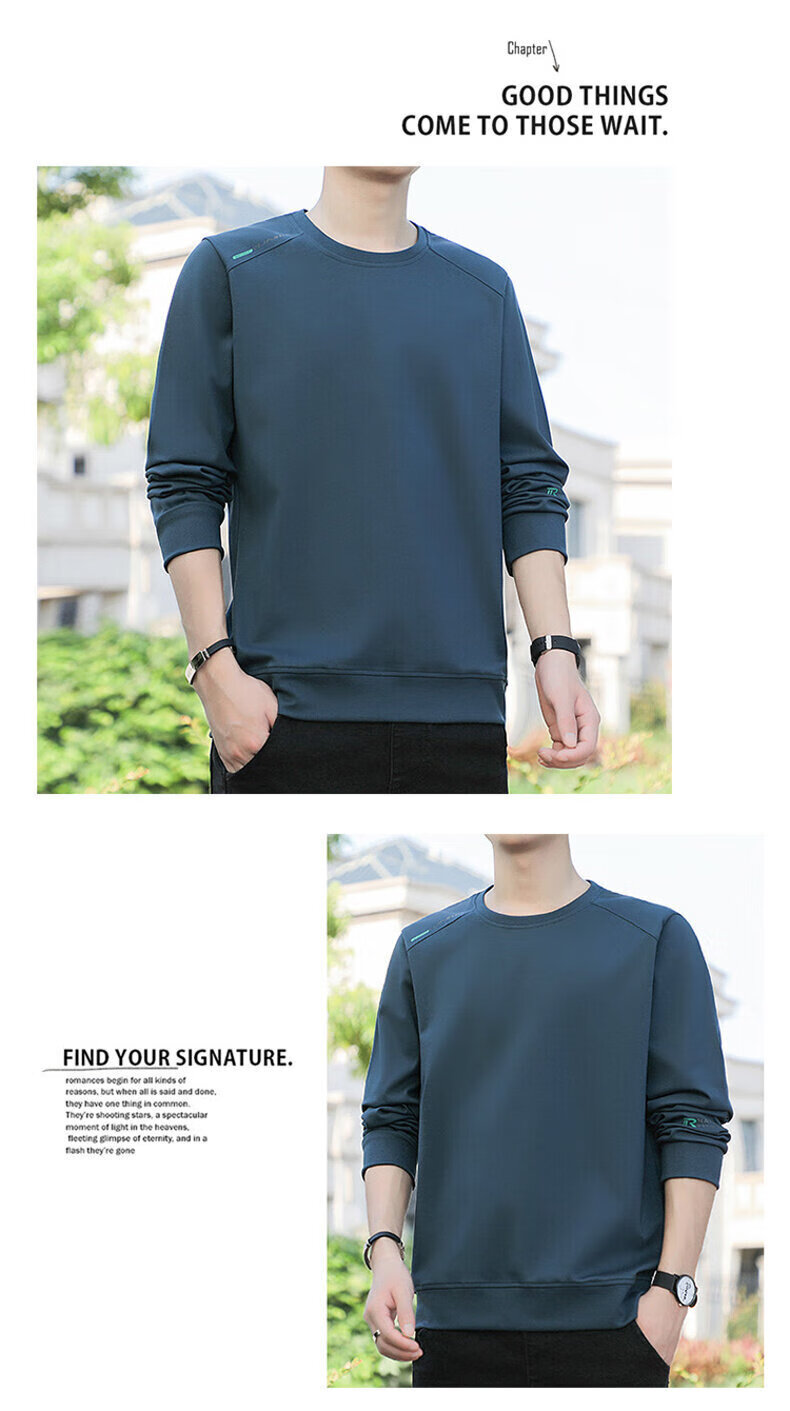 YISHion 2026 New Spring and Autumn New Round Neck Loose Pullover Large Size Sweater Men's Long Sleeve T-Shirt Bottoming Top 17990 Navy Blue XL (Suitable for 130-145Jin Jin is equal to 0.5kg)