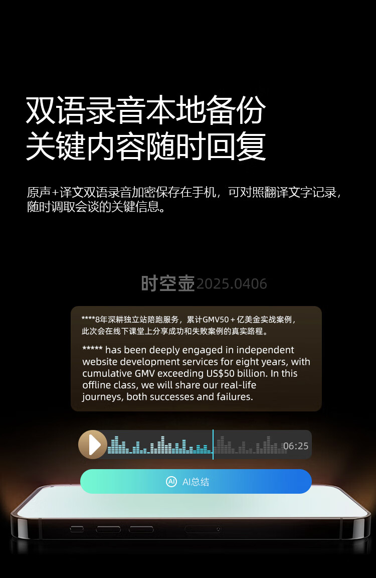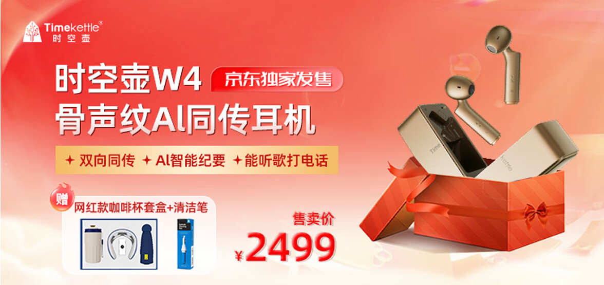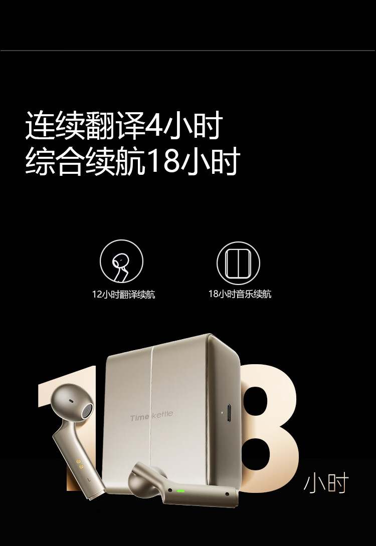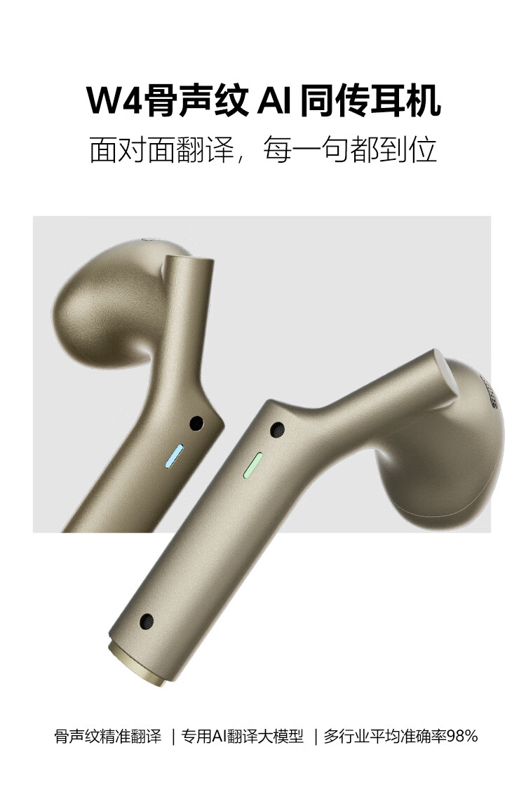 Time and Space Pot W4 Simultaneous Translation Headset Overseas Travel Conference Translator Intelligent Binaural Noise Reduction Translation Headset Portable Desert Gold Desert Gold
