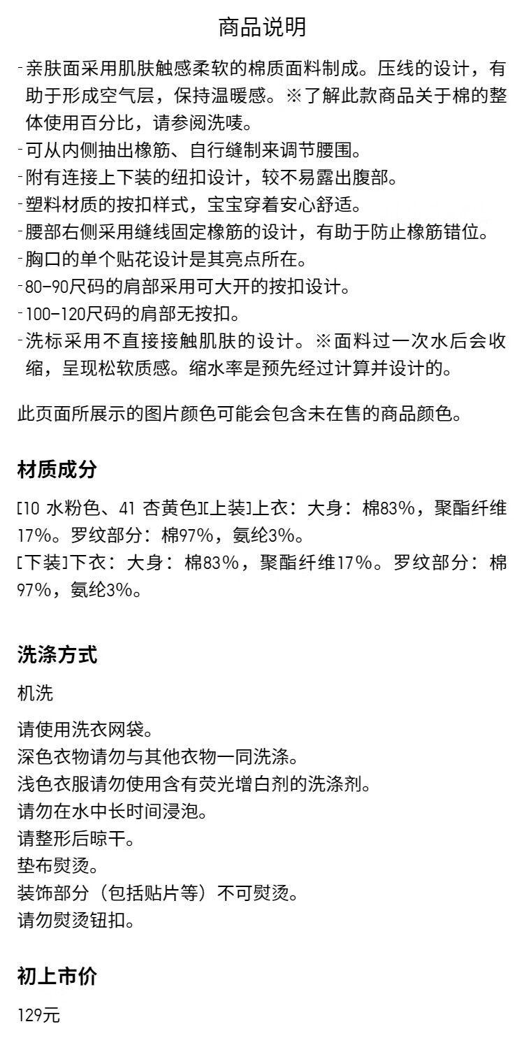 UNIQLO infant and toddler crimped pajamas/long-sleeved living clothes set 478439 41 apricot 110