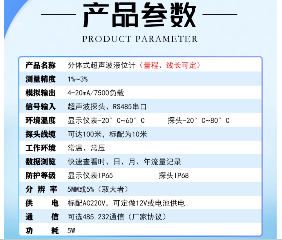Bona Shengshi split ultrasonic liquid level meter including installation, measuring range 10 meters + anti-corrosion probe