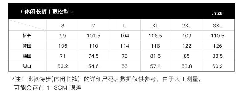 Outseam (cm) 99 cm 101.5 cm 104 cm 106.5 cm 109 cm