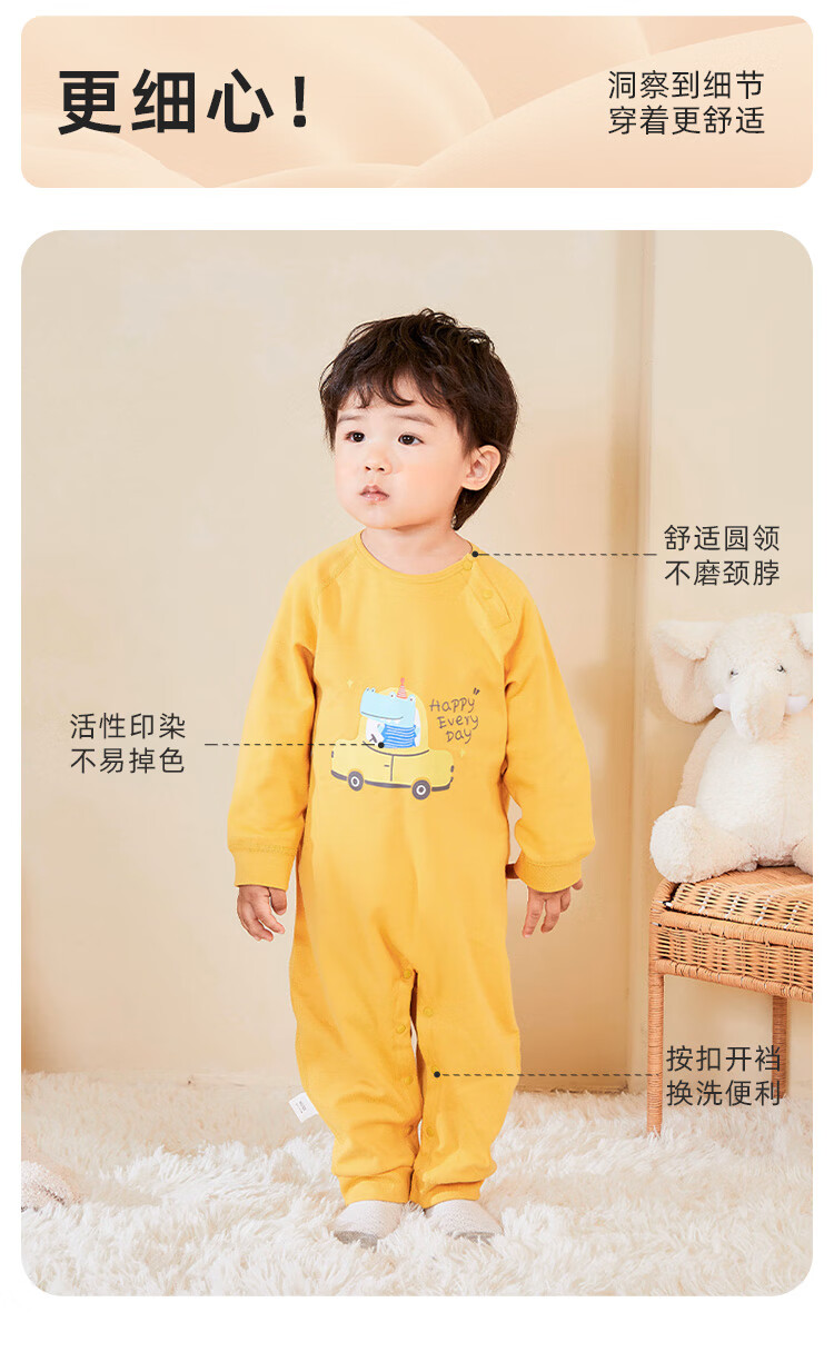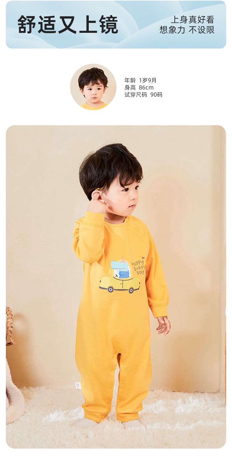 Shubeiyi baby clothes spring and autumn newborn jumpsuits for girls, crawling clothes, pajamas for boys, spring outing clothes, starry sky roaming yellow 73cm (6-12 months)