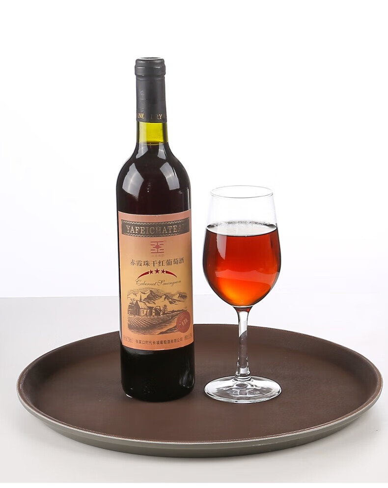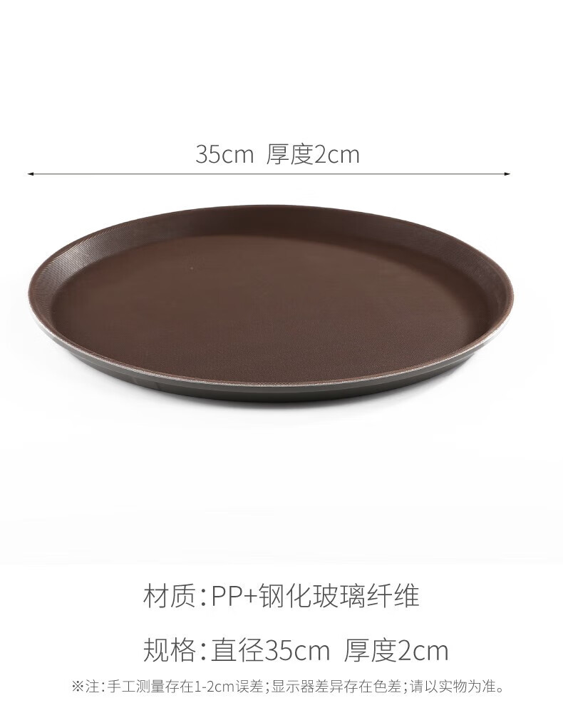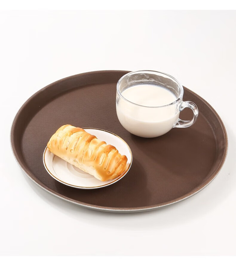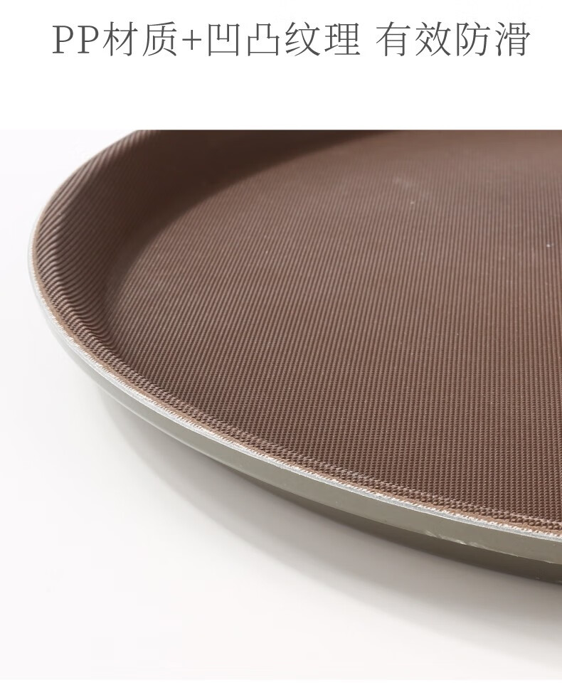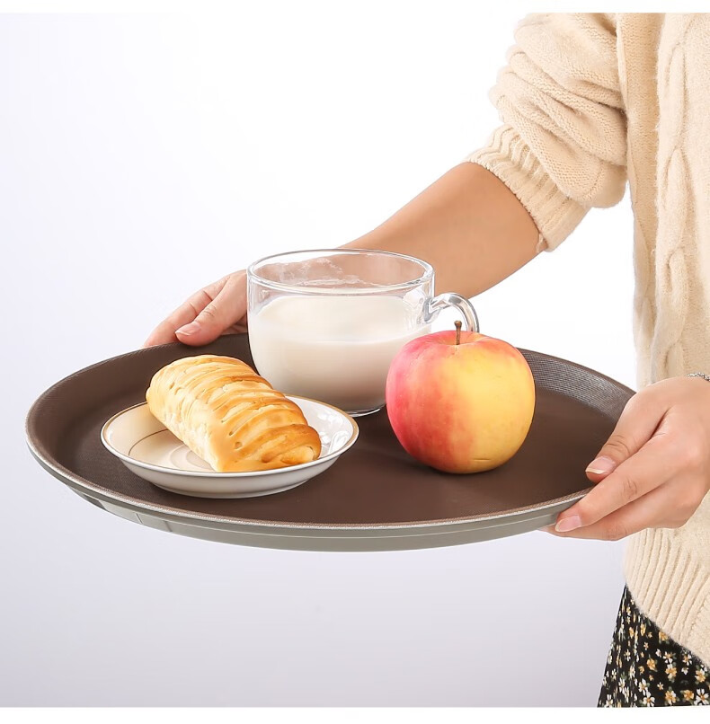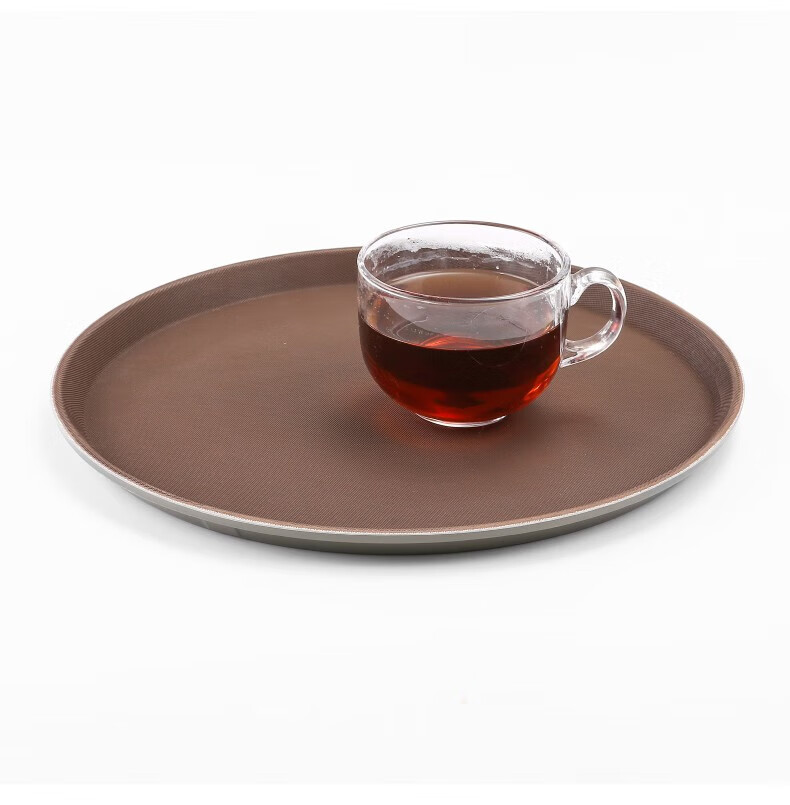 Jieyi large tray rectangular round tray non-slip tea tray plastic tray hotel serving tray food tray tray plastic brown round 35CM