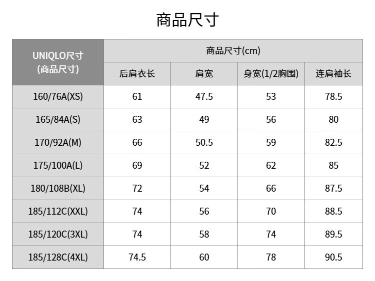 China (cm) 160-165/84-86 165-170 / 88-90 167-172 / 92-96 168-173 / 98-102 170-176 / 106-110