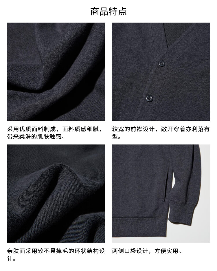 Uniqlo men's casual cardigan/long-sleeved fashionable V-neck sweatshirt jacket 25 autumn and winter new style 483299 08 dark gray M /170/92A
