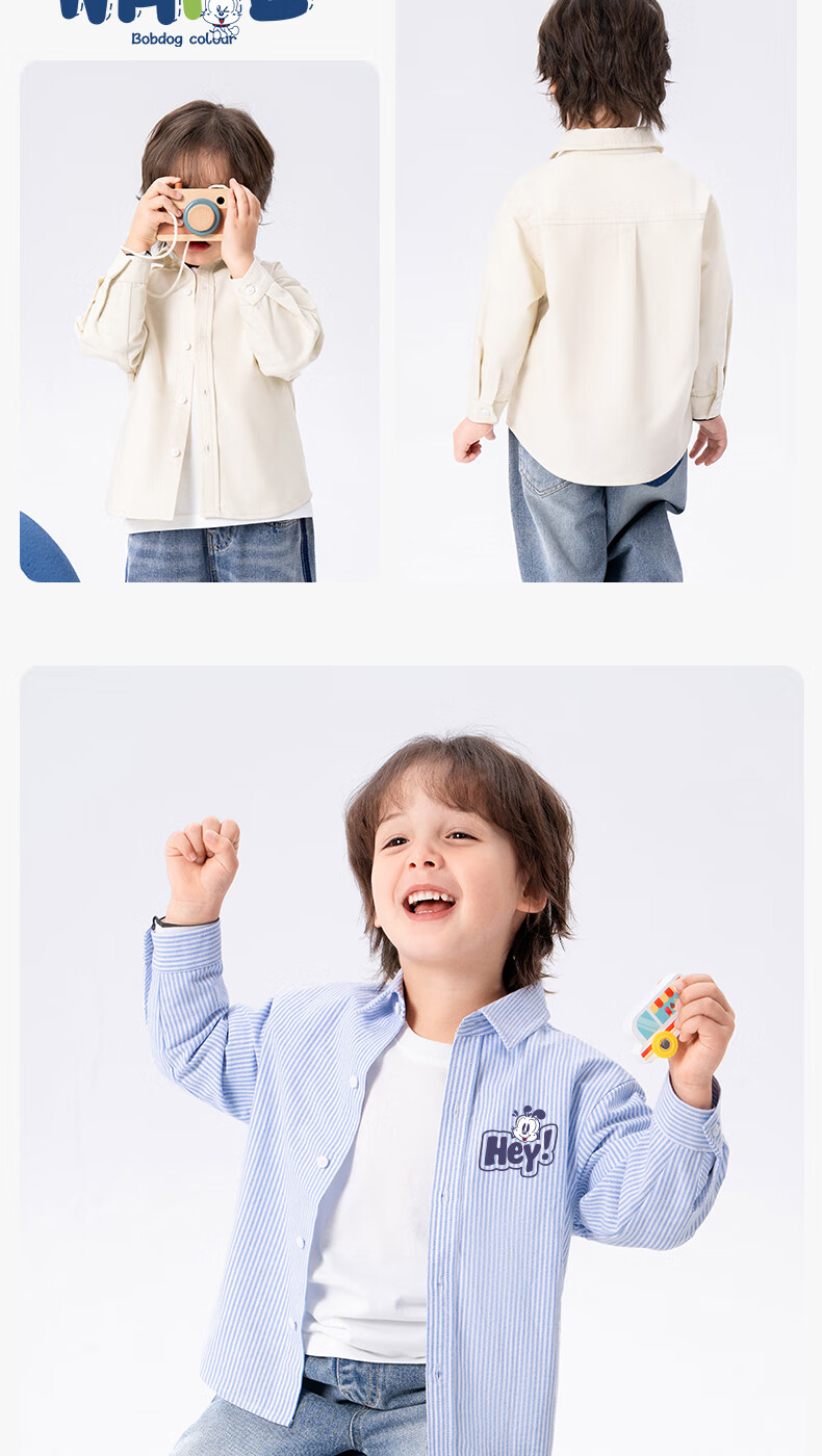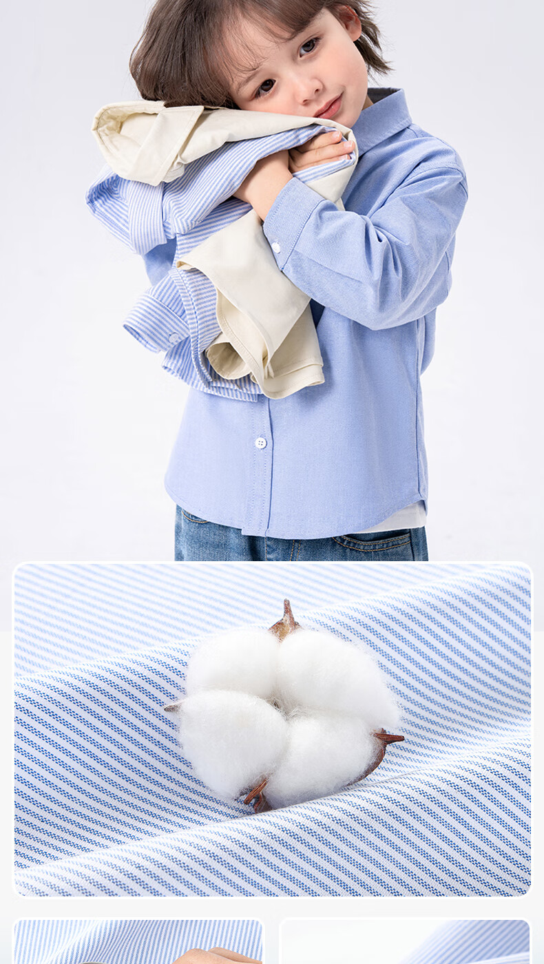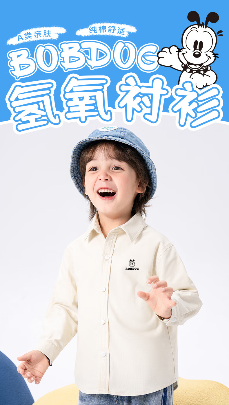 Babudou Baby Clothes Spring and Autumn New Boys' Shirts Pure Cotton Long Sleeve Category A Skin Friendly Fashion Versatile Lapel Thin Jacket Off-White Babudou X 110