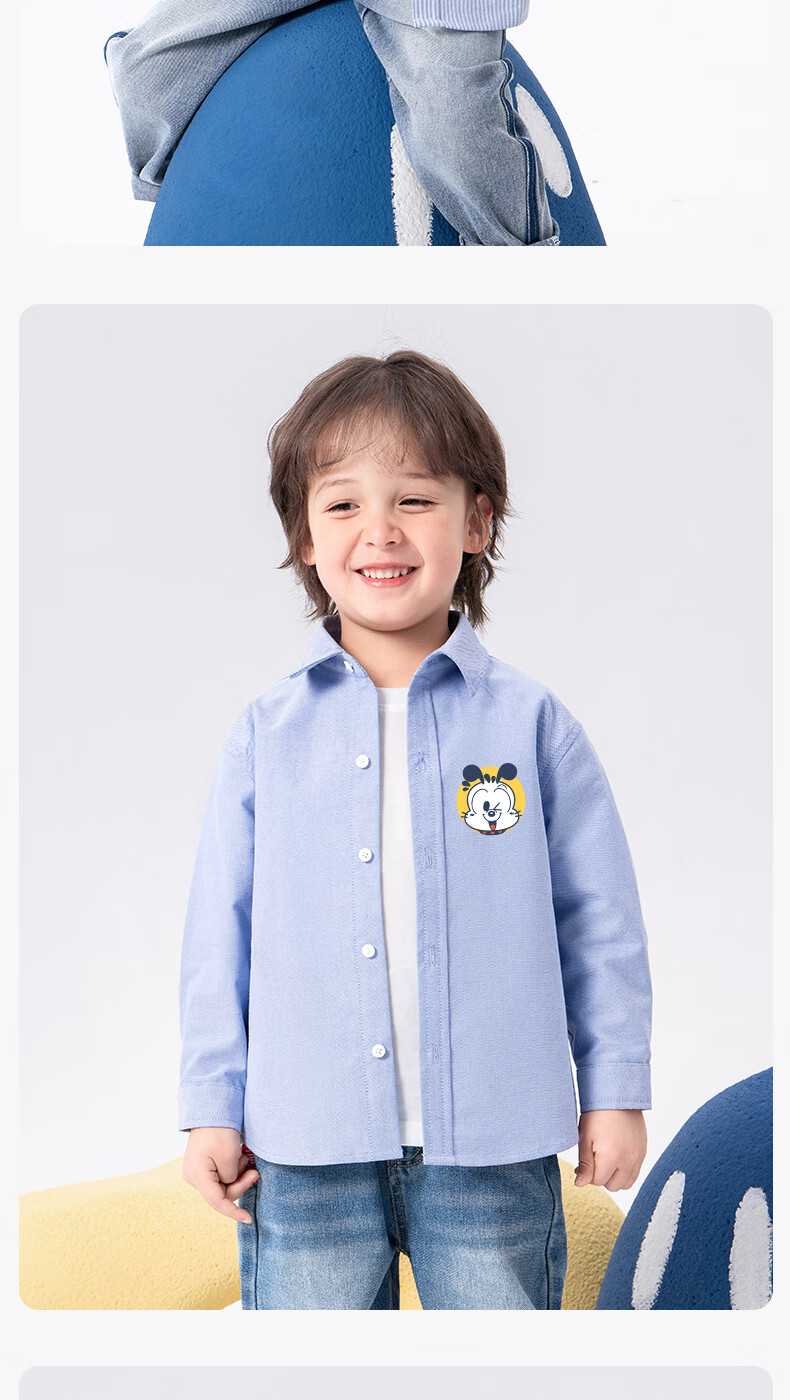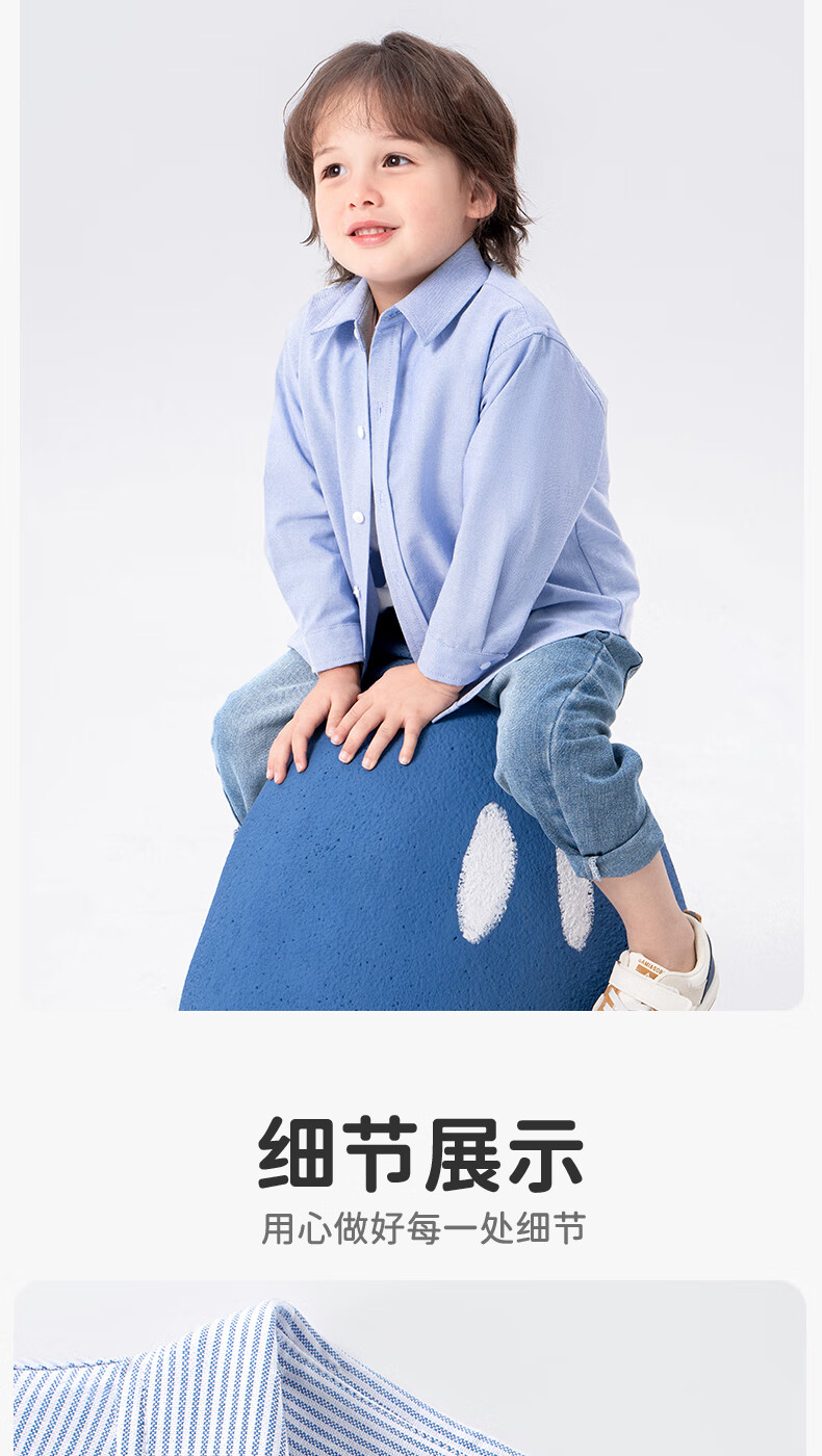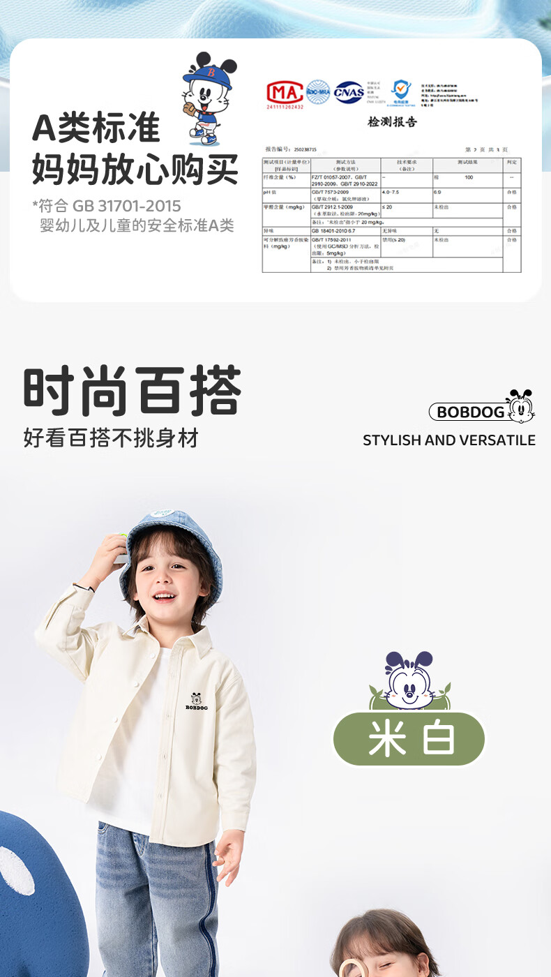 Babudou Baby Clothes Spring and Autumn New Boys' Shirts Pure Cotton Long Sleeve Category A Skin Friendly Fashion Versatile Lapel Thin Jacket Off-White Babudou X 110
