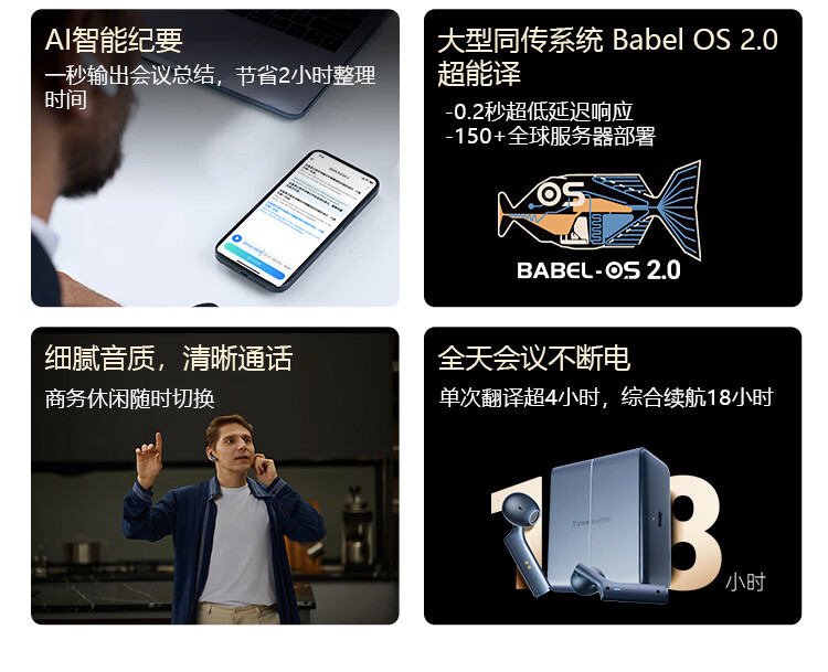 Space-time pot W4 simultaneous translation earphones simultaneous interpretation overseas travel conference translator smart binaural noise reduction translation earphones navy blue navy blue