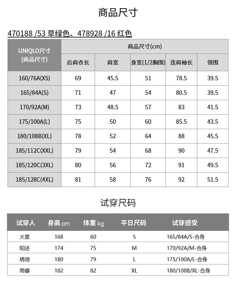 China (cm) 160-165/84-86 165-170 / 88-90 167-172 / 92-96 168-173 / 98-102 170-176 / 106-110