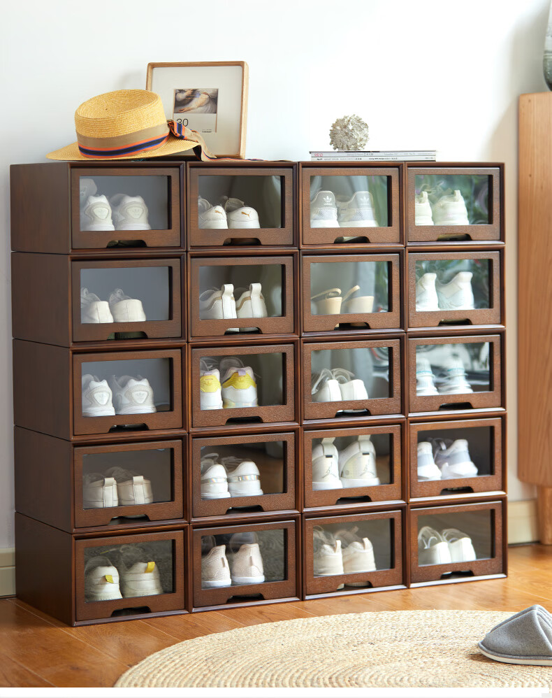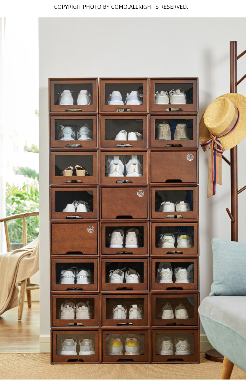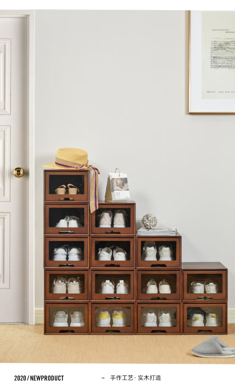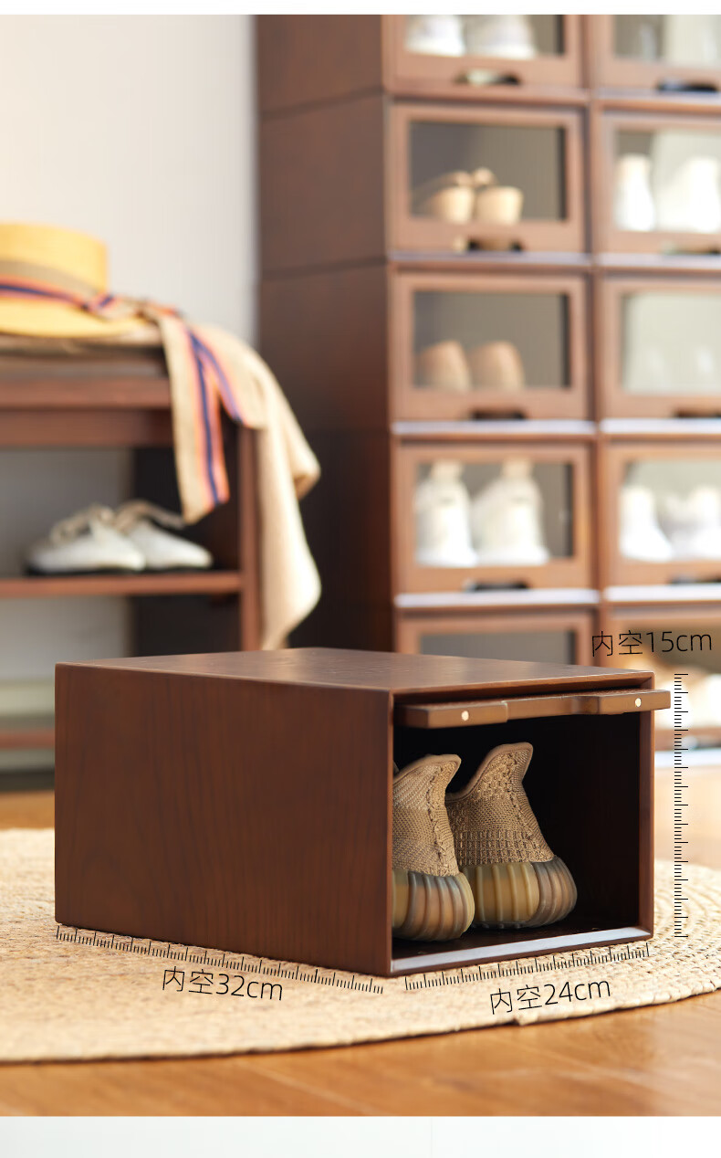Nalandohao solid wood shoe box storage box transparent shoe cabinet artifact drawer-type acrylic storage box Internet celebrity dust-proof shoe rack acrylic flip shoe box 34x26x18.5cm