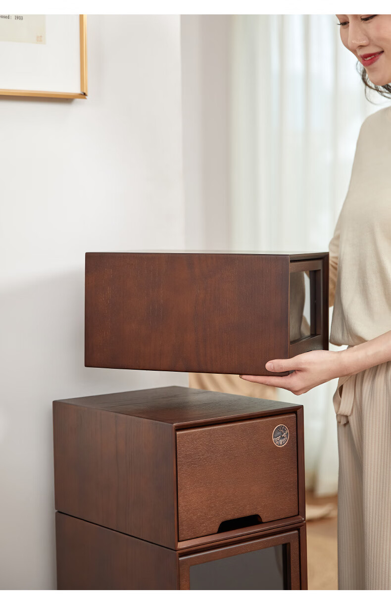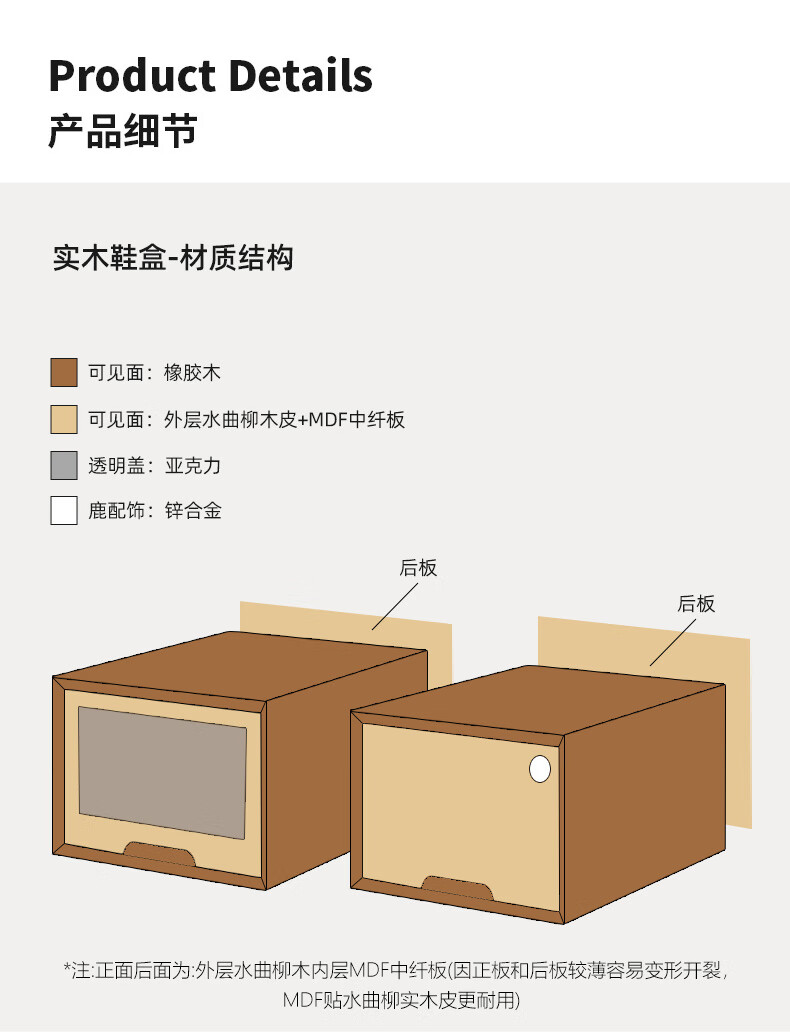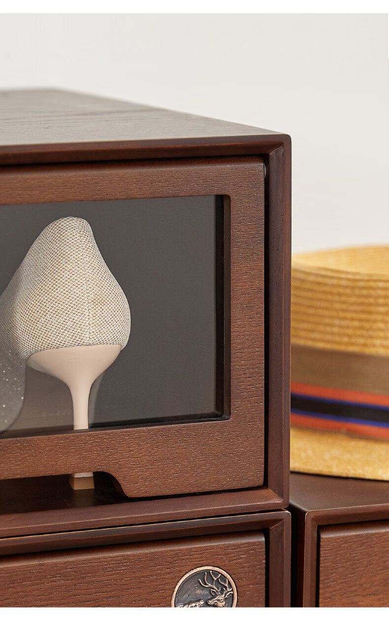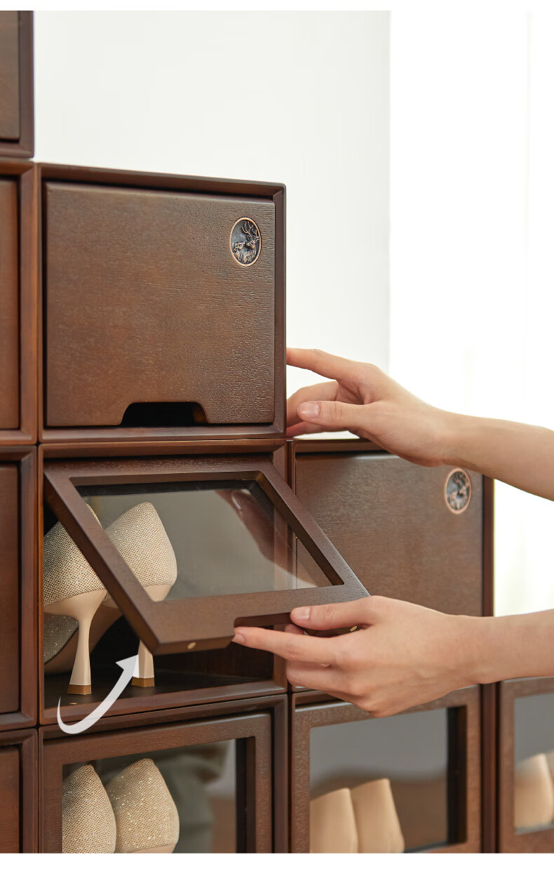 Nalandohao solid wood shoe box storage box transparent shoe cabinet artifact drawer-type acrylic storage box Internet celebrity dust-proof shoe rack acrylic flip shoe box 34x26x18.5cm