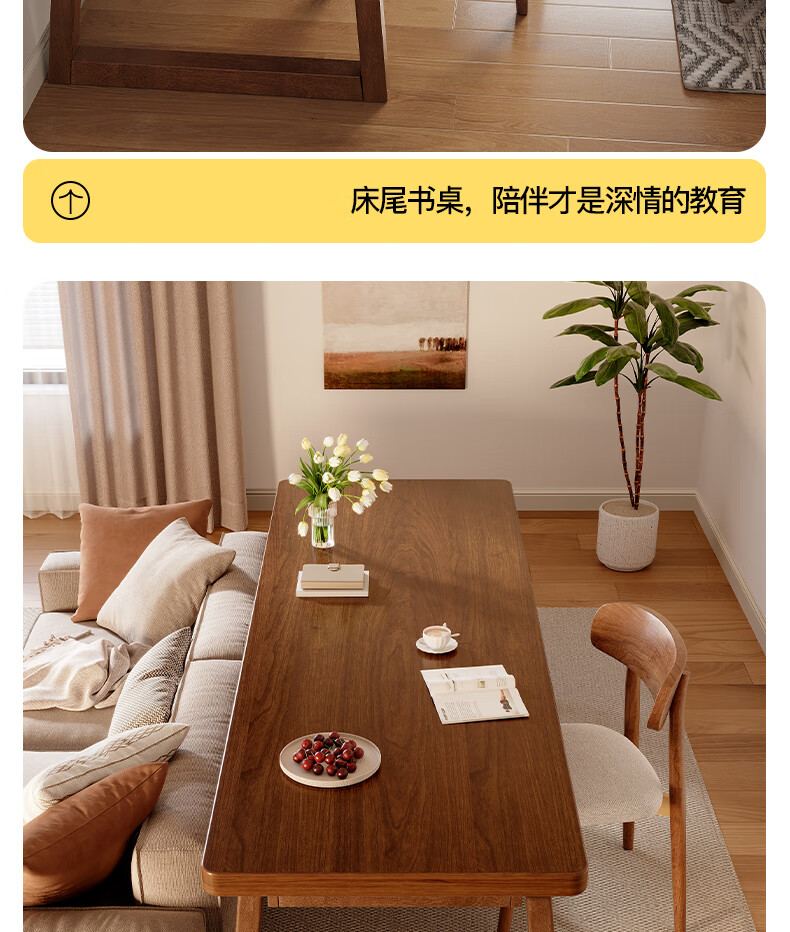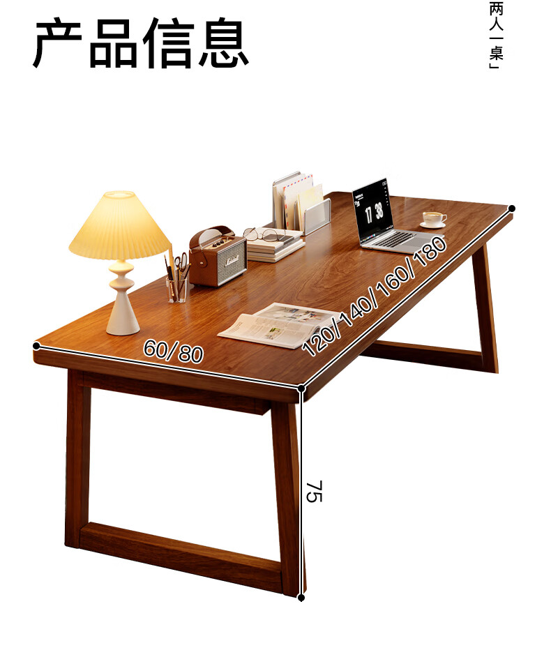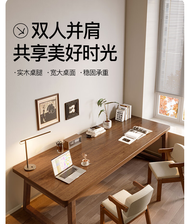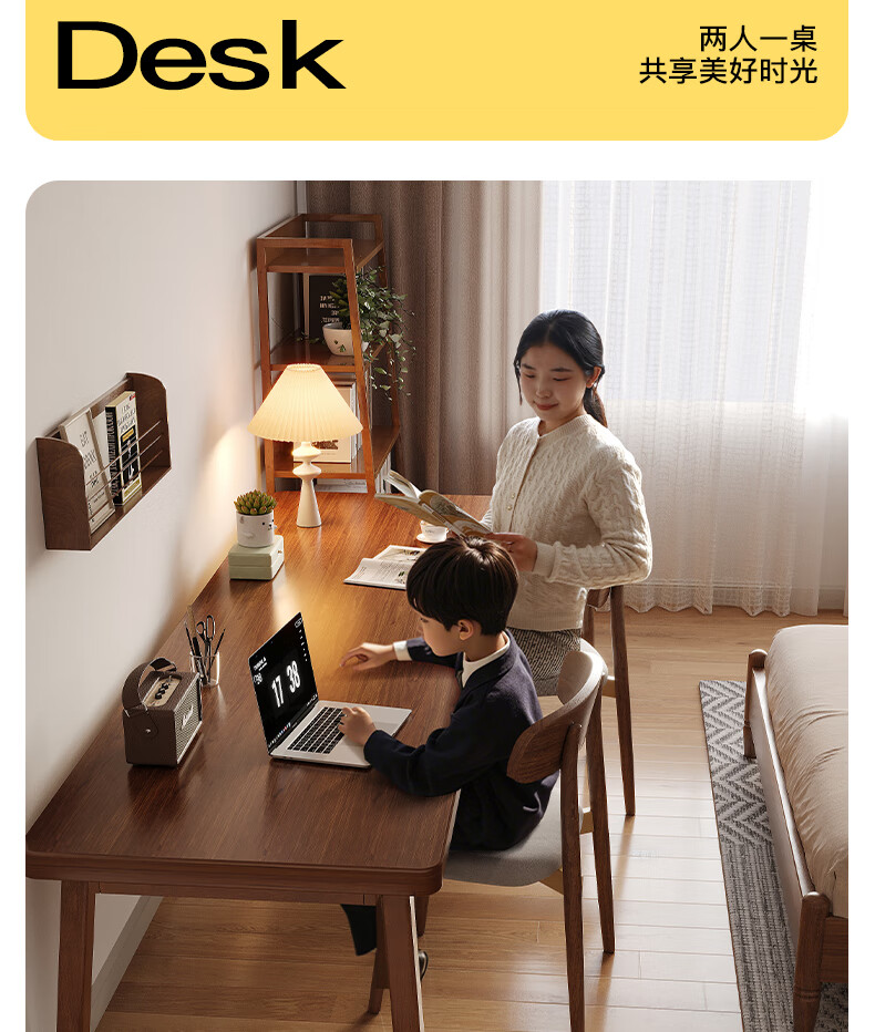 Lin Zhiyu solid wood desk home bedroom wall double computer table long study table modern simple office desk workbench rubber wood legs walnut color 100*60*75-single table