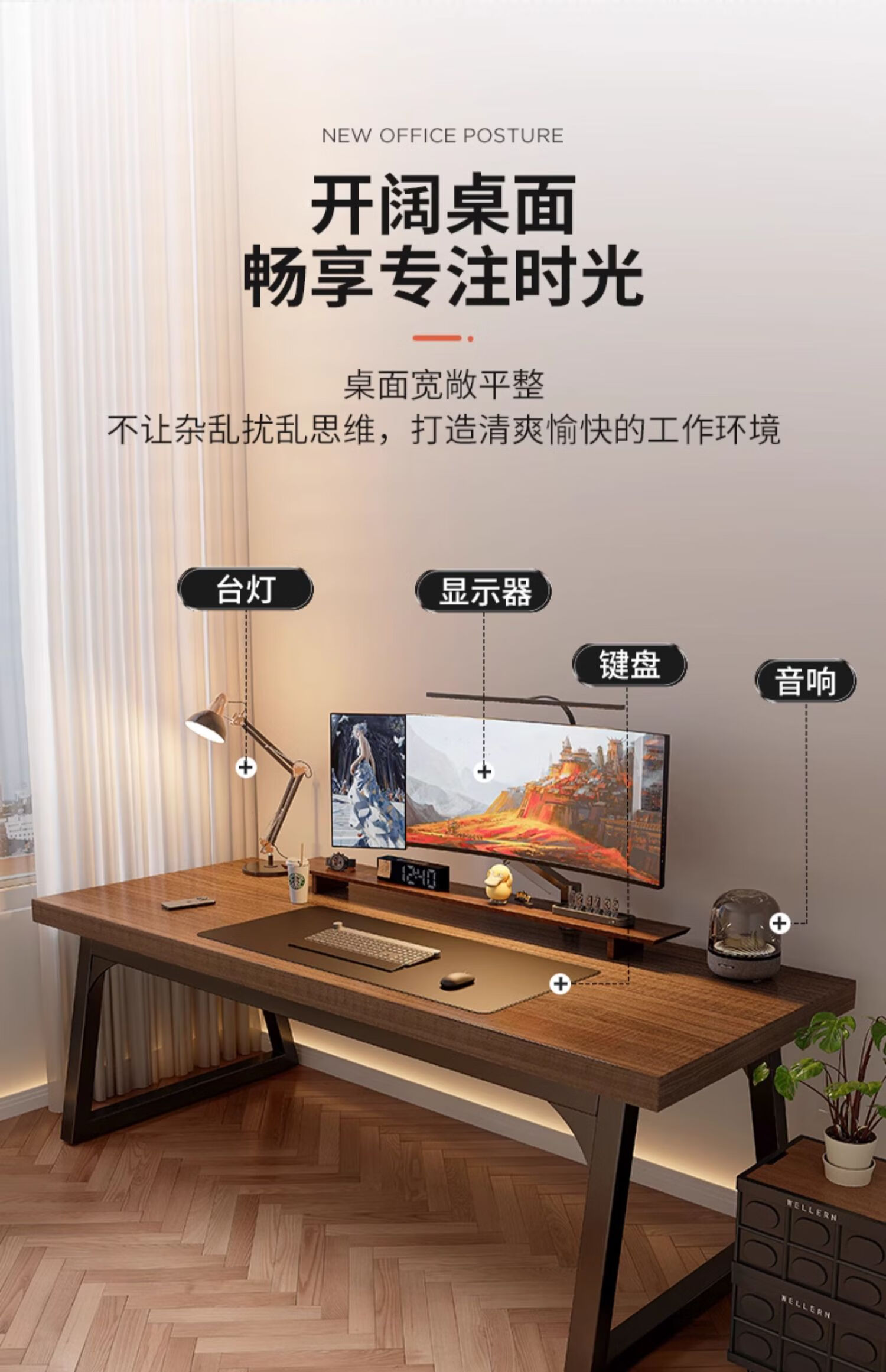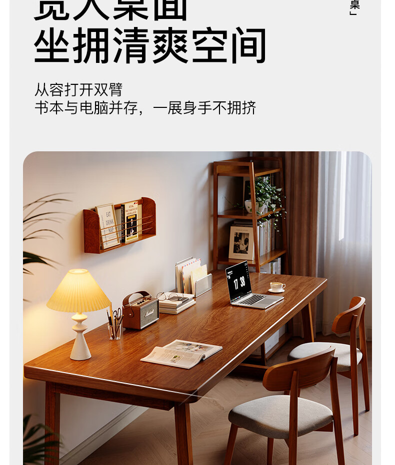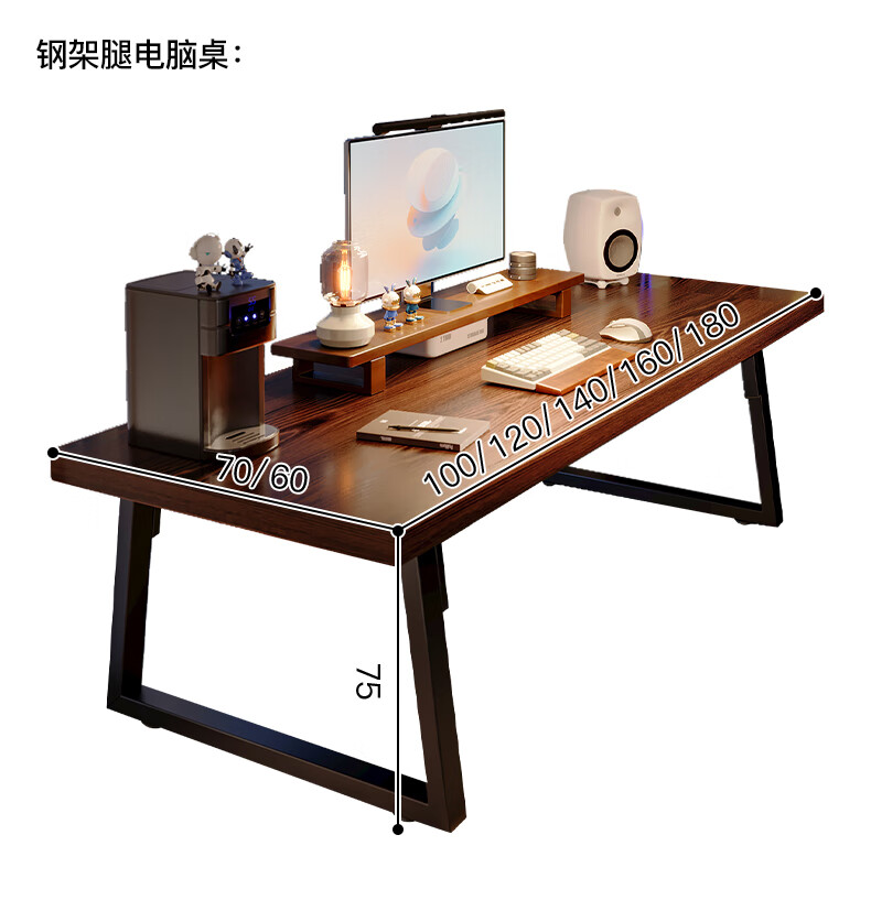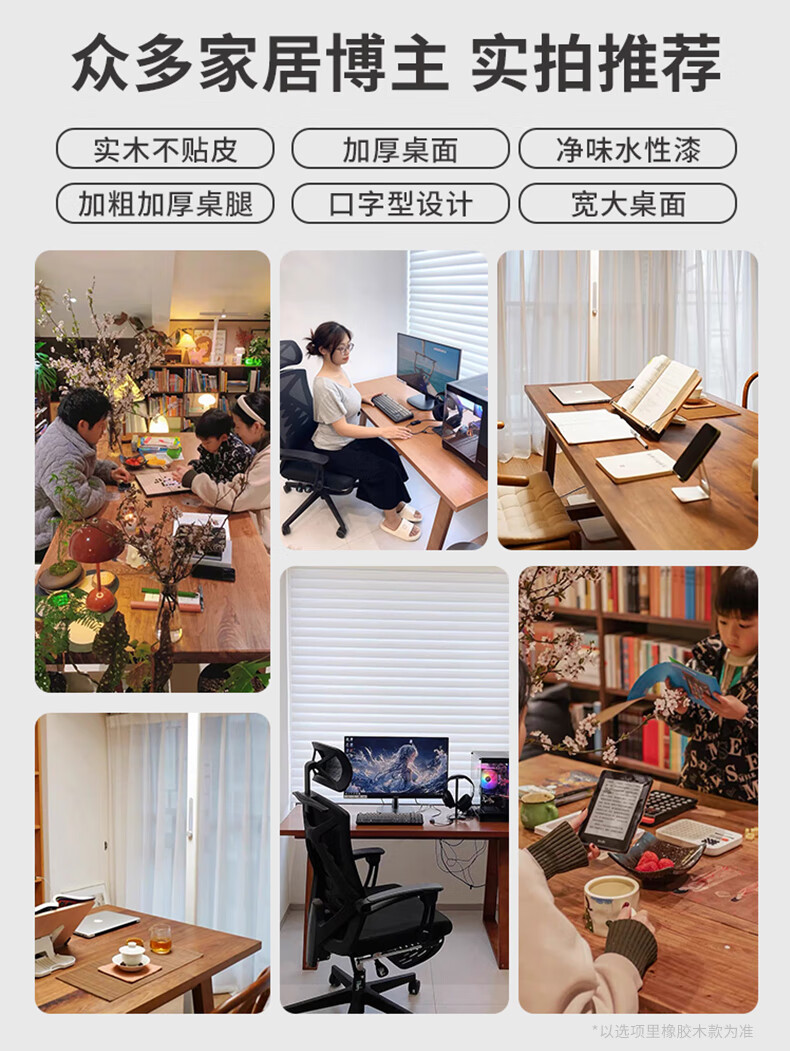 Lin Zhiyu solid wood desk home bedroom wall double computer table long study table modern simple office desk workbench rubber wood legs walnut color 100*60*75-single table
