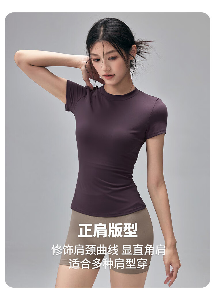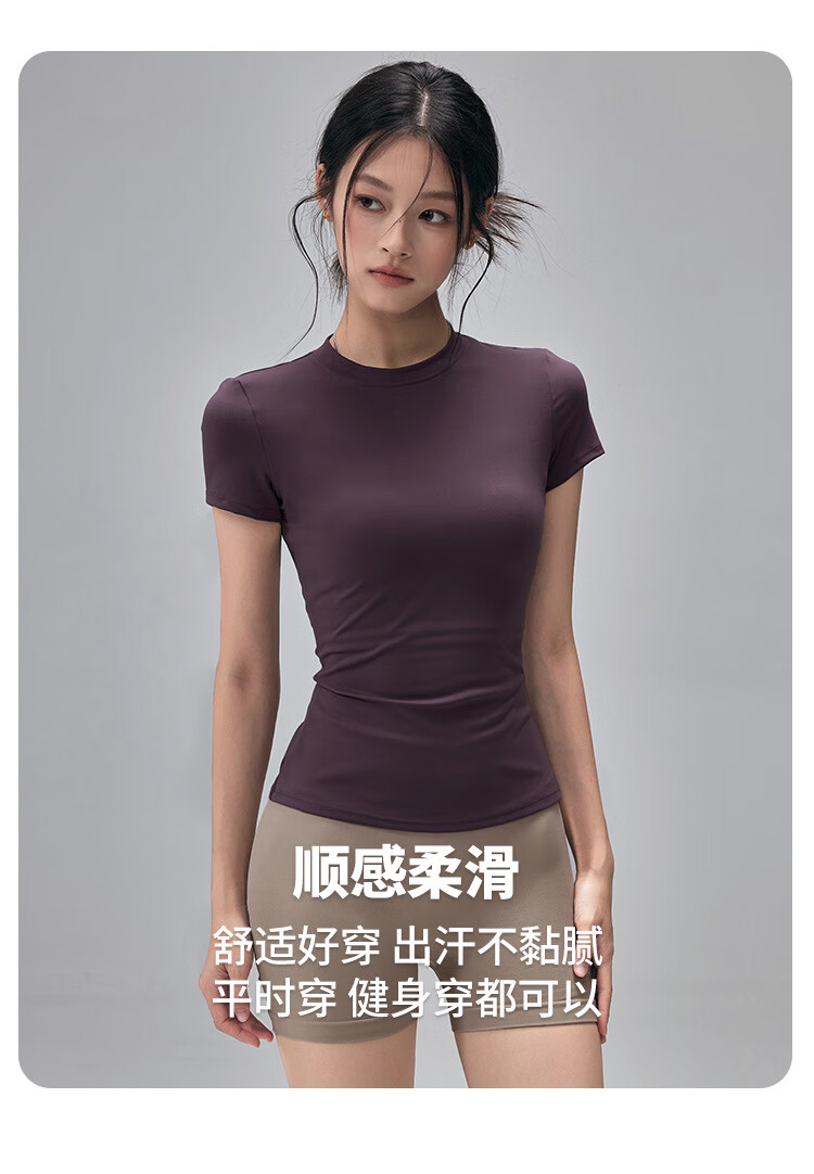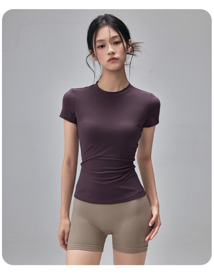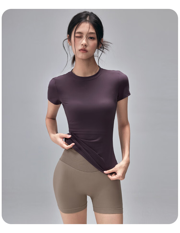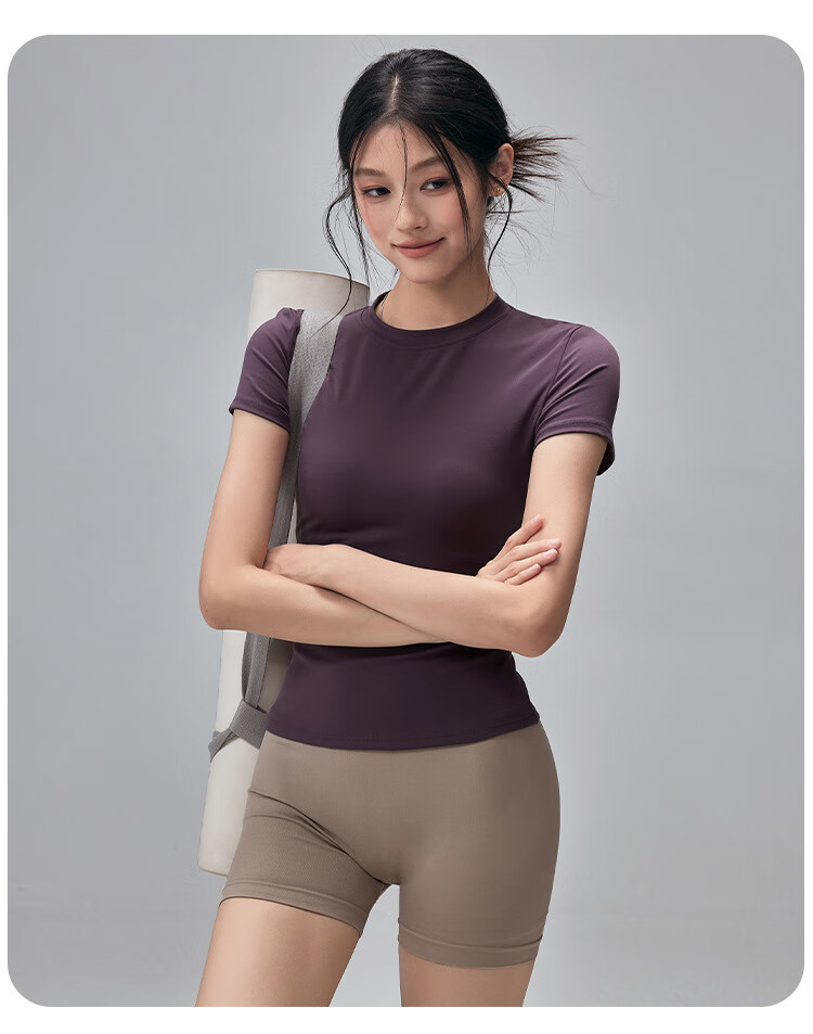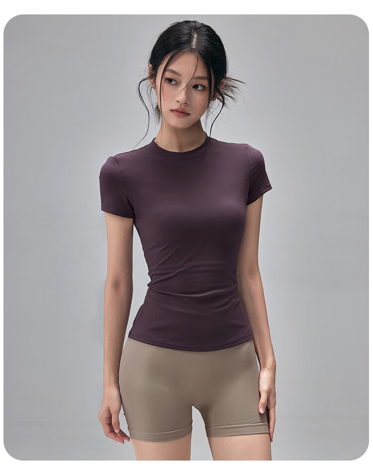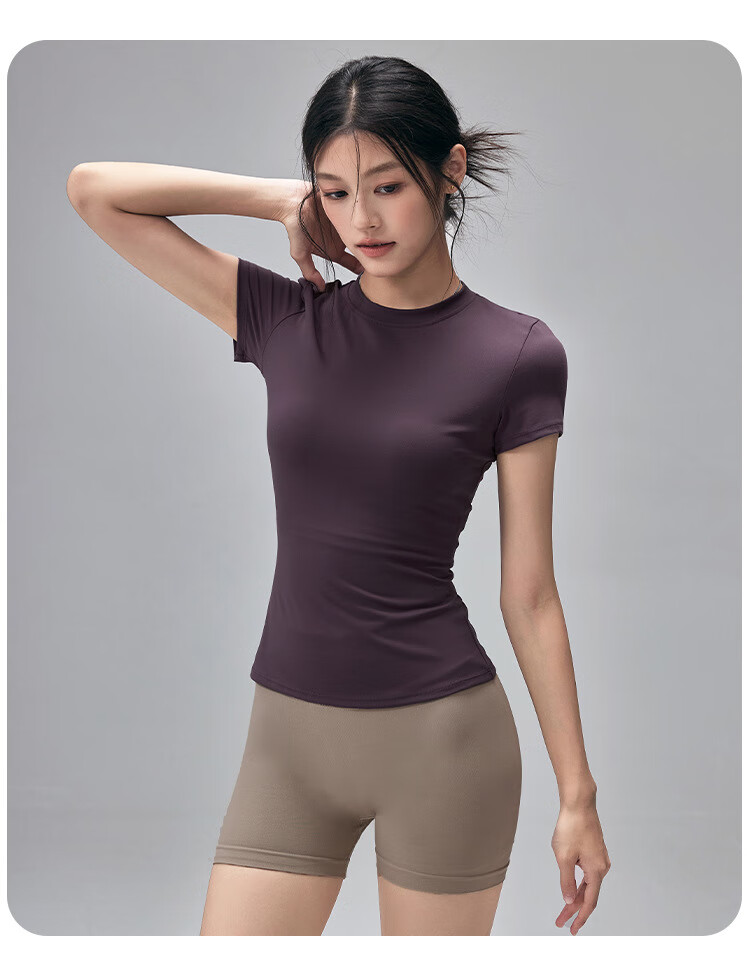 LULUUVTTOH Round Neck Sports Yoga Top Women's Slim Pilates T-Shirt Summer Short-Sleeved Thin Quick-Drying High-Elastic Fitness Wear Frost Gray S