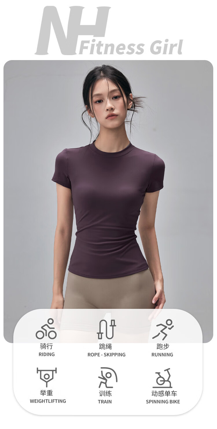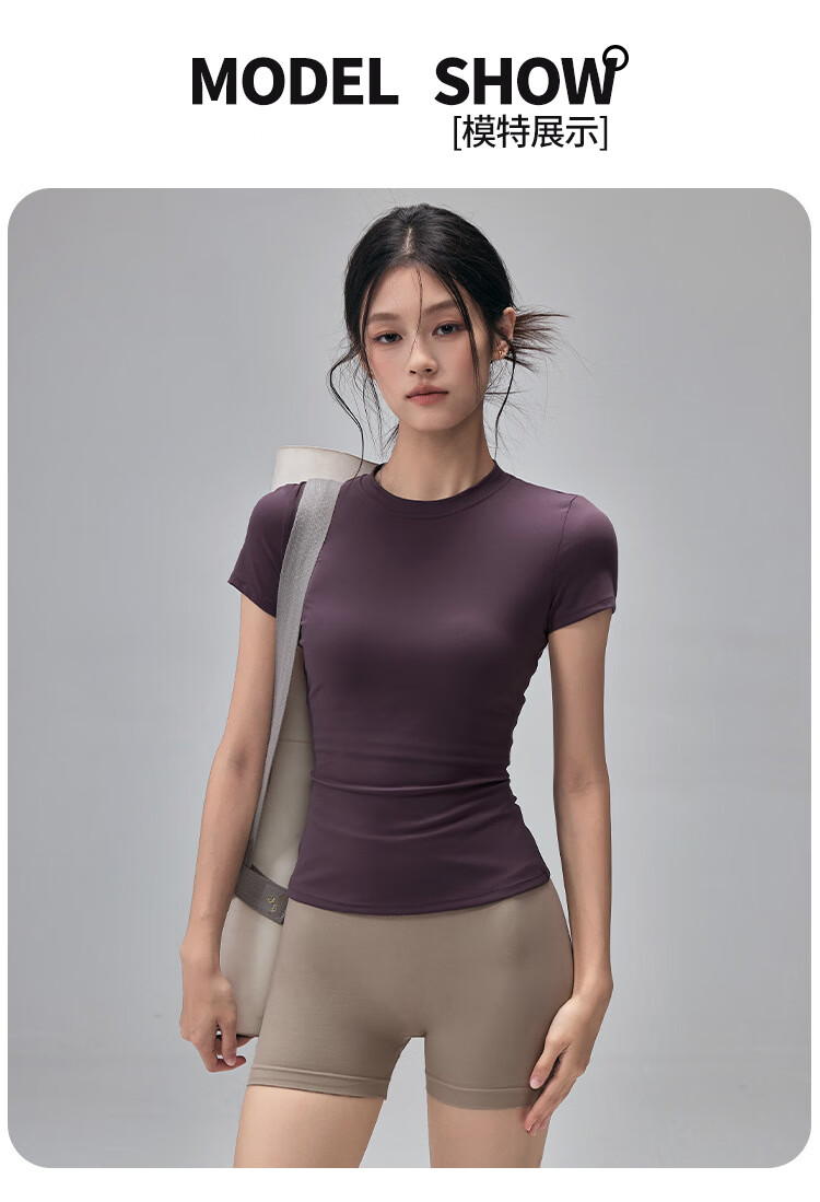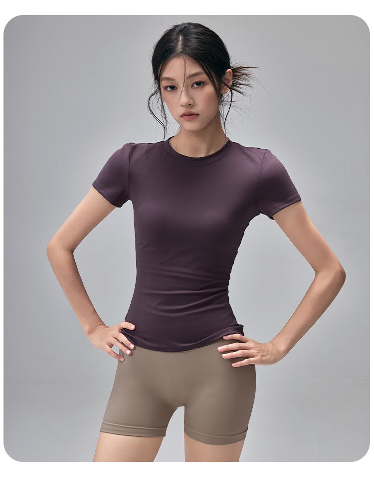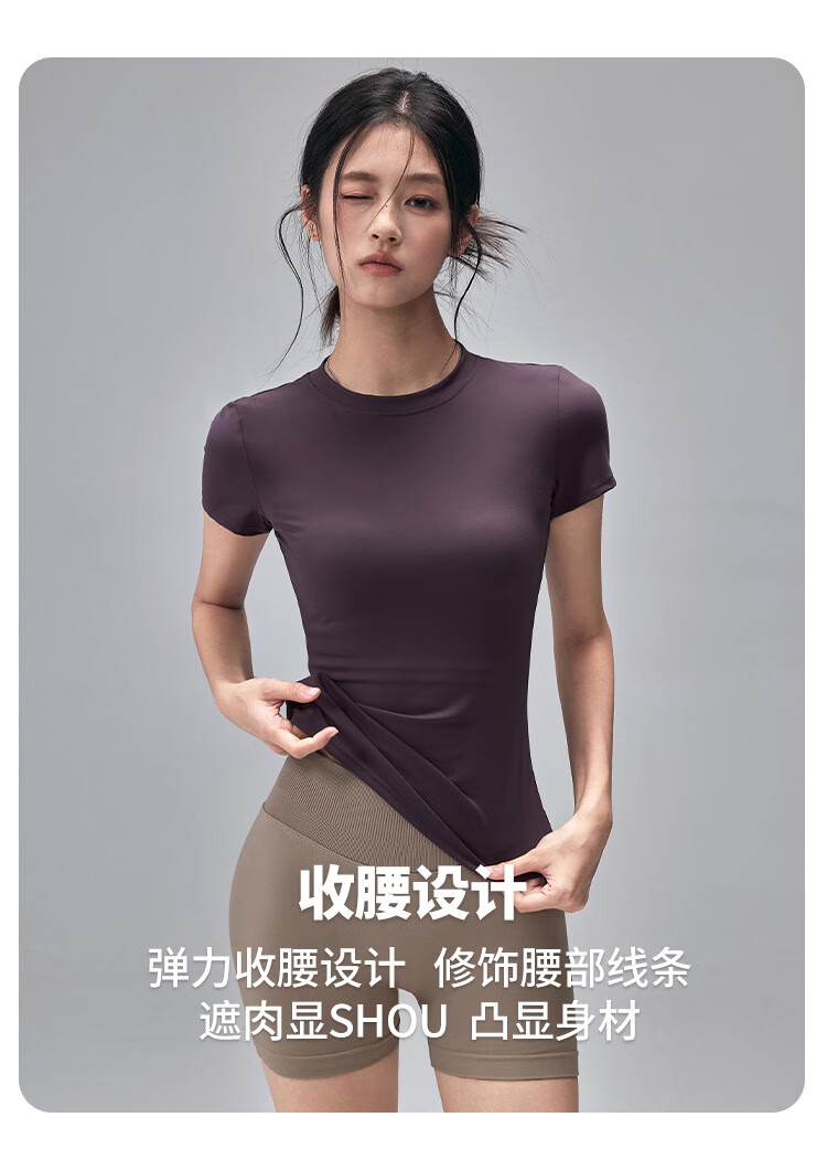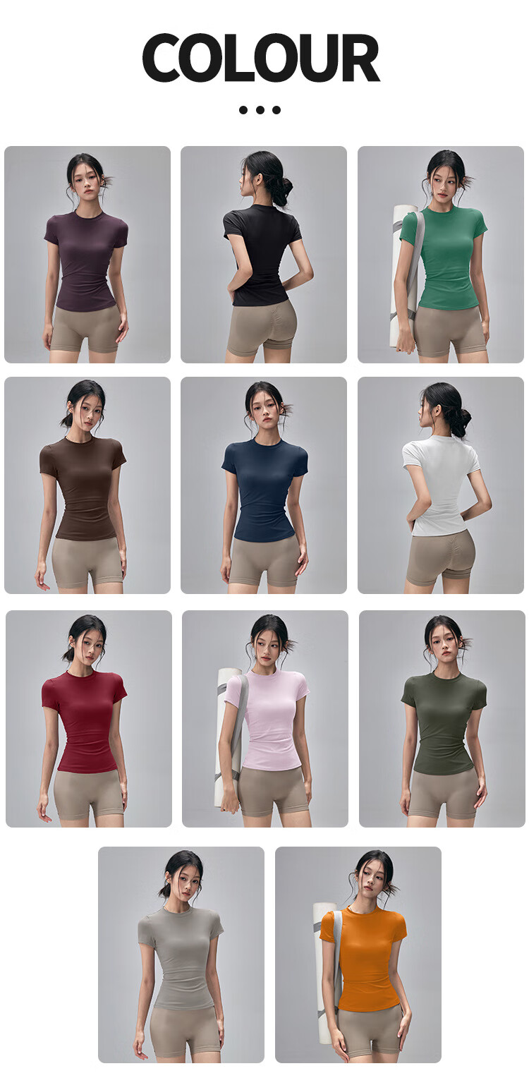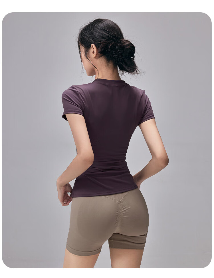 LULUUVTTOH Round Neck Sports Yoga Top Women's Slim Pilates T-Shirt Summer Short-Sleeved Thin Quick-Drying High-Elastic Fitness Wear Frost Gray S