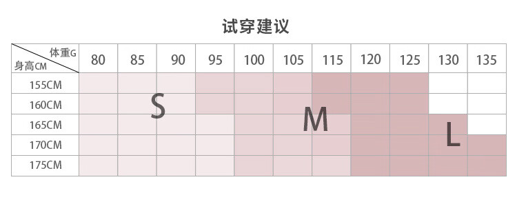 China (cm) 160-165/84-86 165-170 / 88-90 167-172 / 92-96 168-173 / 98-102 170-176 / 106-110