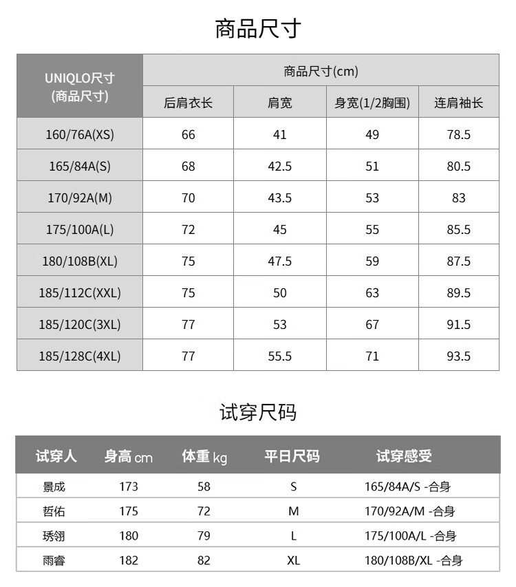 China (cm) 160-165/84-86 165-170 / 88-90 167-172 / 92-96 168-173 / 98-102 170-176 / 106-110