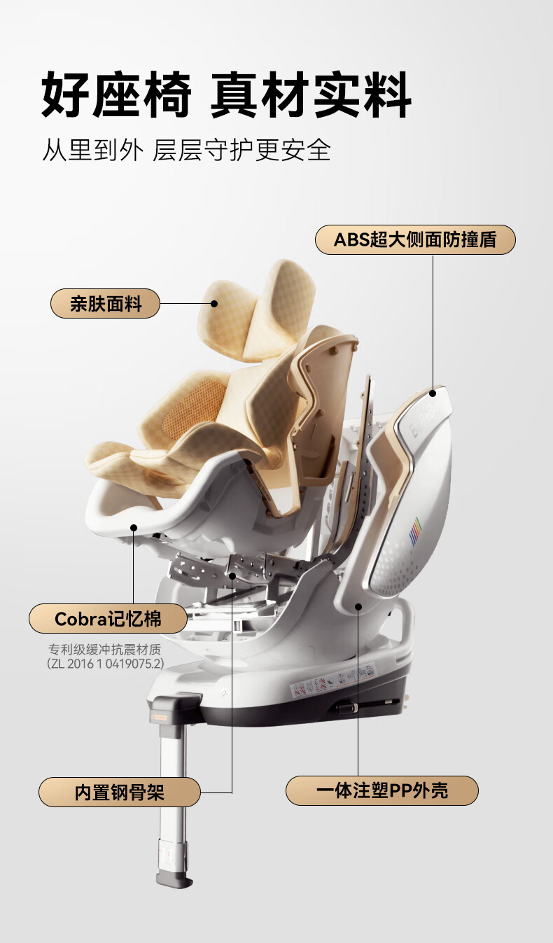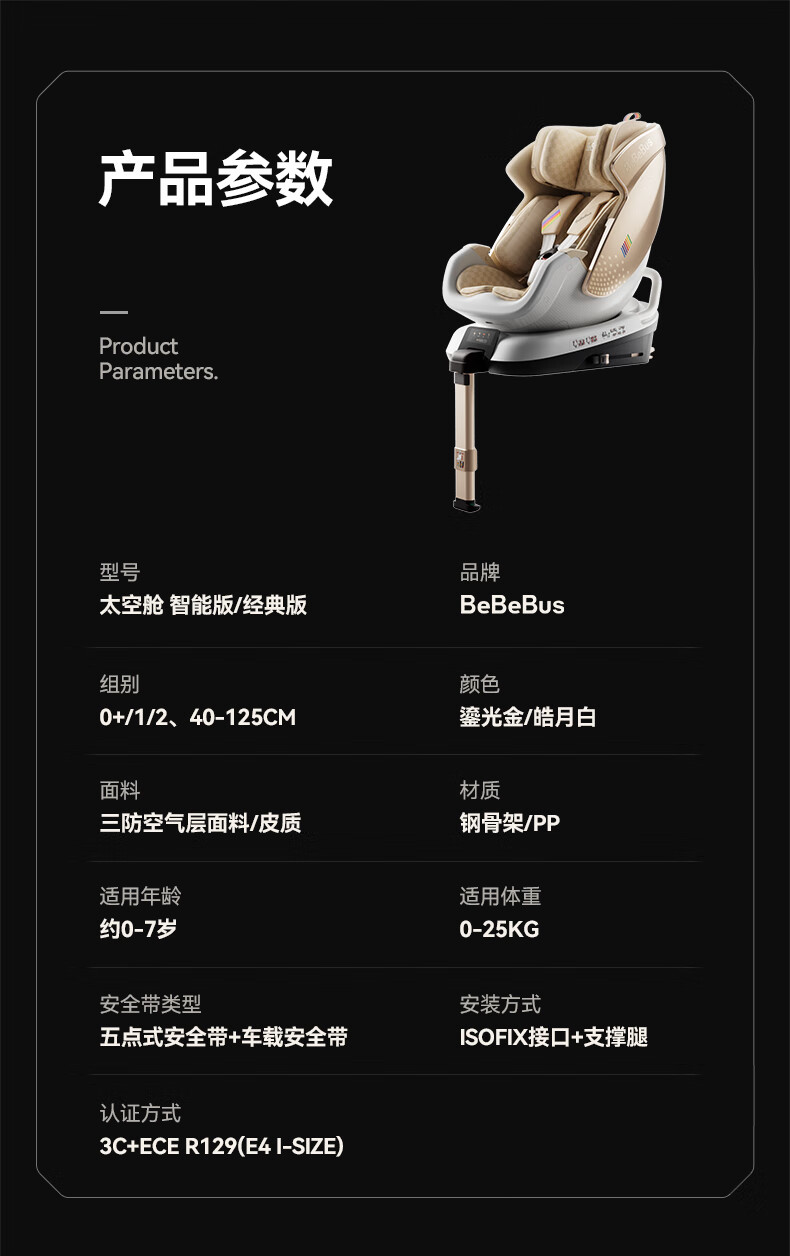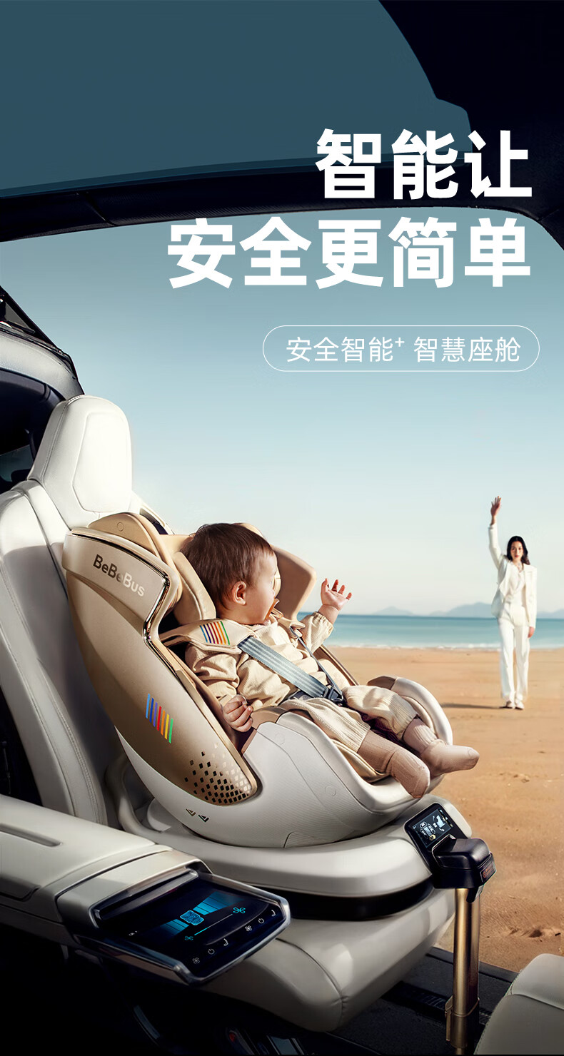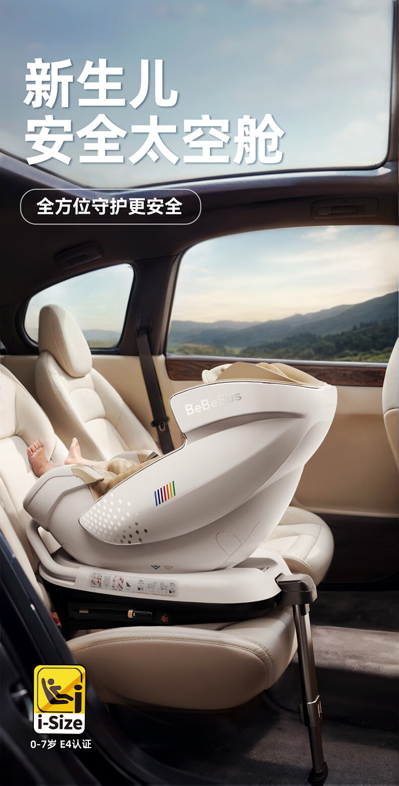 Bebebus safety seat for newborn infants and children 0-7 years old baby can lie down in the car with intelligent ventilation space capsule_Classic Little White Shield