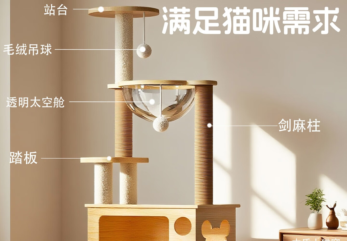 Bei Chuzhong Cat Climbing Frame Large Cat Tree Cat Nest Integrated Do Not Take Up Sky Pillar Non-Solid Wood Climbing Frame Play Sleeping Cat House Toy Dream Meow Fairy Castle Single Warehouse Single Nest 138cm Five-story Luxury Space Capsule
