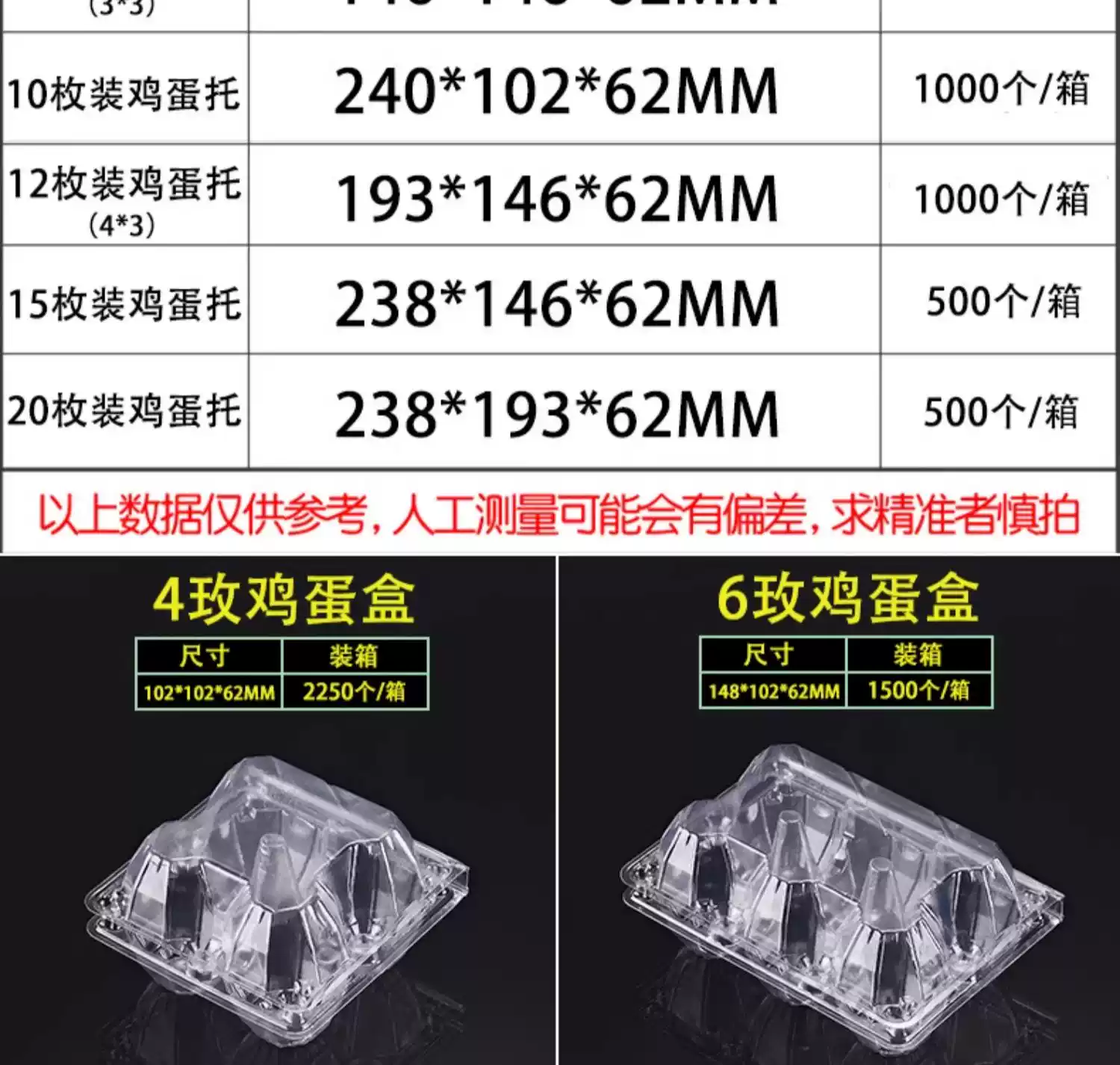 Zhong Zhanggui disposable egg tray plastic 10-piece compression-resistant and shock-proof multi-Specifications special 15-piece firewood egg packaging box for supermarkets Ten medium-sized egg packaging boxes thickened 10 pieces