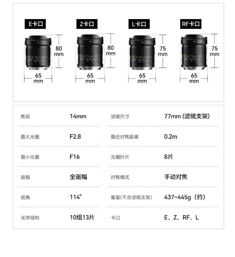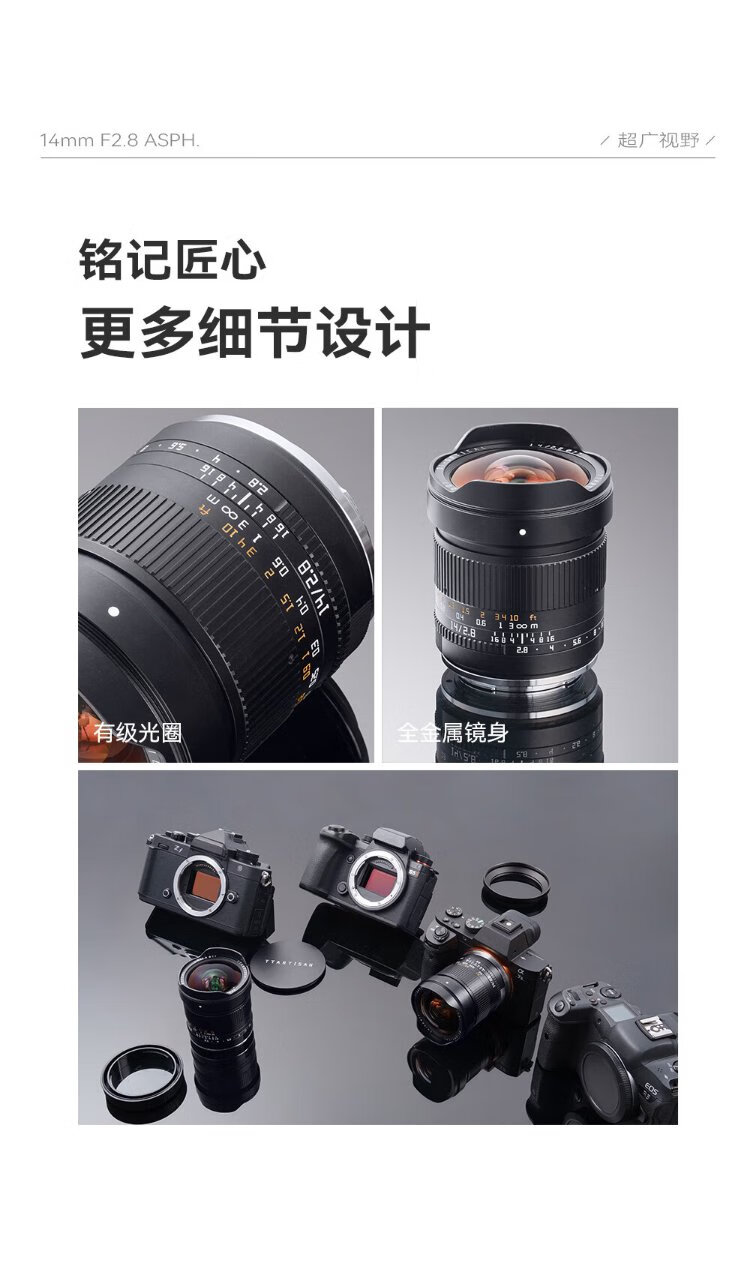 Mingjiang 14mm F2.8 full-frame ultra-wide-angle lens for starry sky scenery suitable for E-mount Z-mount RF mount L-mount micro-single camera lens Nikon Z-mount