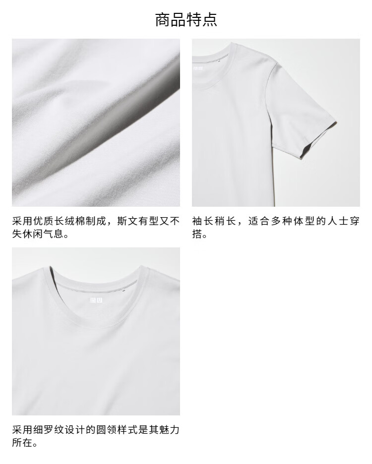 UNIQLO Women's SUPIMA COTTON Round Neck T-shirt Short Sleeve Bottoming New Style 474408 00 White M /160/84A
