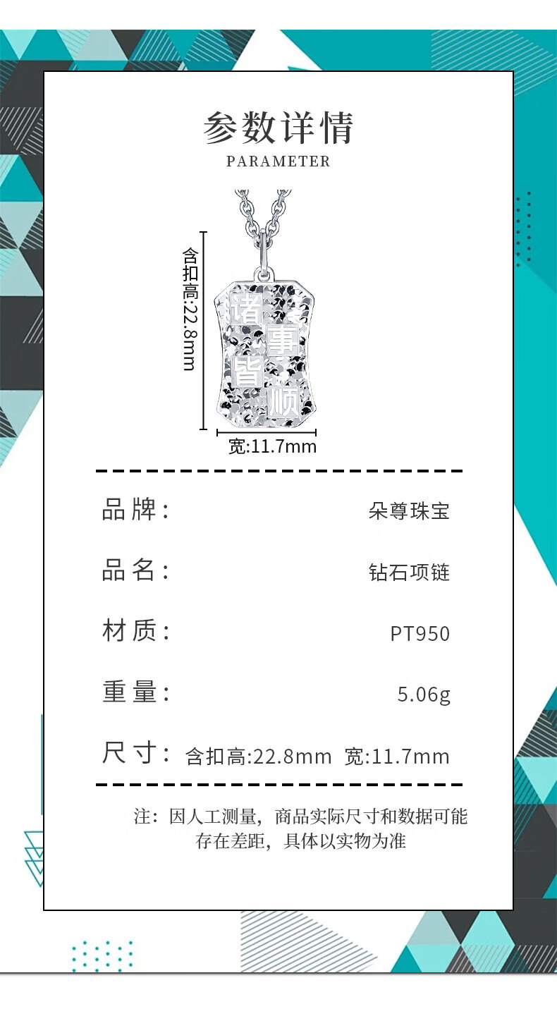 Duozun pt950 genuine platinum pendant, everything goes well with Fang brand women's single set of platinum necklace new birthday gift, everything goes well with Fang brand pendant 4.9g