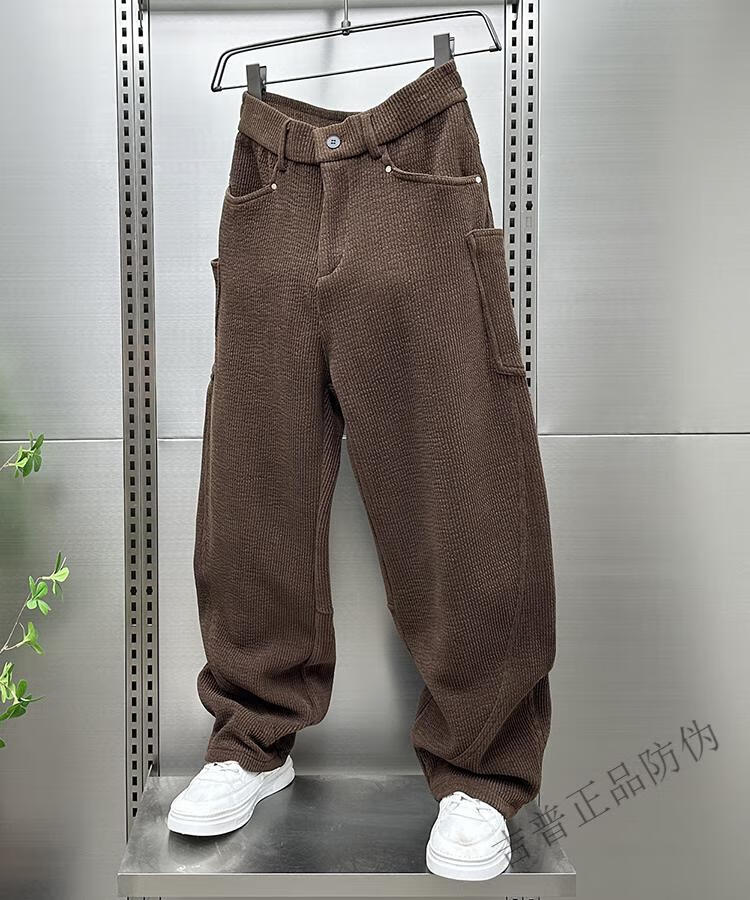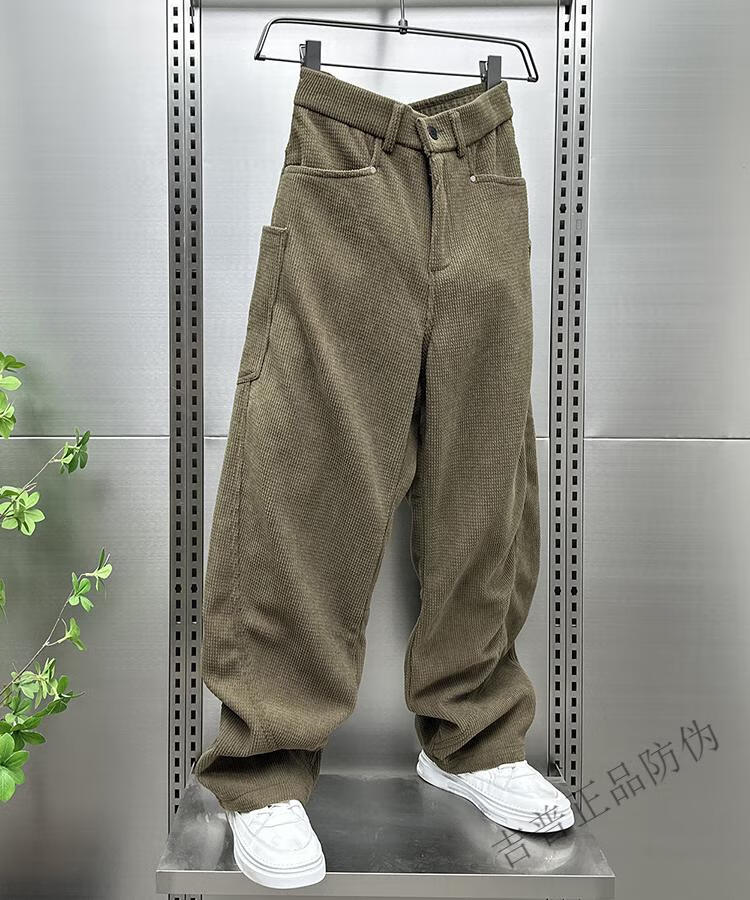 JEEP SPIRIT autumn and winter plus velvet 2025 American casual trousers men's machete pants loose straight corduroy sports trousers black plus * velvet XL 135-155Jin Jin equals 0.5 kg