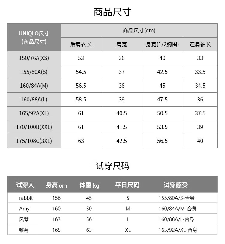 China (cm) 160-165/84-86 165-170 / 88-90 167-172 / 92-96 168-173 / 98-102 170-176 / 106-110