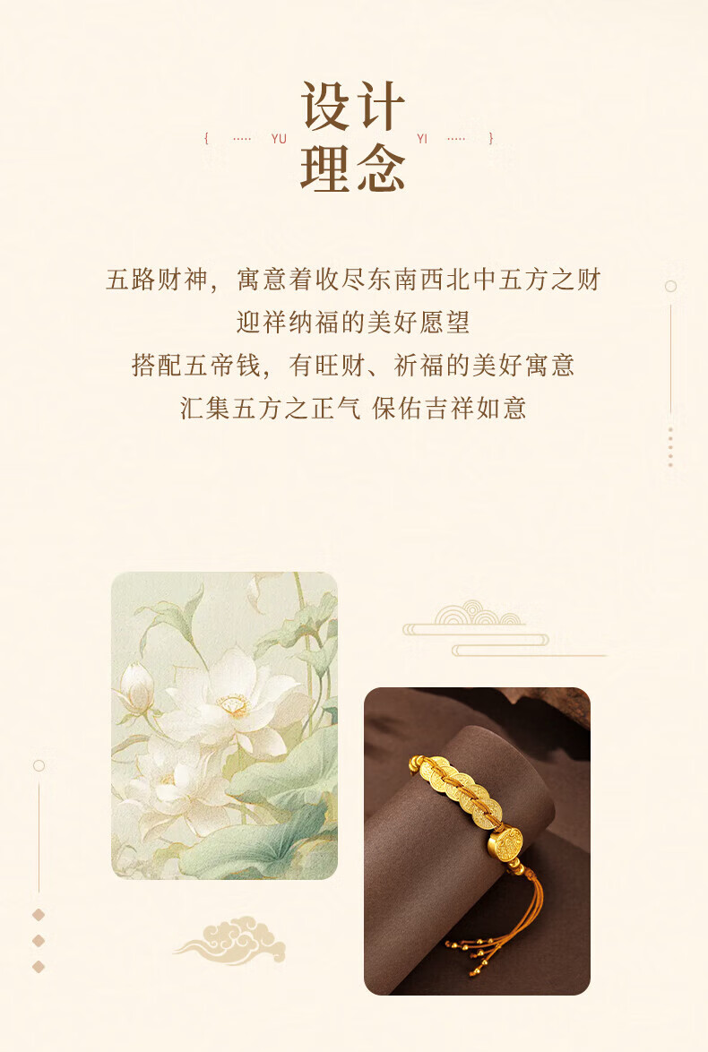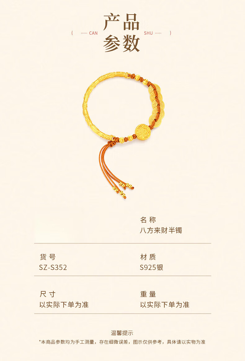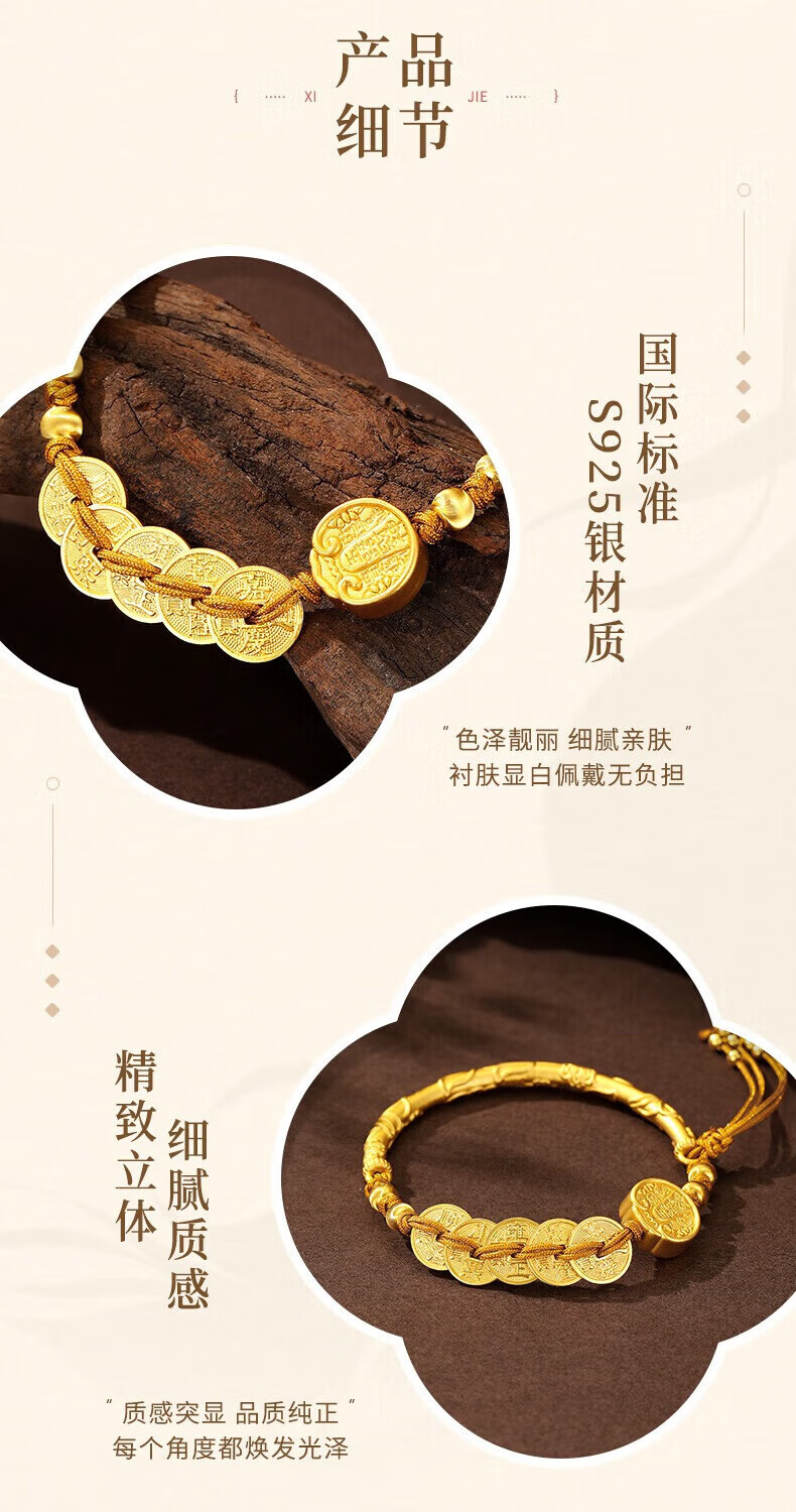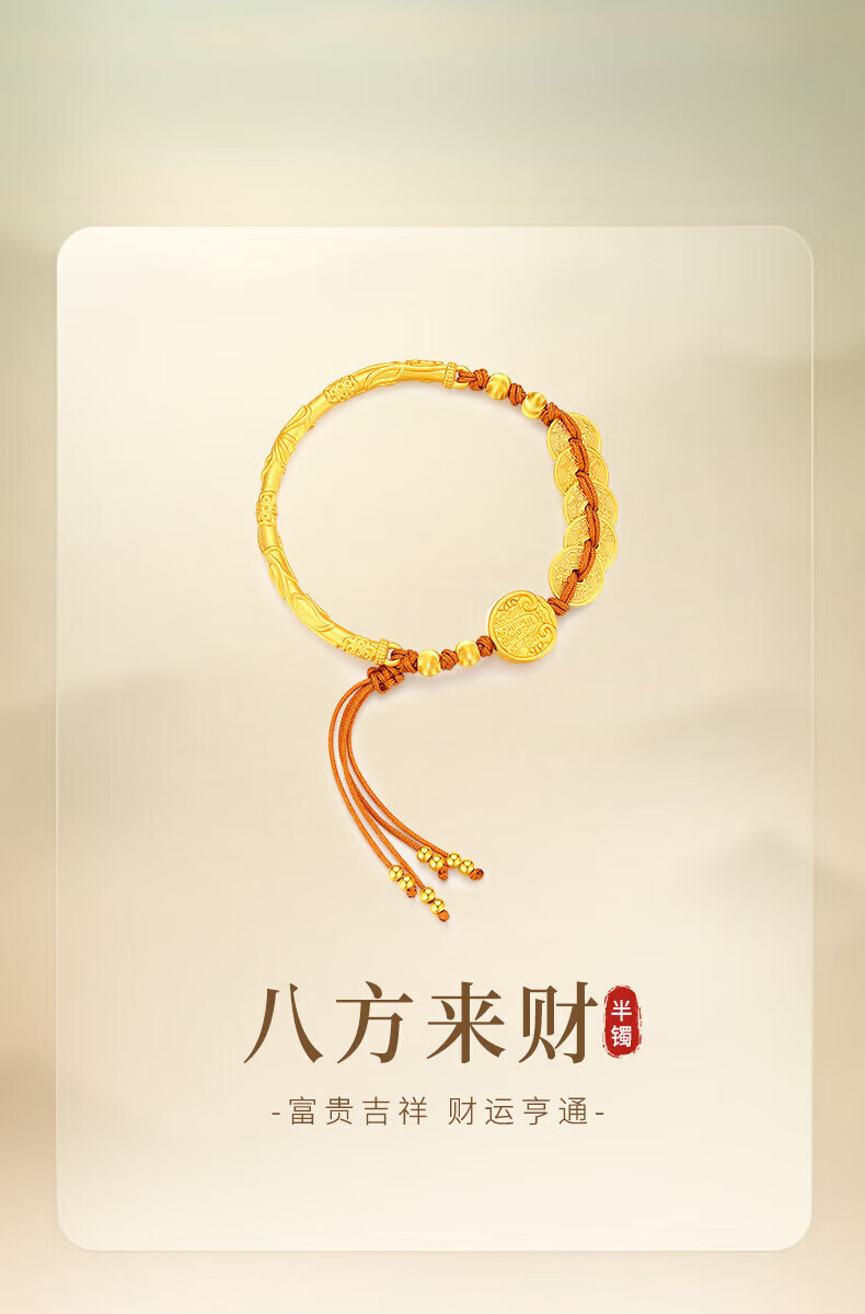 Chow Tai Fook Bafang Lai Cai Half Bracelet Women's Sterling Silver Five Emperors Money New Chinese Style National Style Bracelet Bracelet Jewelry Birthday Gift for Girlfriend Classic Brand Gift Box Bafang Lai Cai Half Bracelet