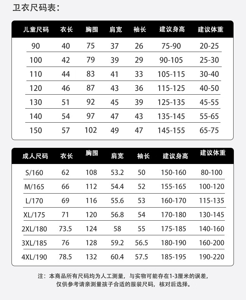 China (cm) 165 / 88-90 170 / 96-98 175 / 108-110 180 / 118-122 185 / 126-130