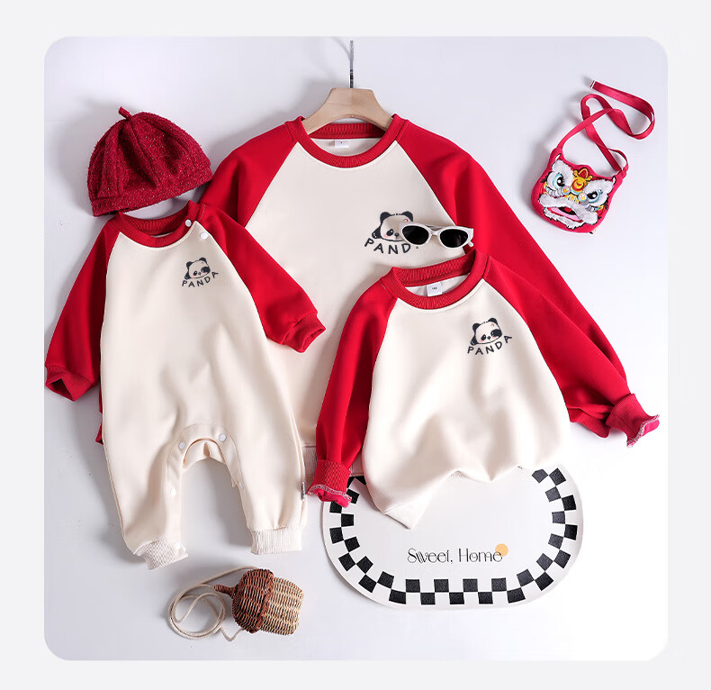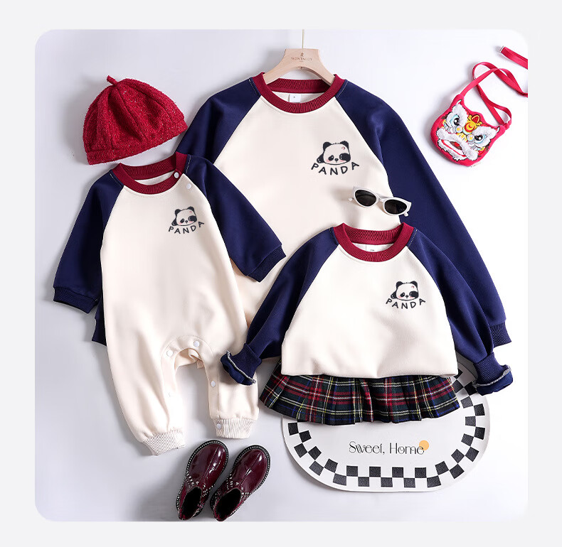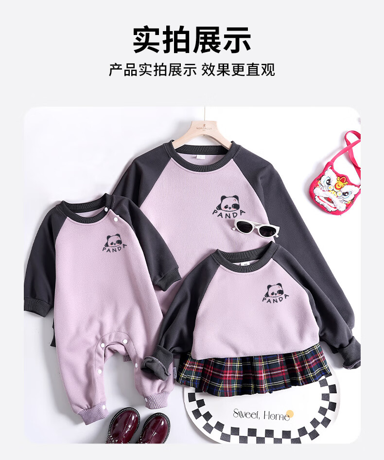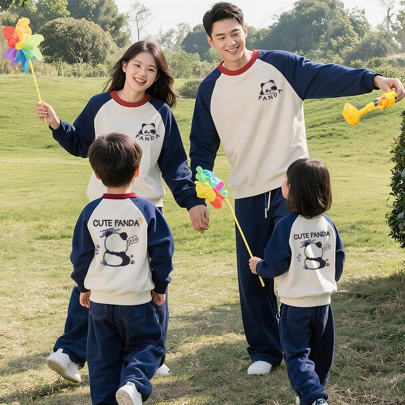G.duck little yellow duck children's clothing parent-child clothing three or four autumn sweatshirts mother and daughter clothing contrasting color round neck long sleeve spring and autumn family clothing blue apricot 165 S