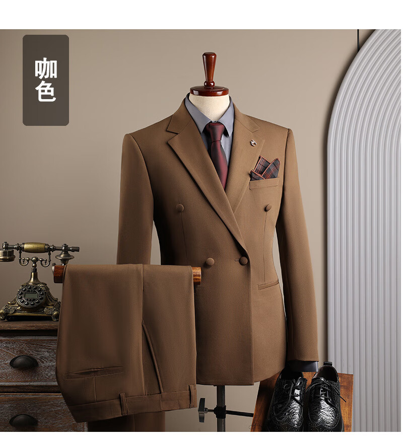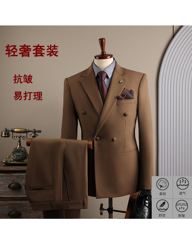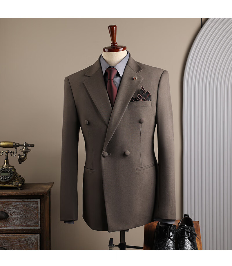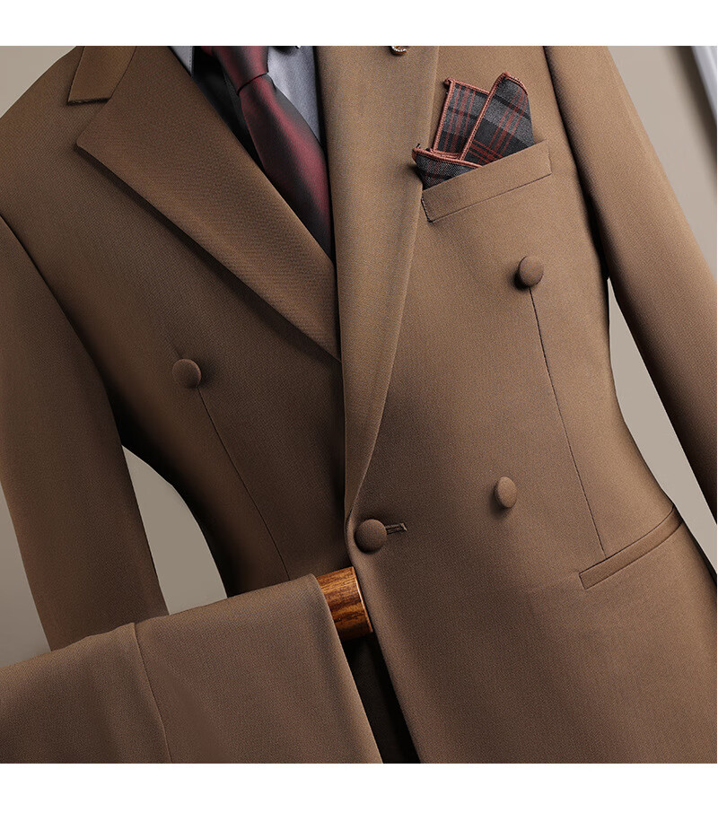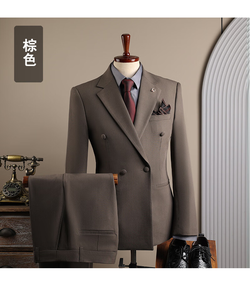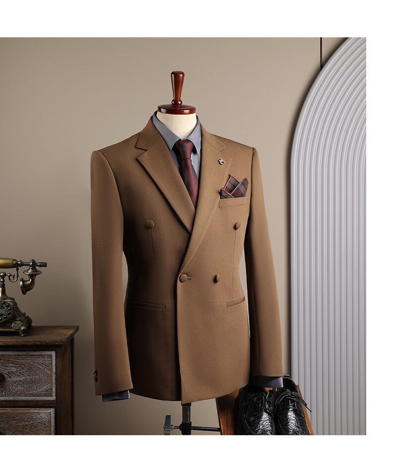 DK high-end men's suit suit men's double-breasted jacket casual business formal wear groomsman wedding suit two-piece brown (suit + trousers) 3XL 56 (145-158Jin Jin equals 0.5 kg)