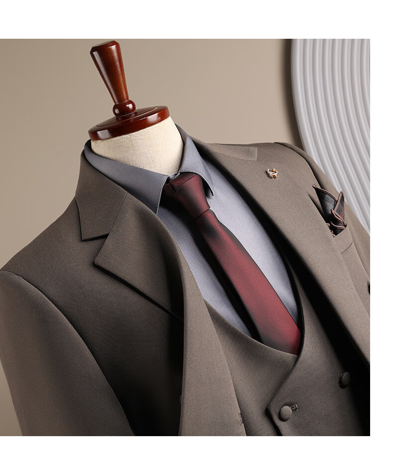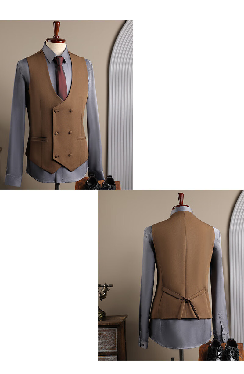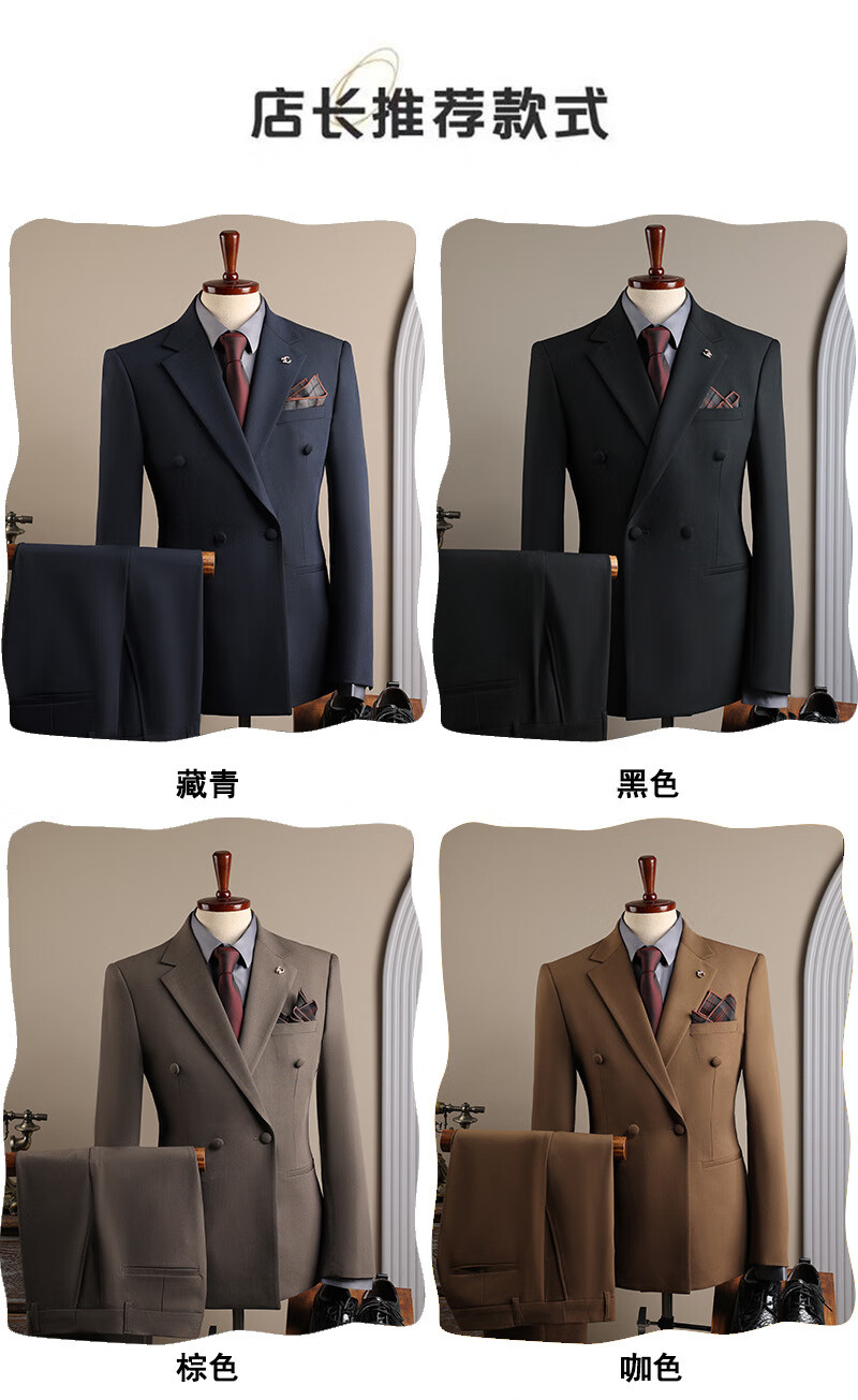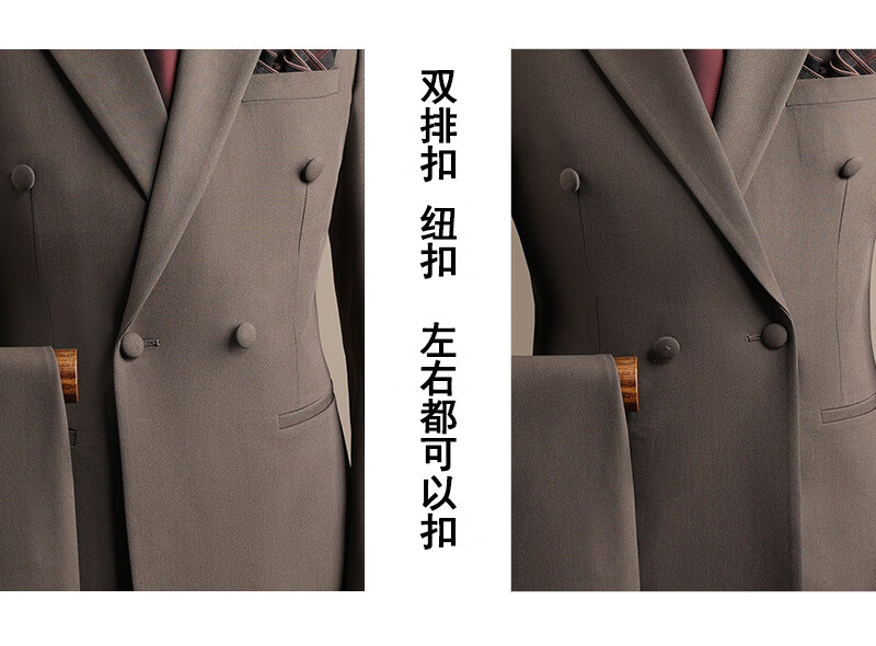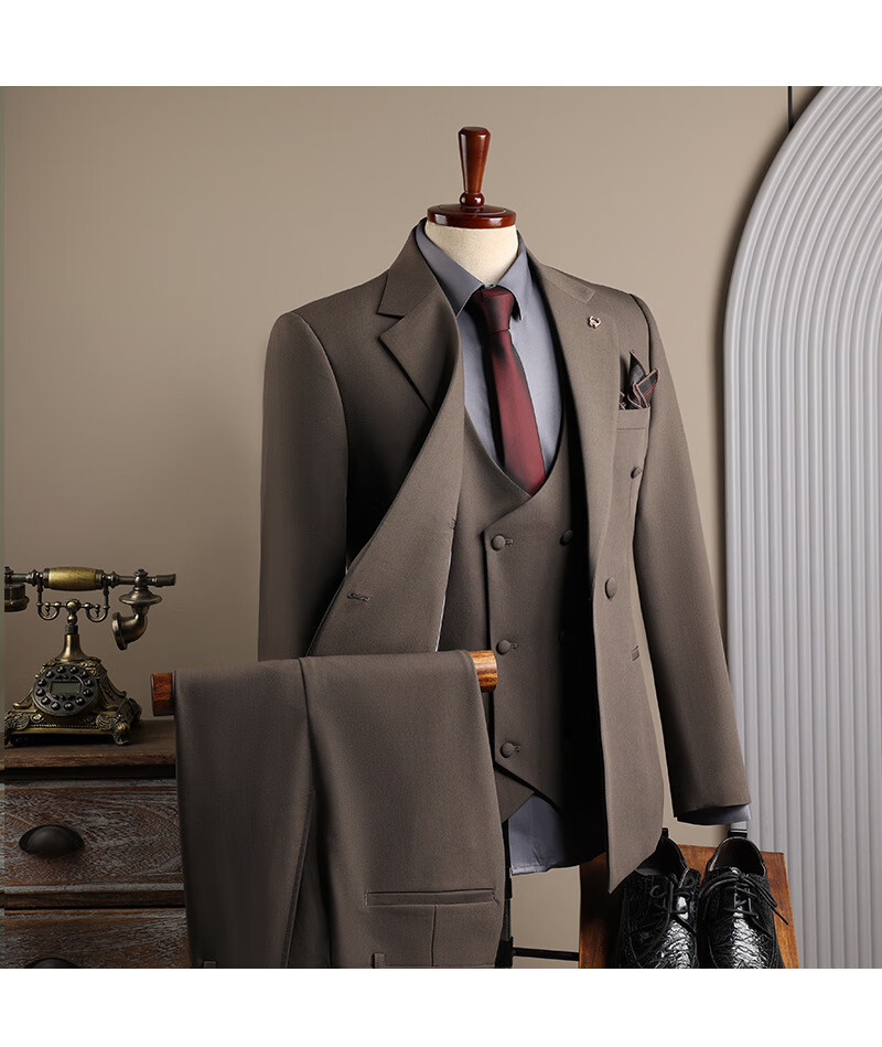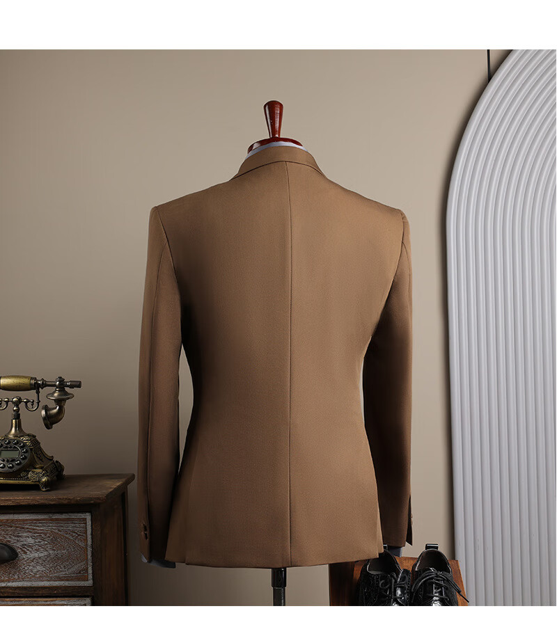 DK high-end men's suit suit men's double-breasted jacket casual business formal wear groomsman wedding suit two-piece brown (suit + trousers) 3XL 56 (145-158Jin Jin equals 0.5 kg)