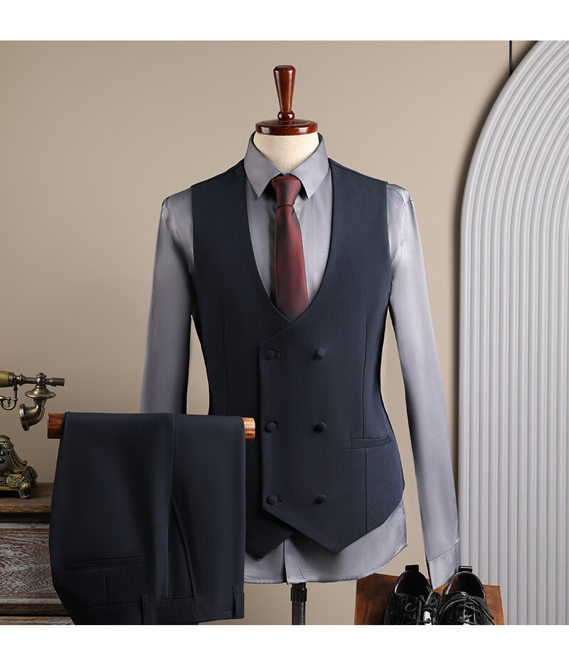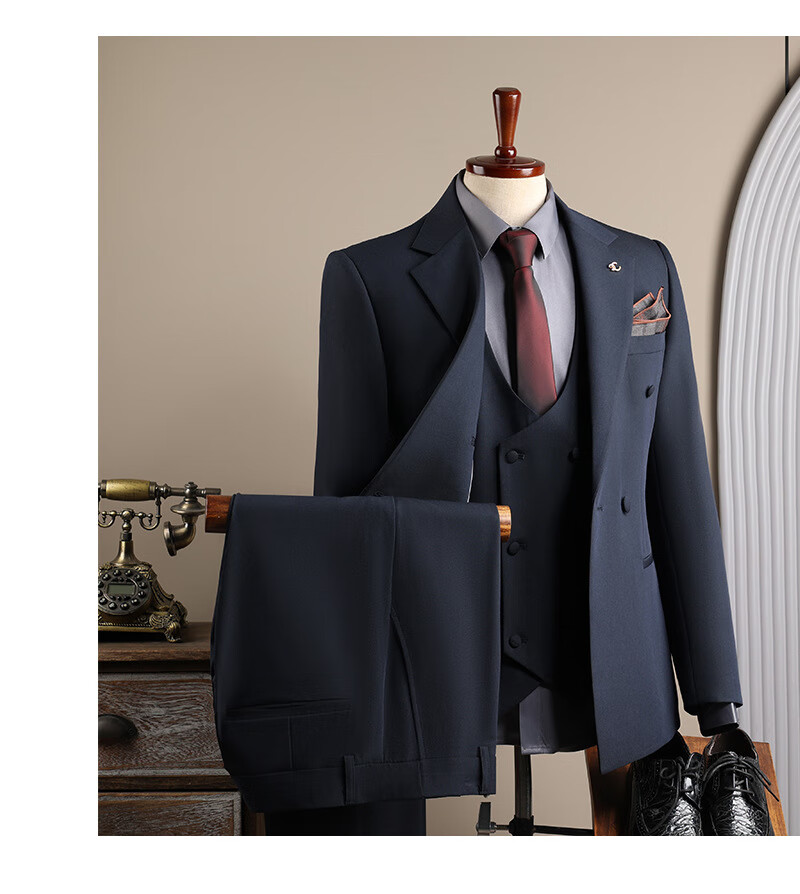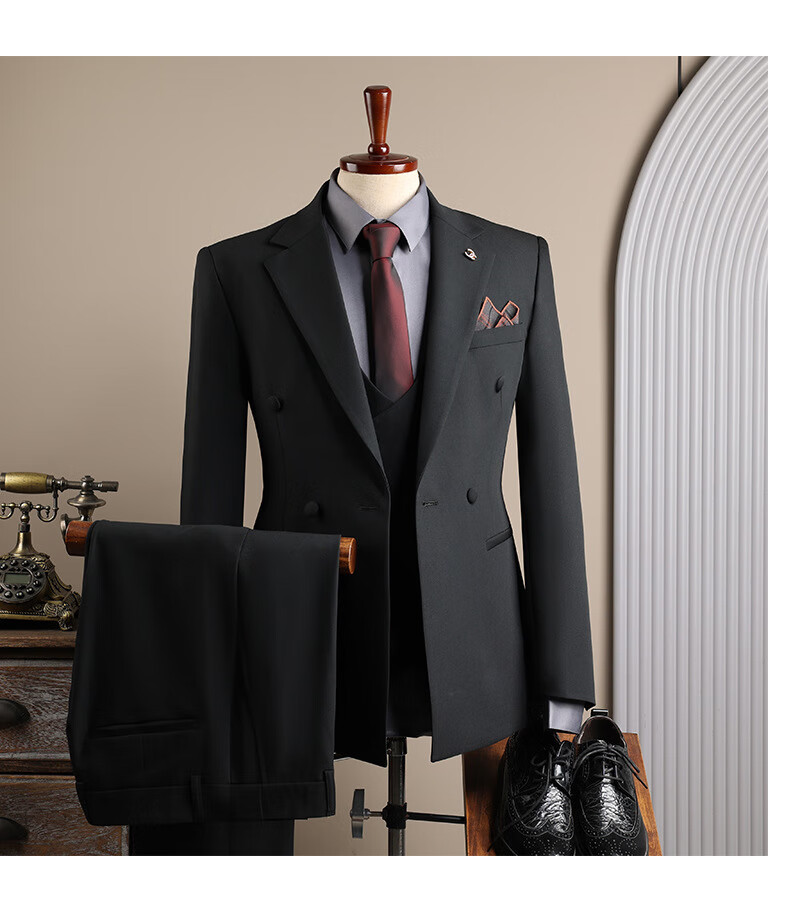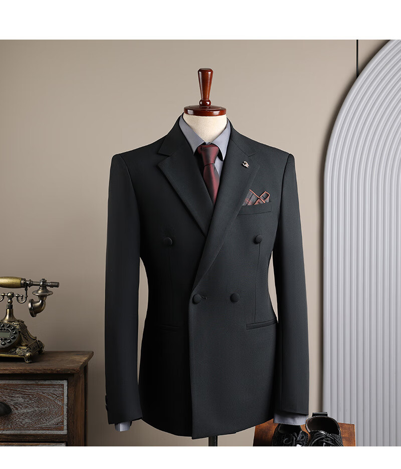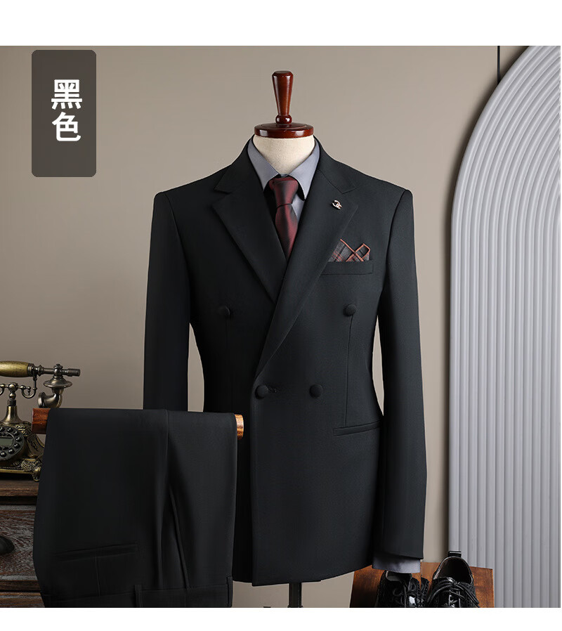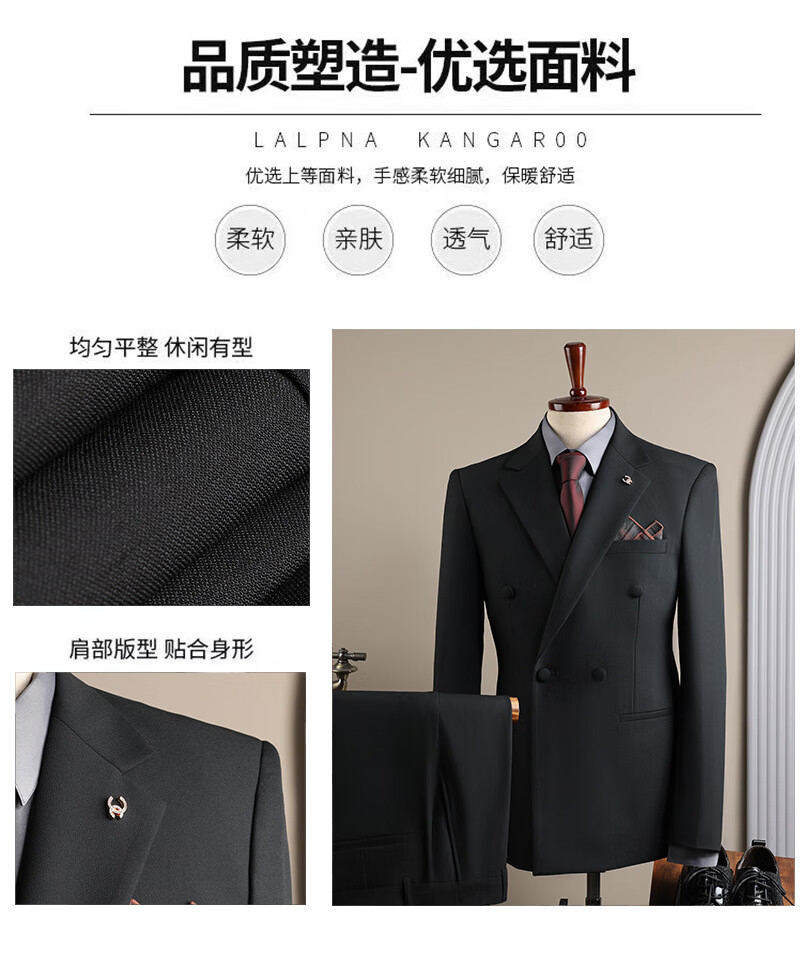 DK high-end men's suit suit men's double-breasted jacket casual business formal wear groomsman wedding suit two-piece brown (suit + trousers) 3XL 56 (145-158Jin Jin equals 0.5 kg)