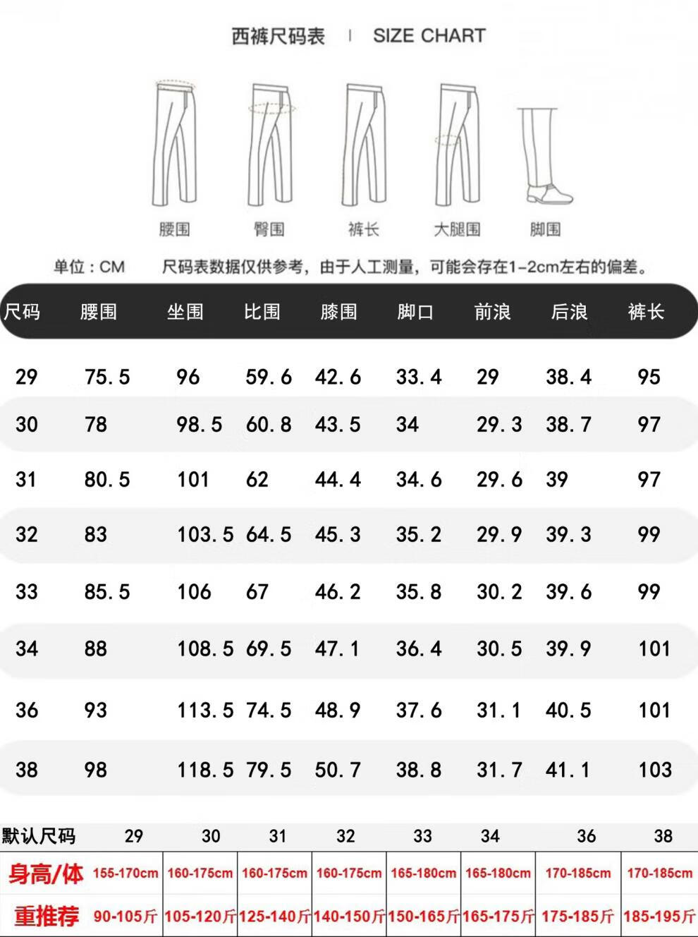 China (cm) 160-165/84-86 165-170 / 88-90 167-172 / 92-96 168-173 / 98-102 170-176 / 106-110