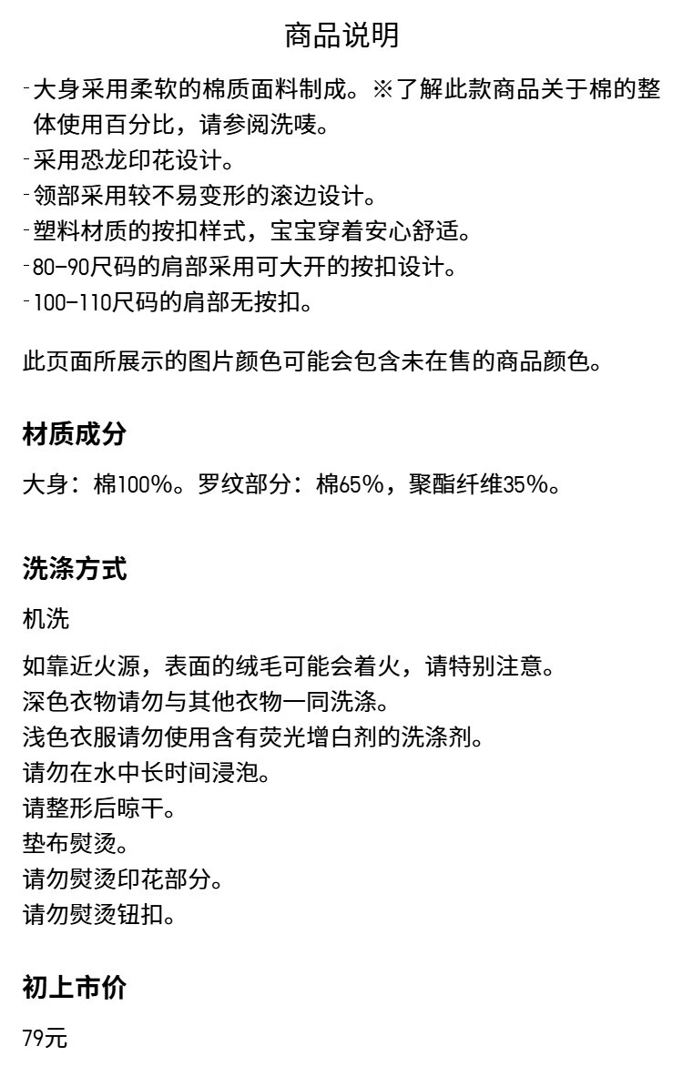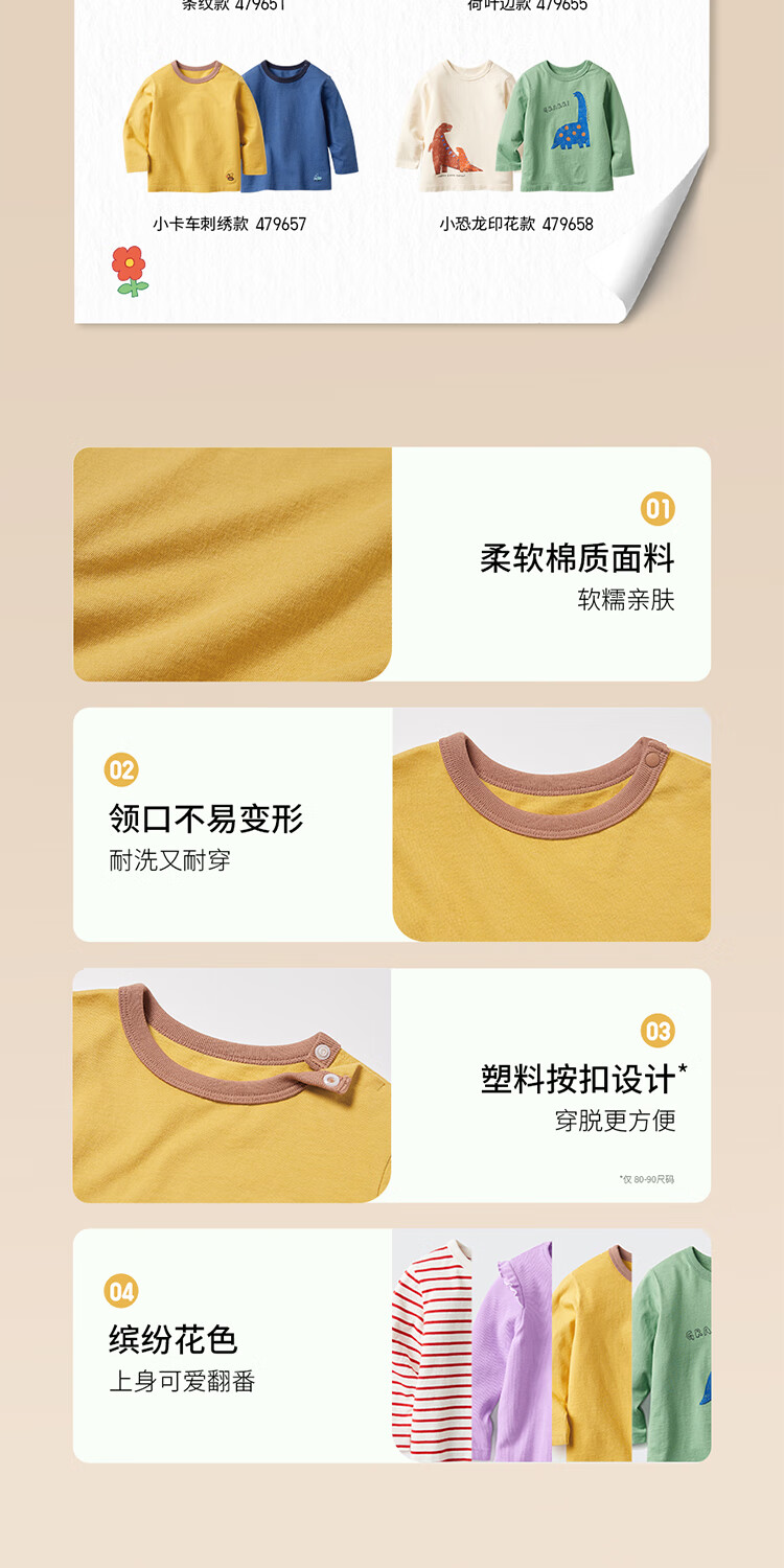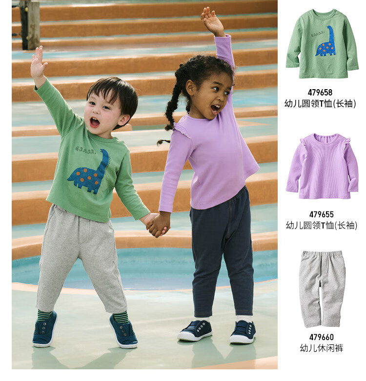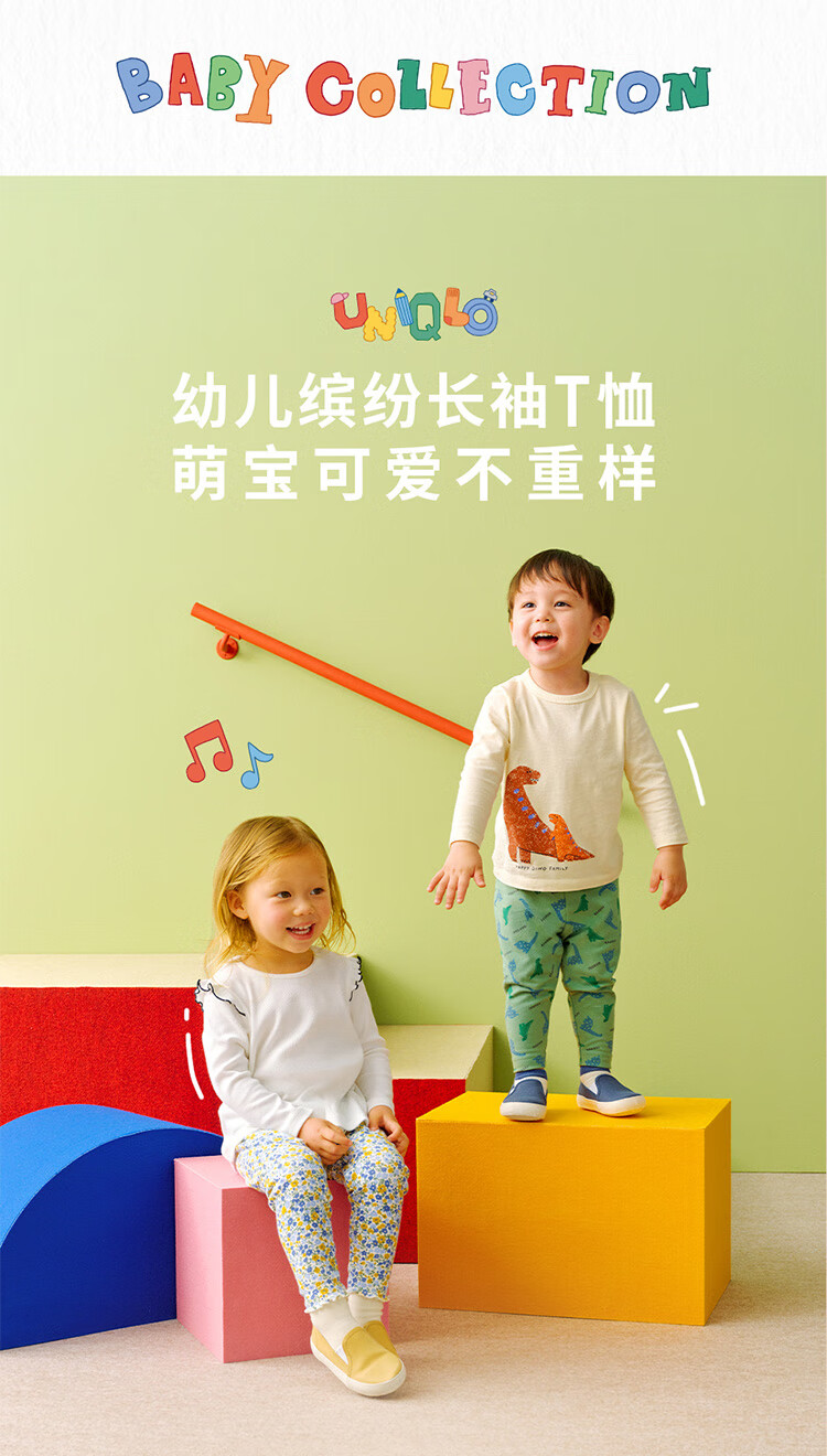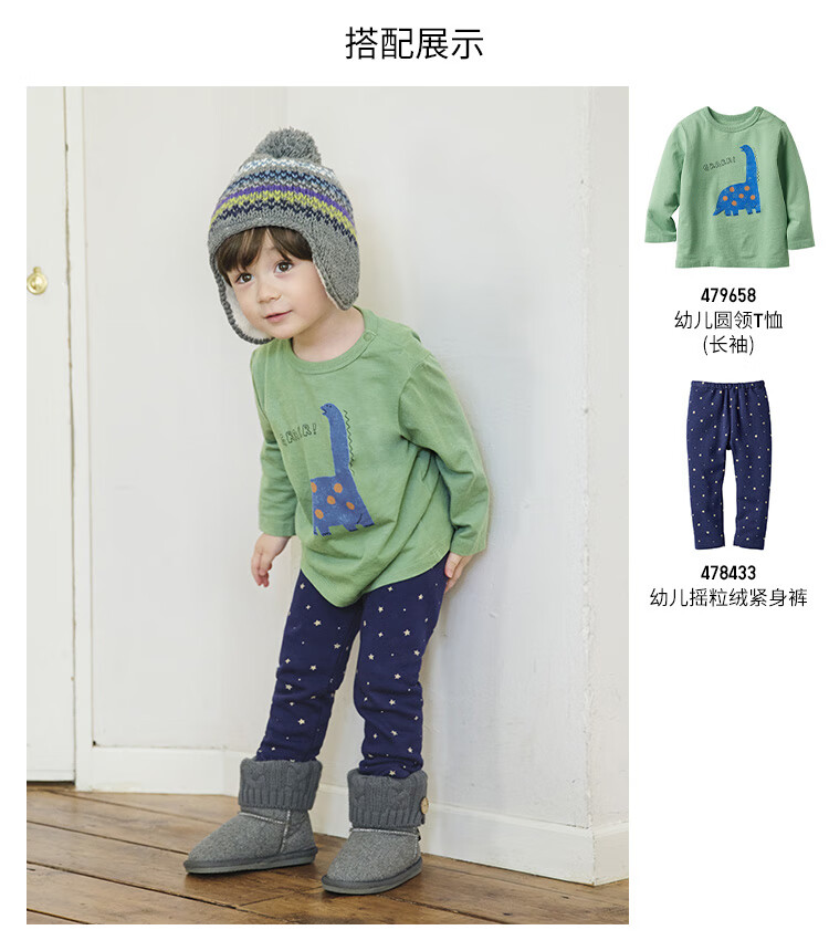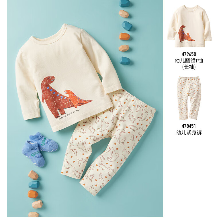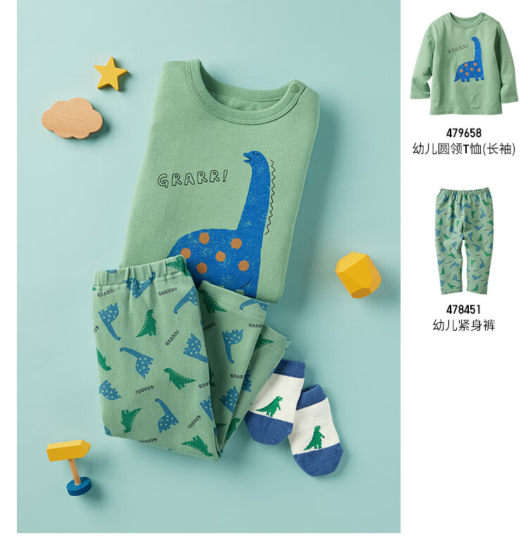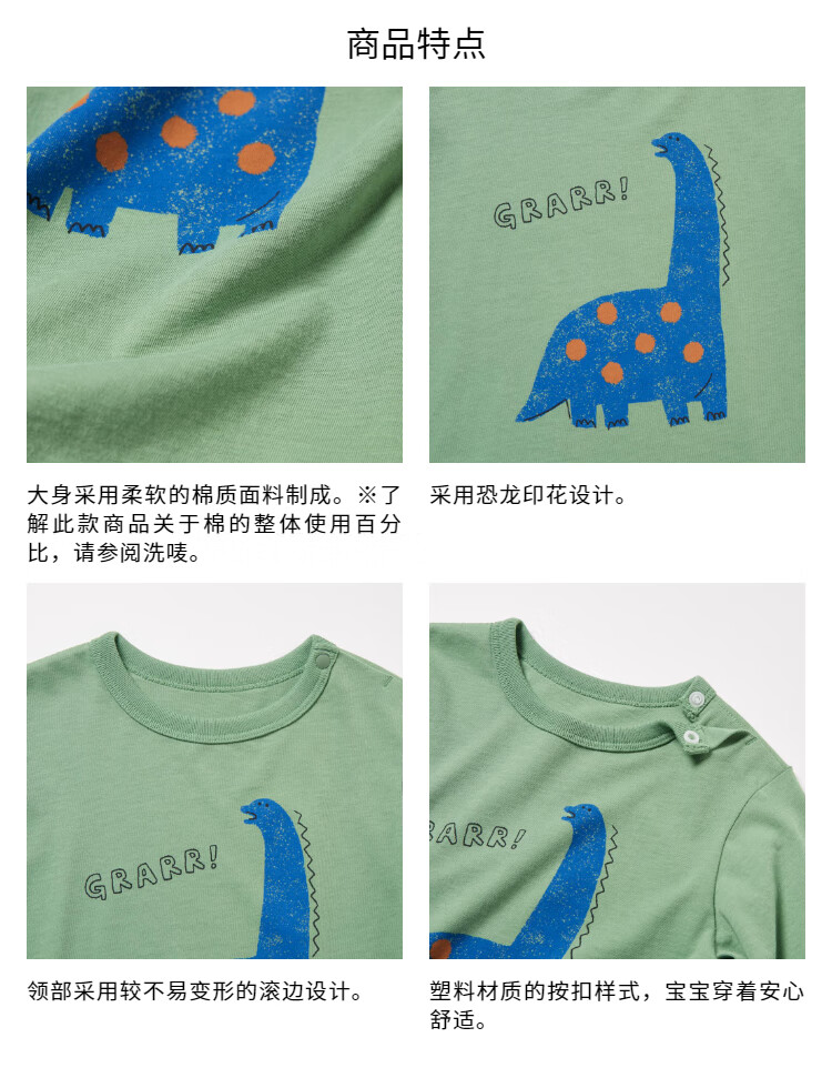 Uniqlo Infant and Toddler Round Neck T-shirt/Long Sleeve Dinosaur Print Pattern 25 Autumn and Winter New Style 479658 53 Grass Green 80