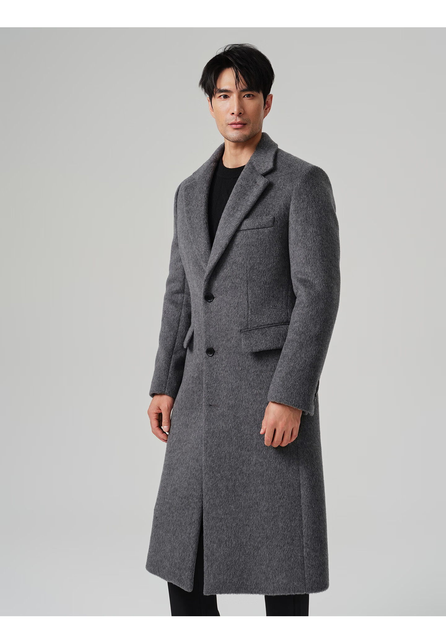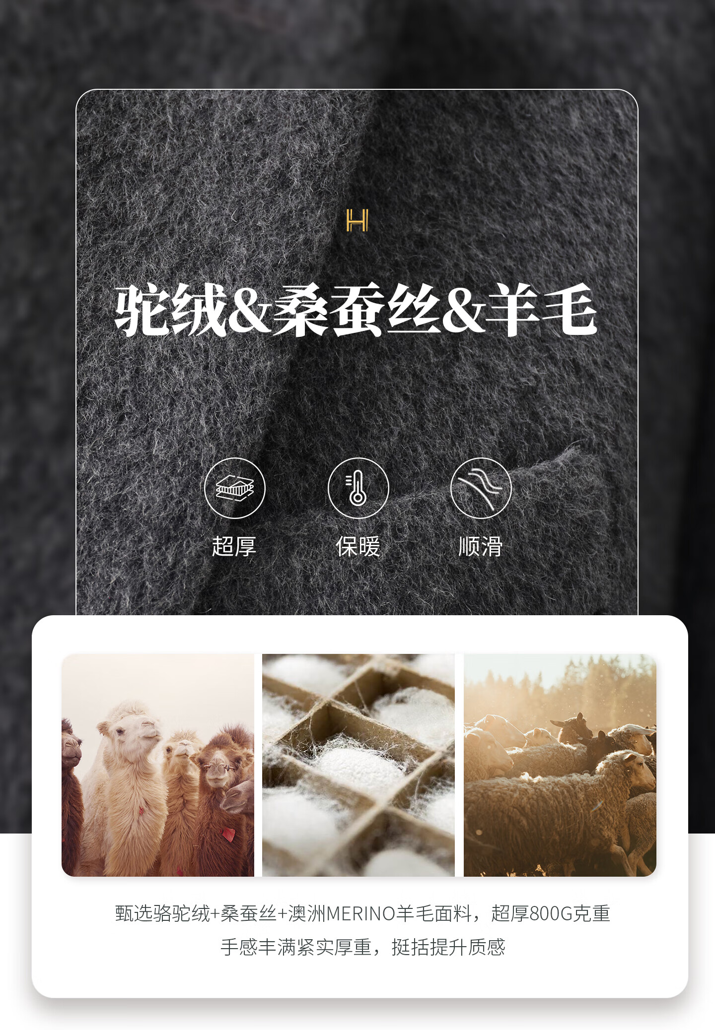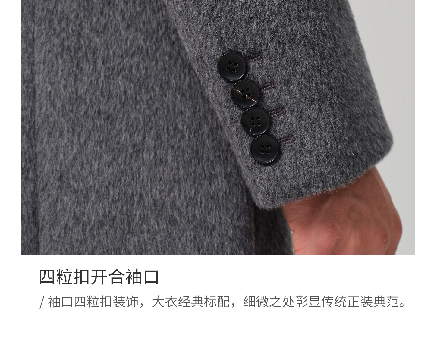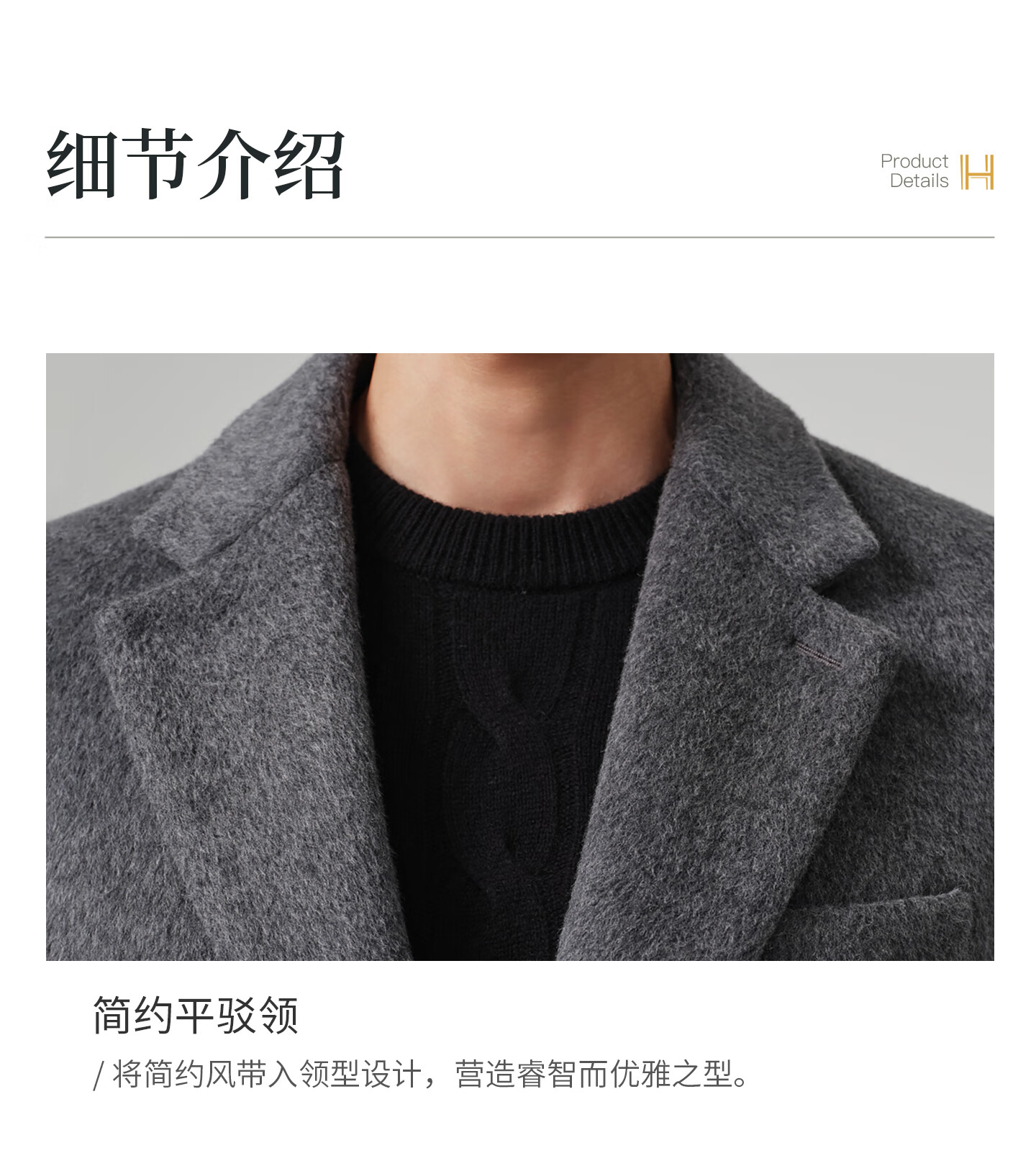 Hany (HANY) extra thick camel velvet extended coat men's new business mulberry silk wool casual gray woolen coat winter Gluck volcanic ash single size custom version L (50) recommended weight 150-170Jin Jin equals 0.5 kg