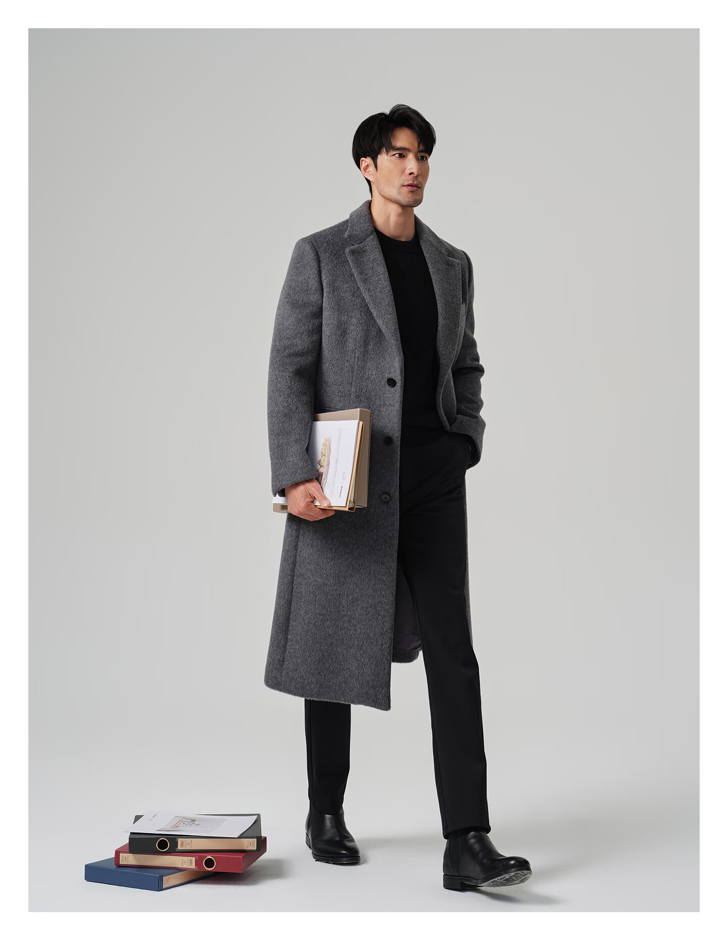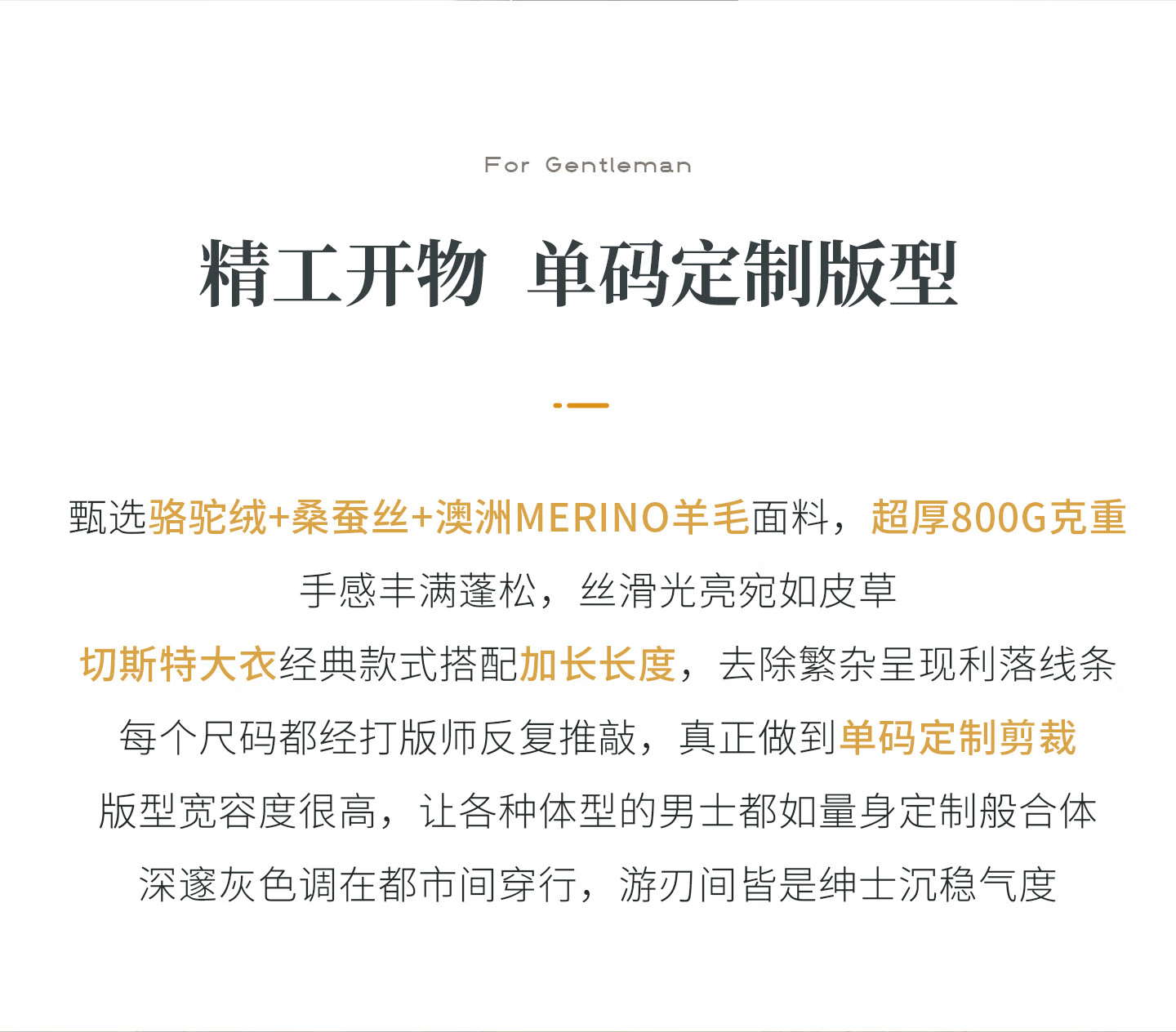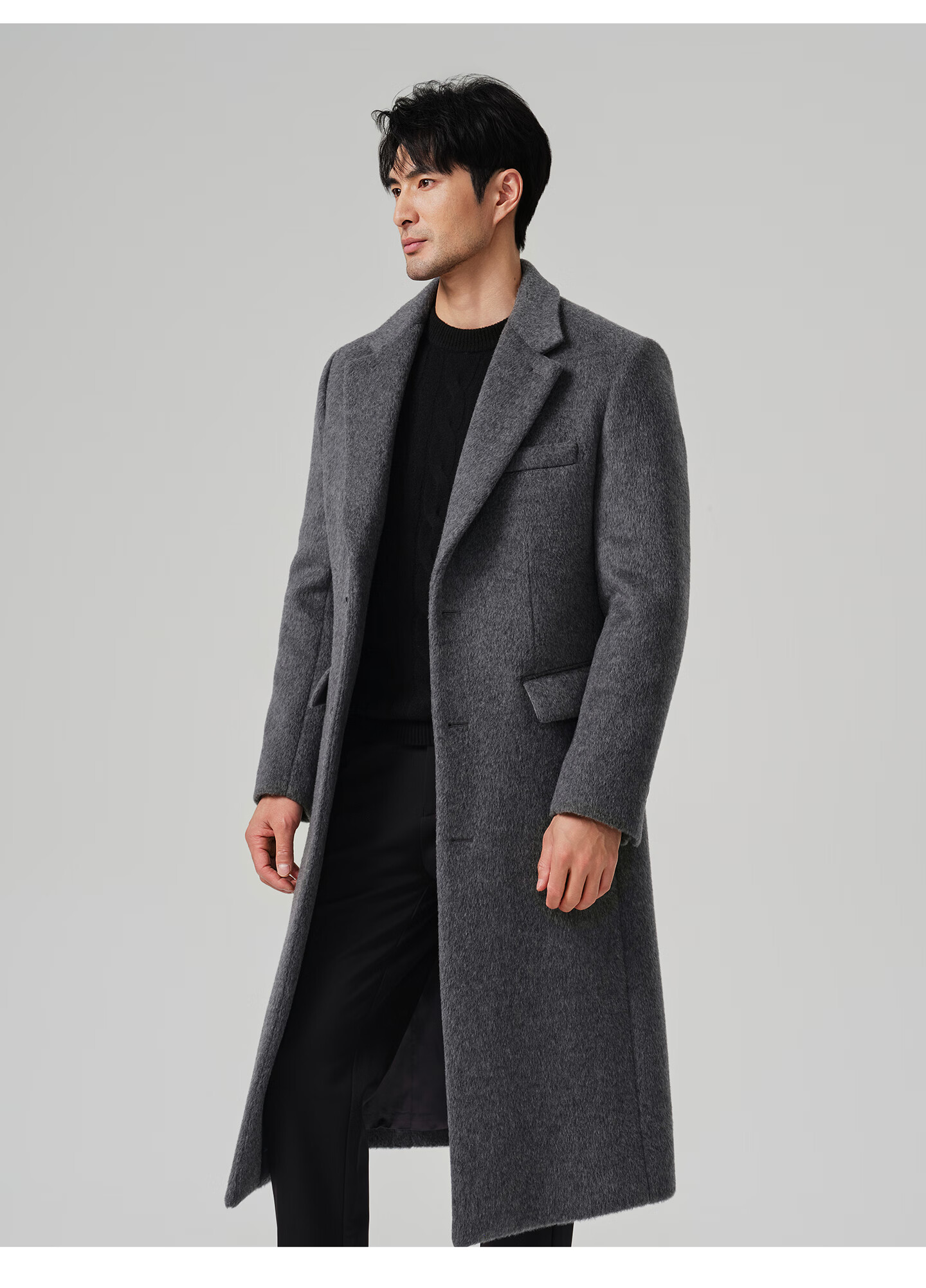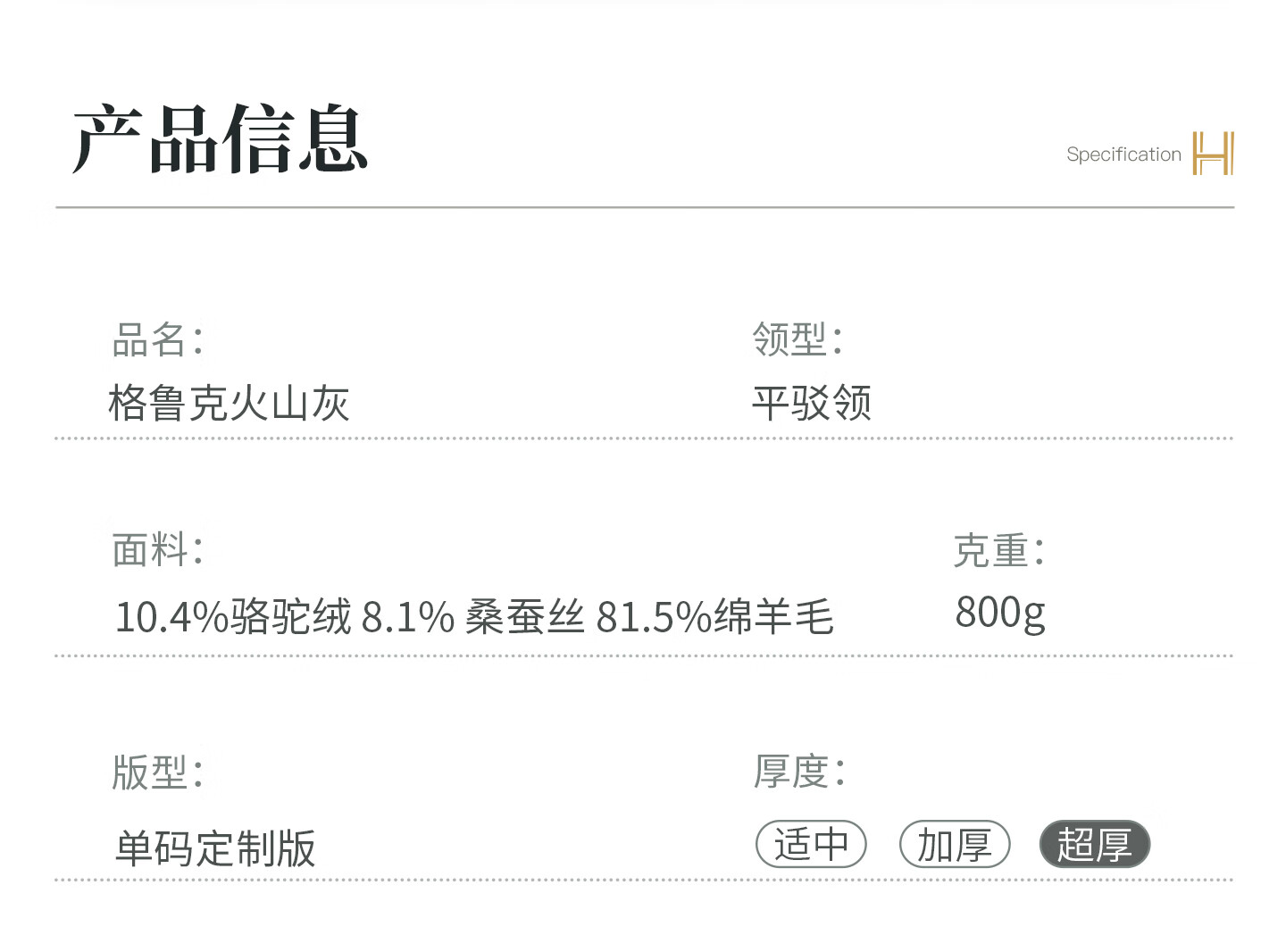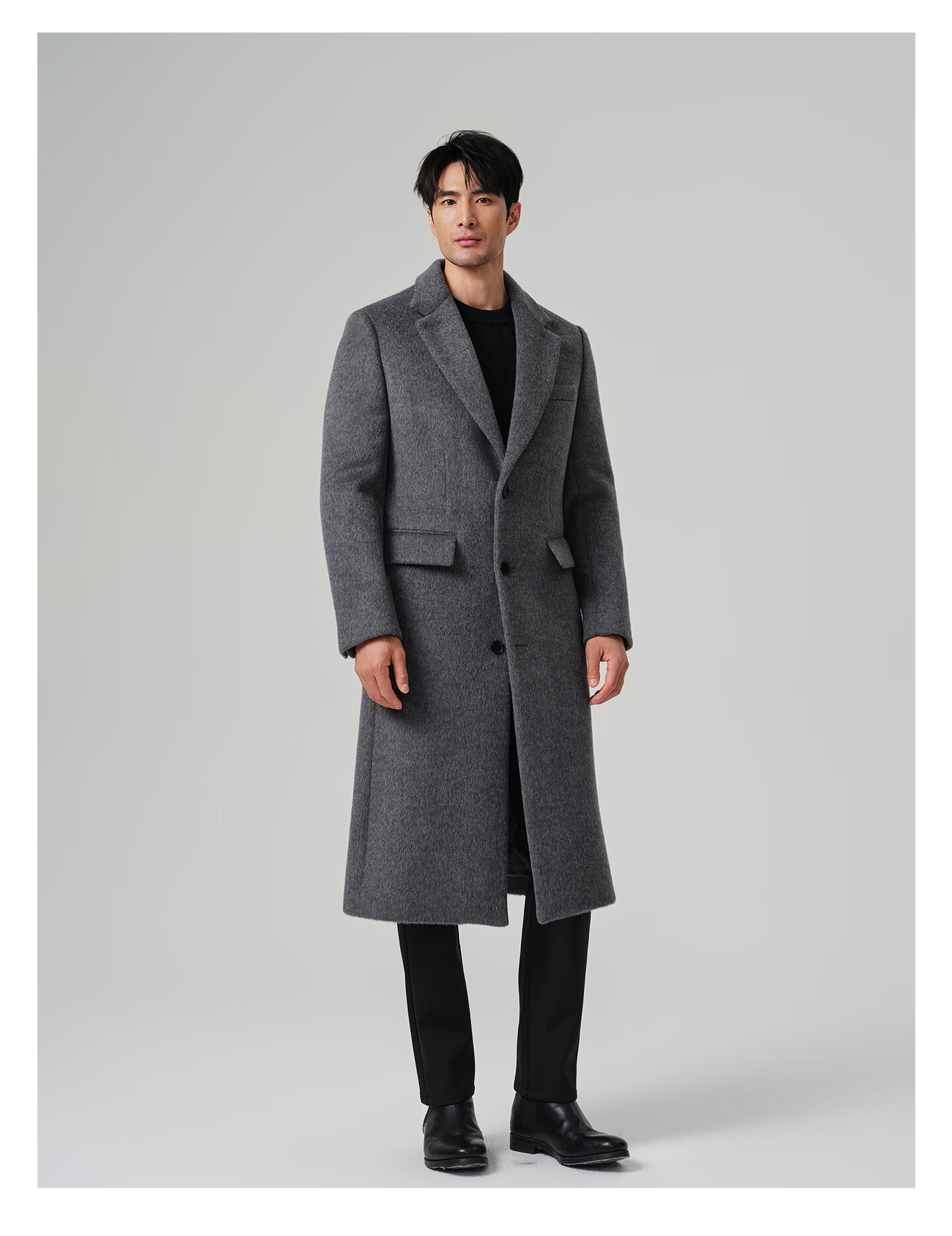 Hany (HANY) extra thick camel velvet extended coat men's new business mulberry silk wool casual gray woolen coat winter Gluck volcanic ash single size custom version L (50) recommended weight 150-170Jin Jin equals 0.5 kg
