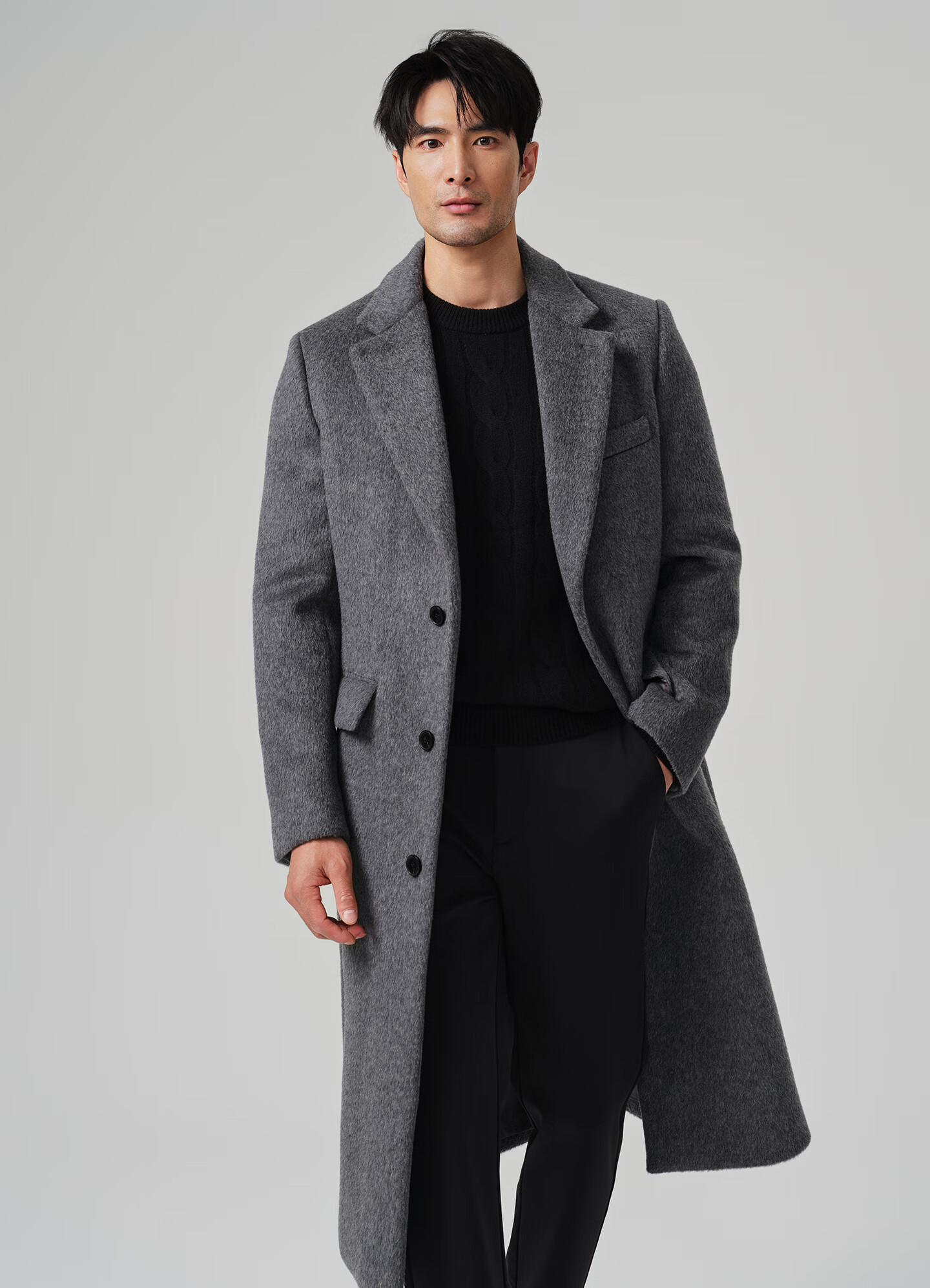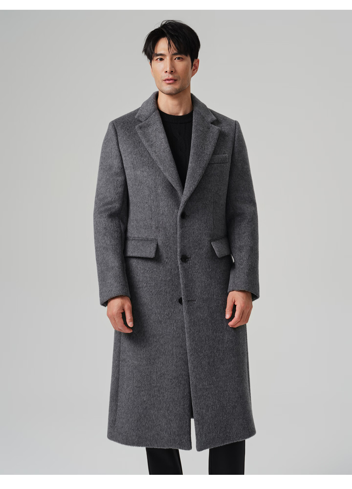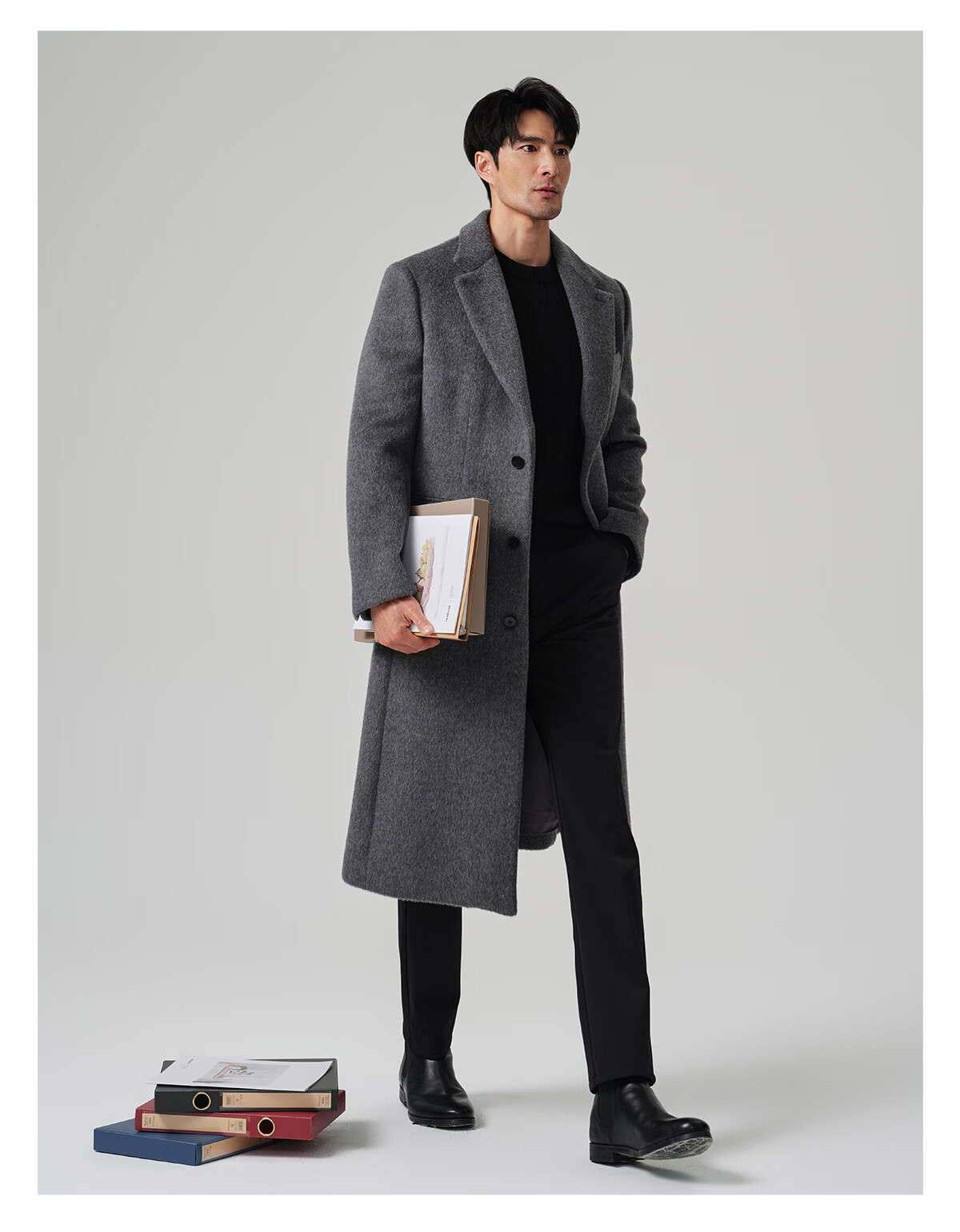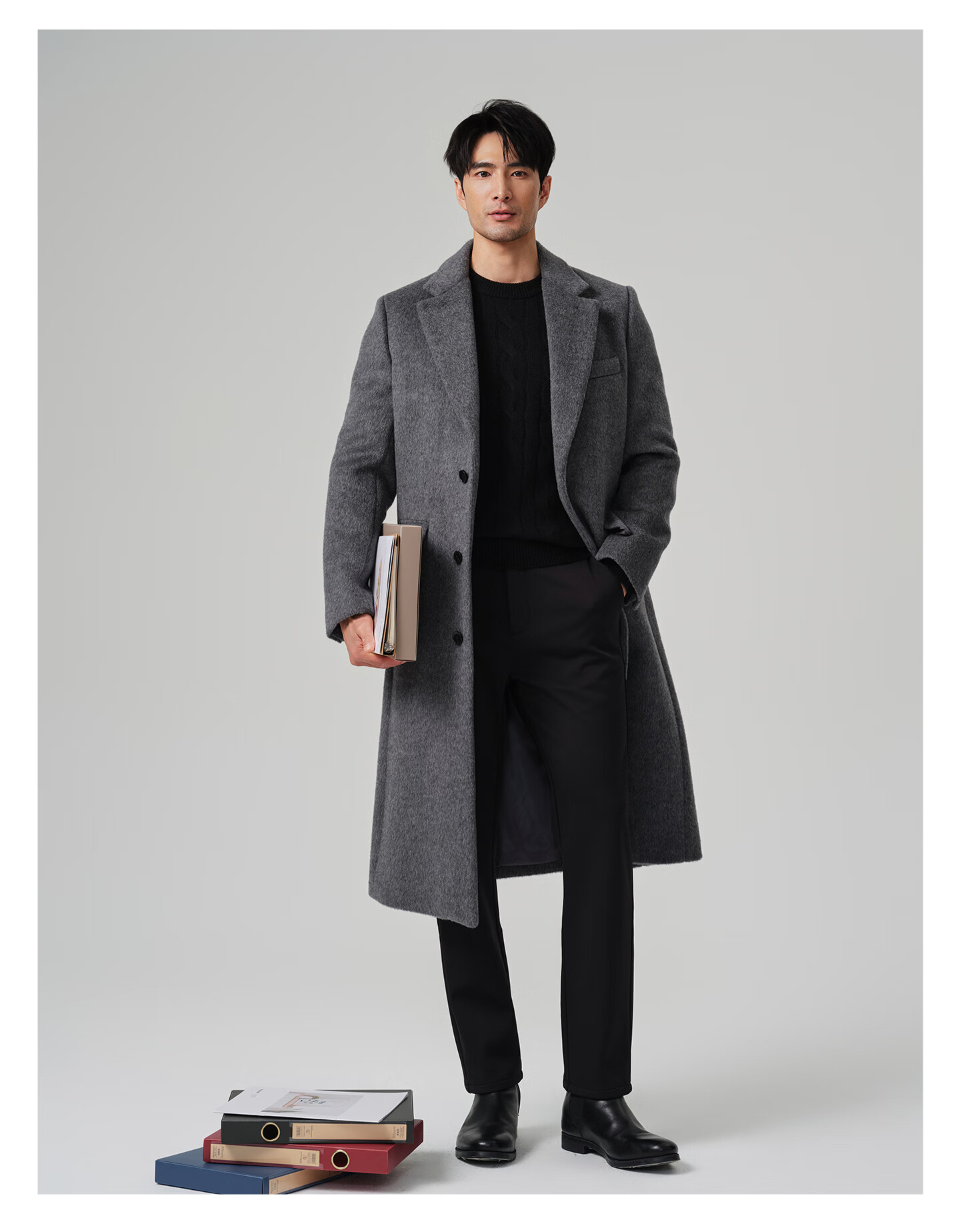 Hany (HANY) extra thick camel velvet extended coat men's new business mulberry silk wool casual gray woolen coat winter Gluck volcanic ash single size custom version L (50) recommended weight 150-170Jin Jin equals 0.5 kg
