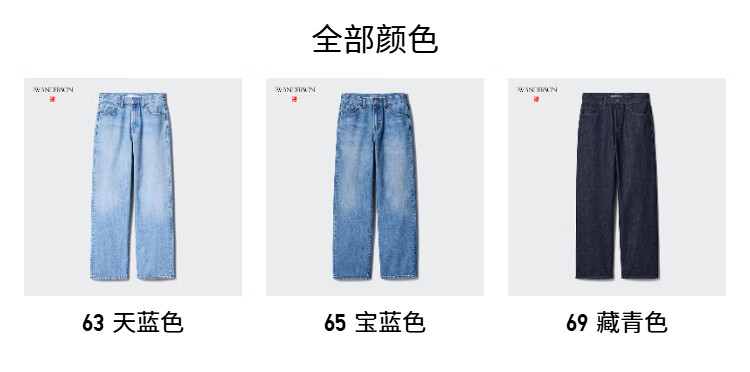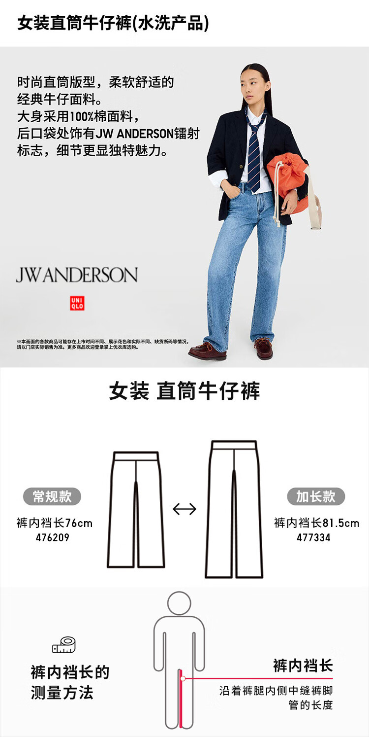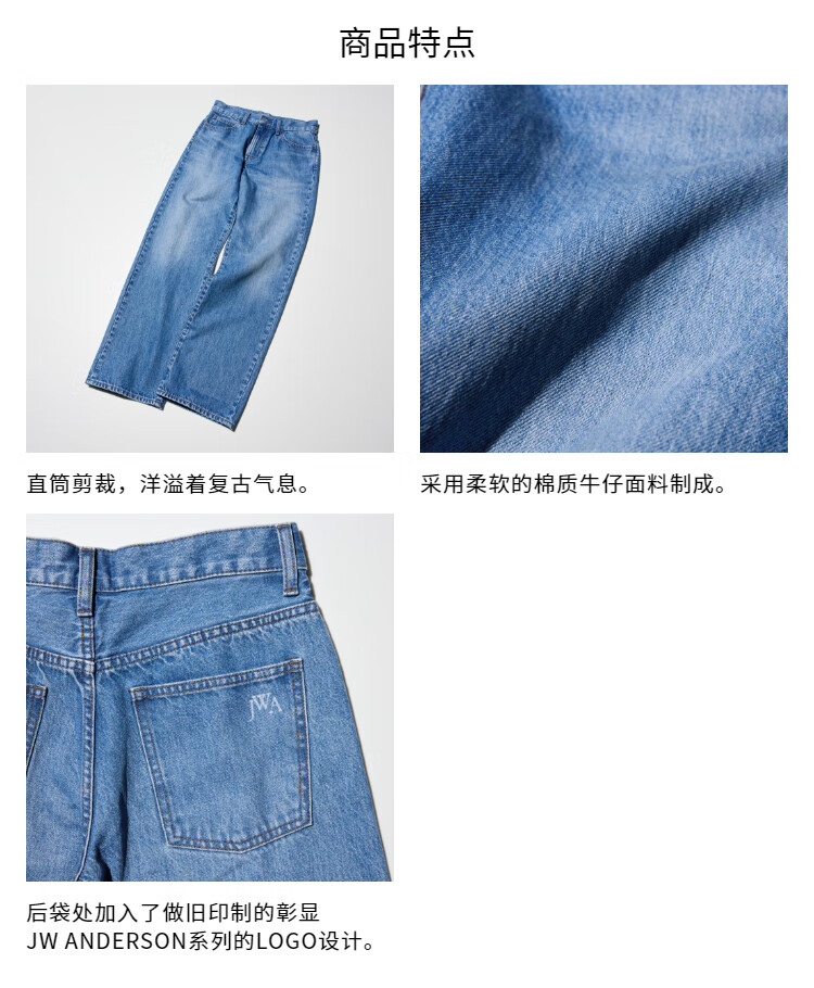 UNIQLO cooperation women's straight jeans/washed product casual pants 25 spring and summer new style 476209 65 royal blue 27/160/68A