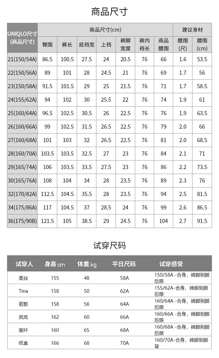 China (cm) 160-165/84-86 165-170 / 88-90 167-172 / 92-96 168-173 / 98-102 170-176 / 106-110