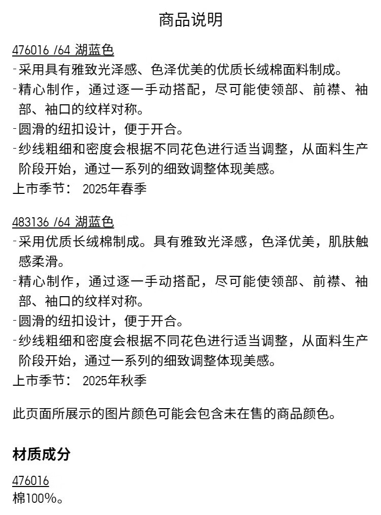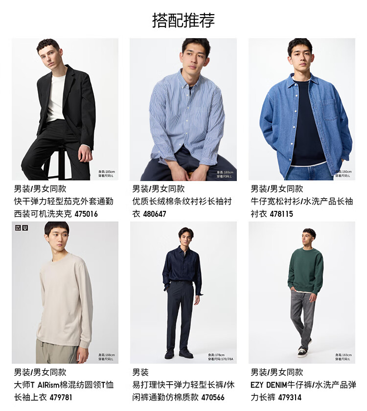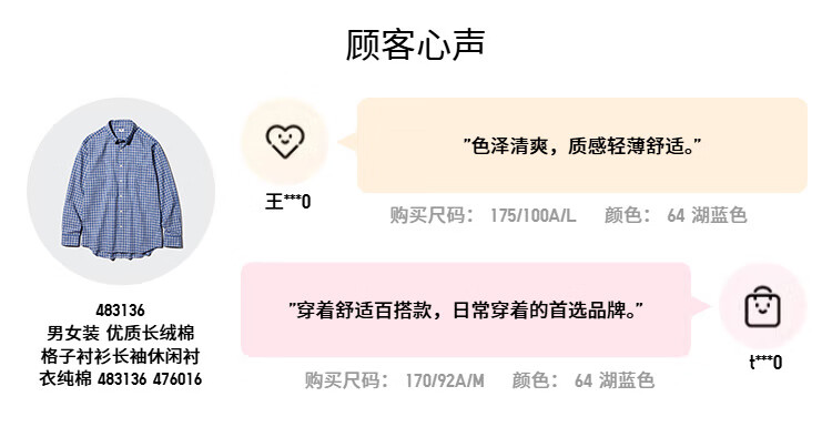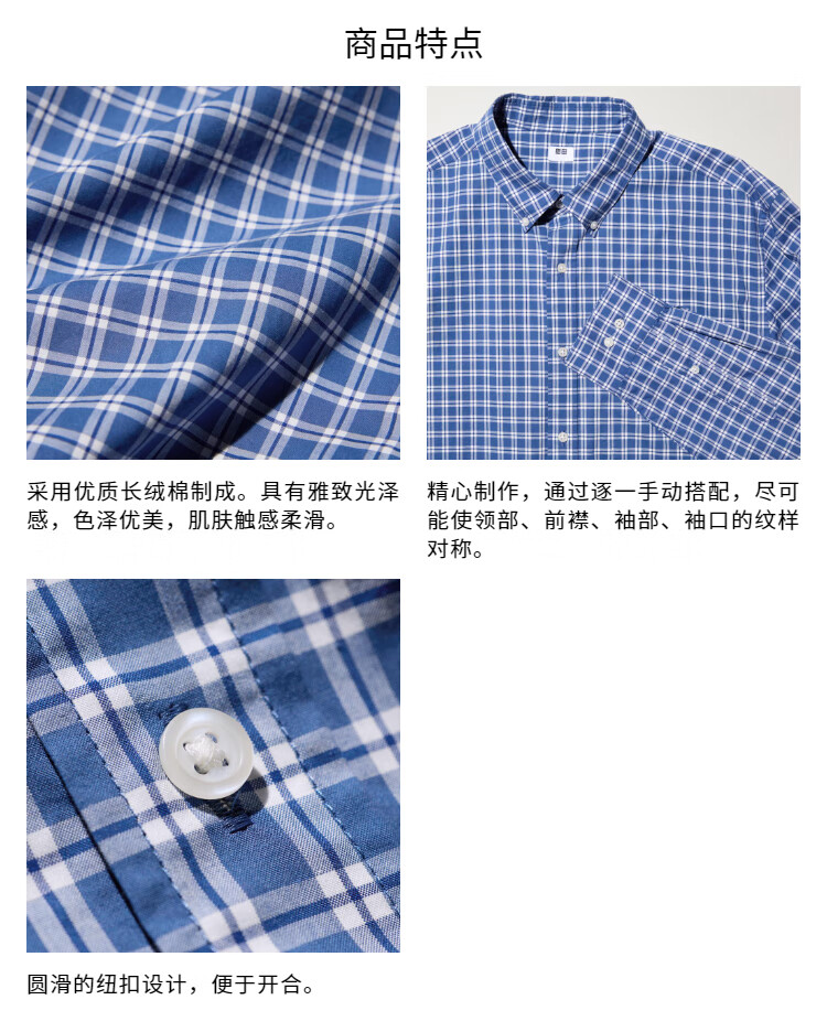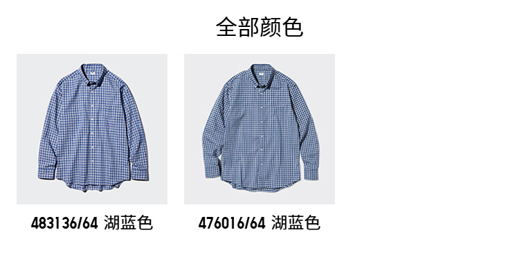 Uniqlo men's and women's high-quality long-staple cotton plaid shirt long-sleeved casual shirt pure cotton 483136 476016 483136/64 lake blue S
